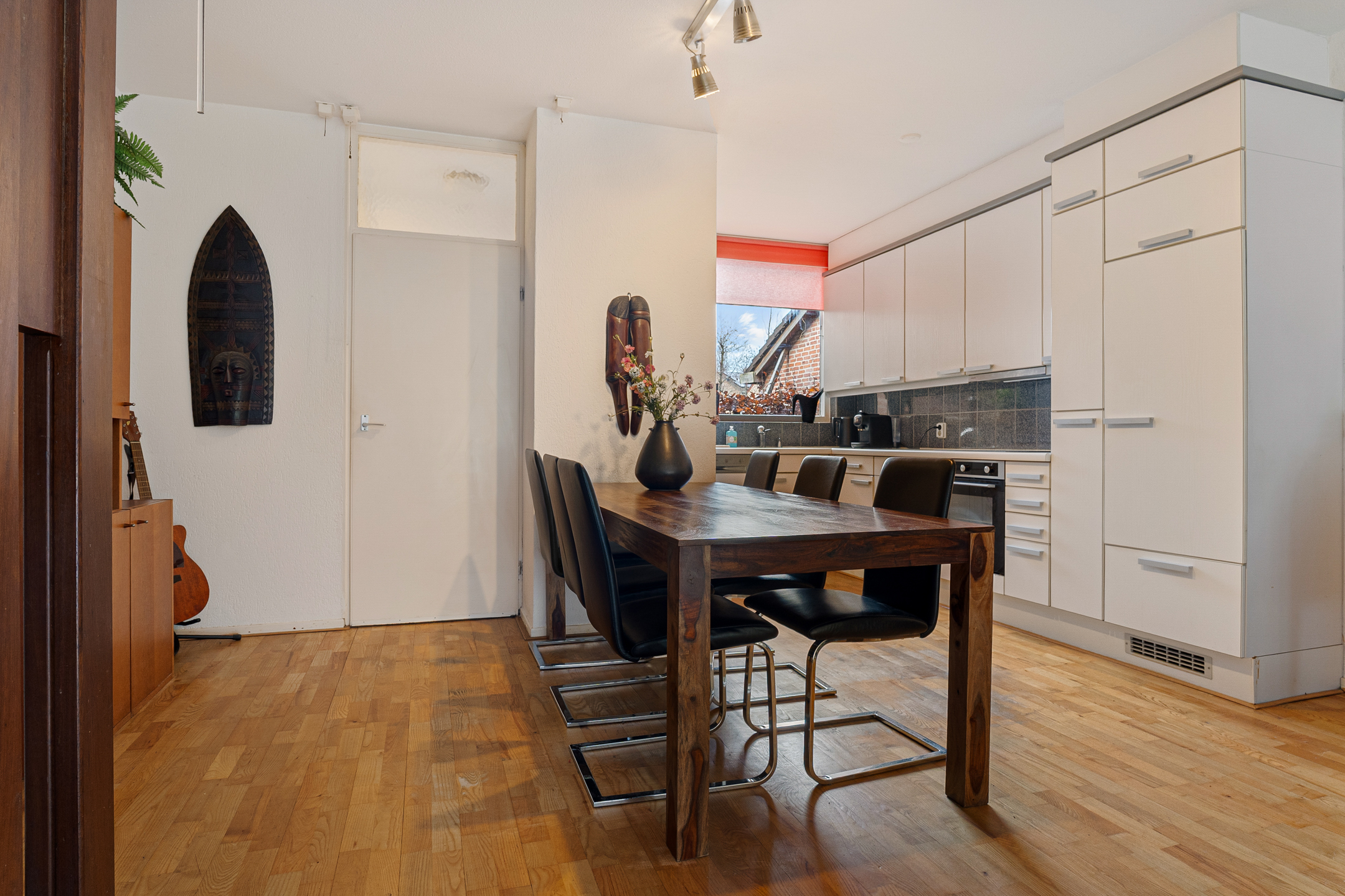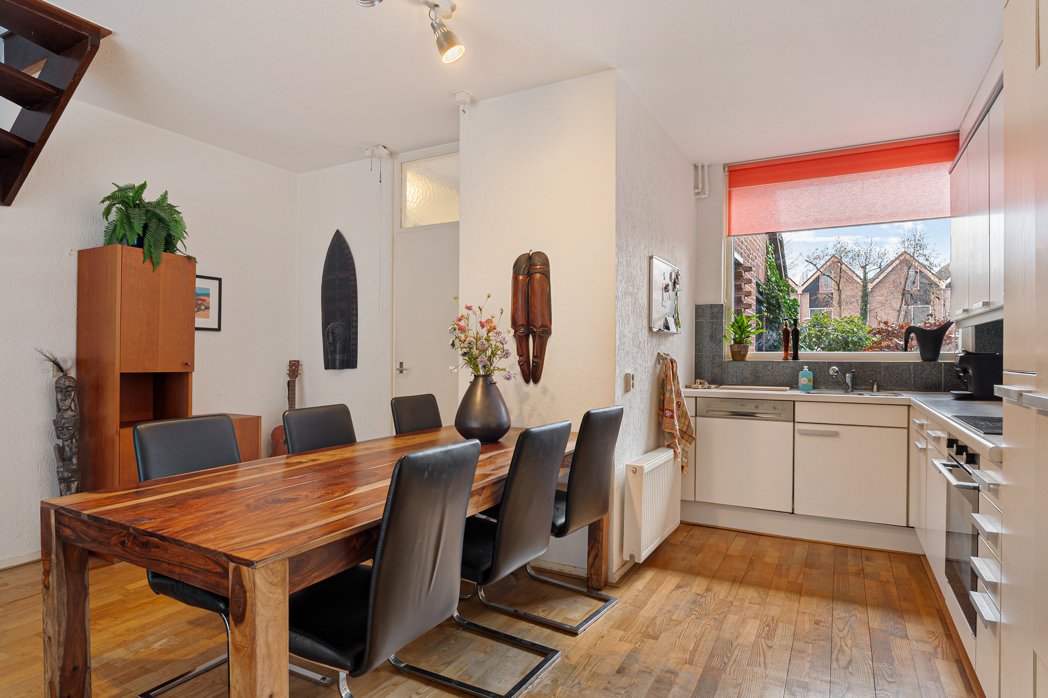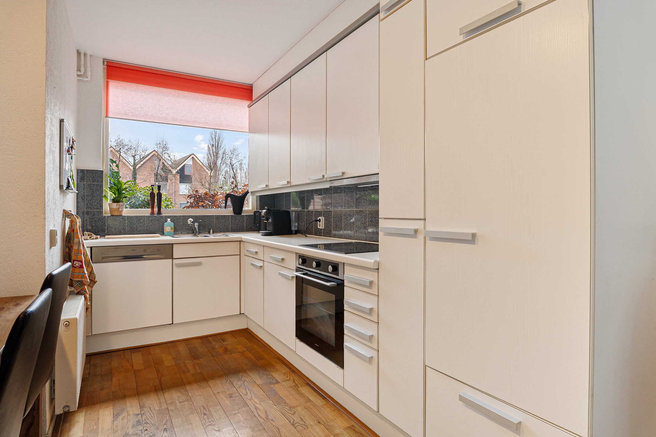 De keuken bevindt zich aan de voorzijde van de woning en sluit praktisch aan op de woonkamer. Diverse keukenapparatuur is circa twee jaar geleden vernieuwd, waaronder de oven, inductiekookplaat en afzuigkap. De inpandige garage van circa 13 m² biedt naast parkeergelegenheid ook volop ruimte voor opslag.