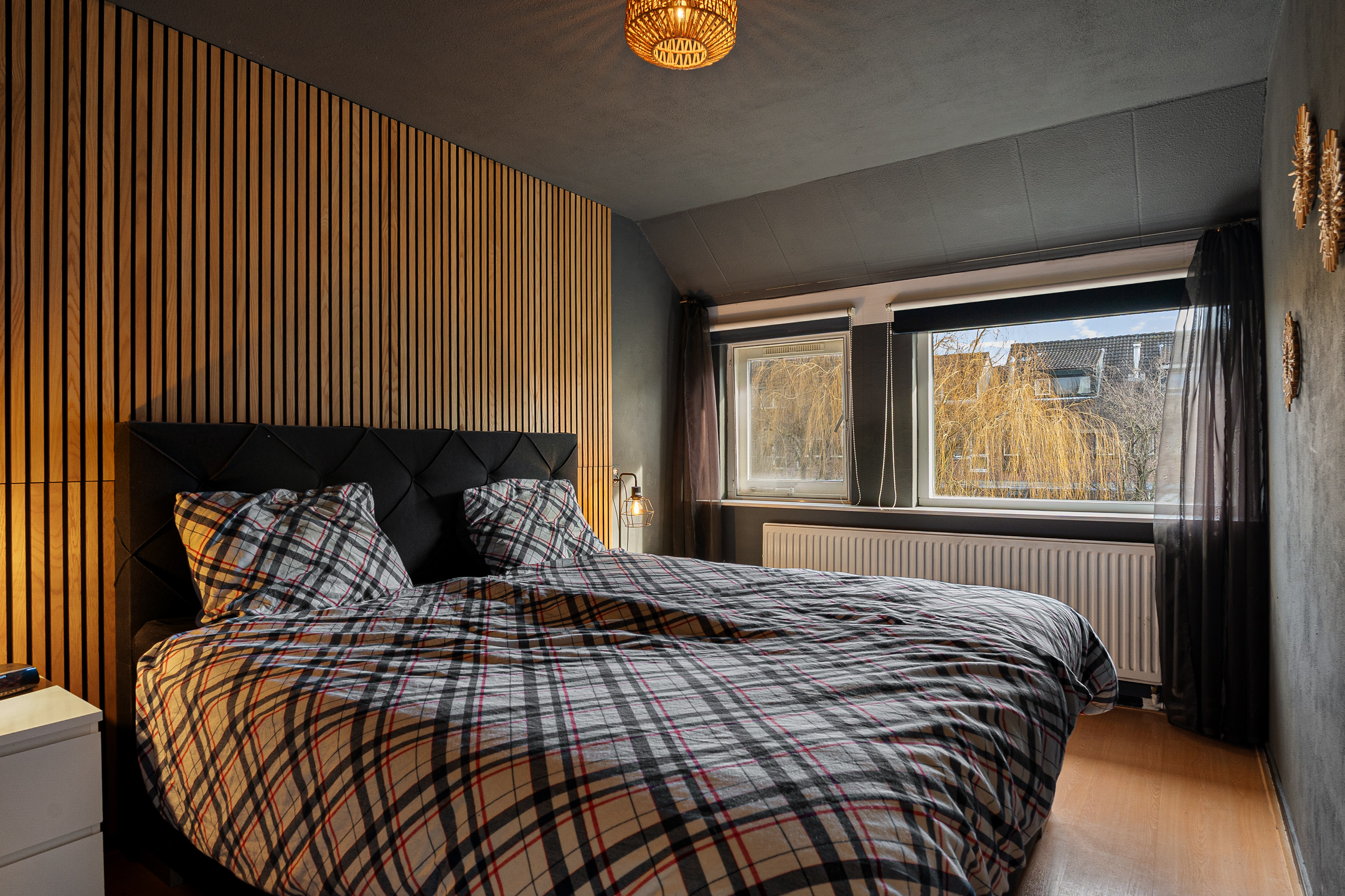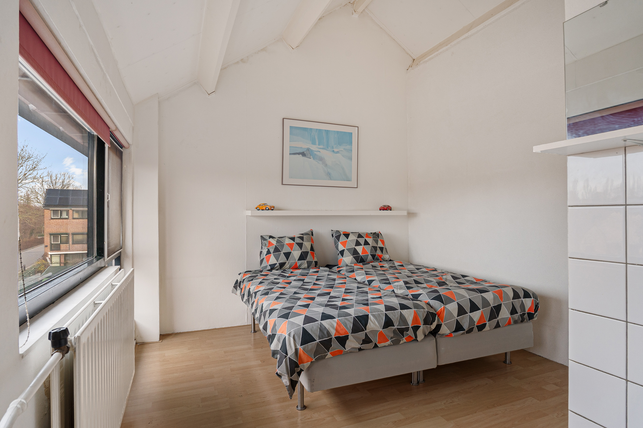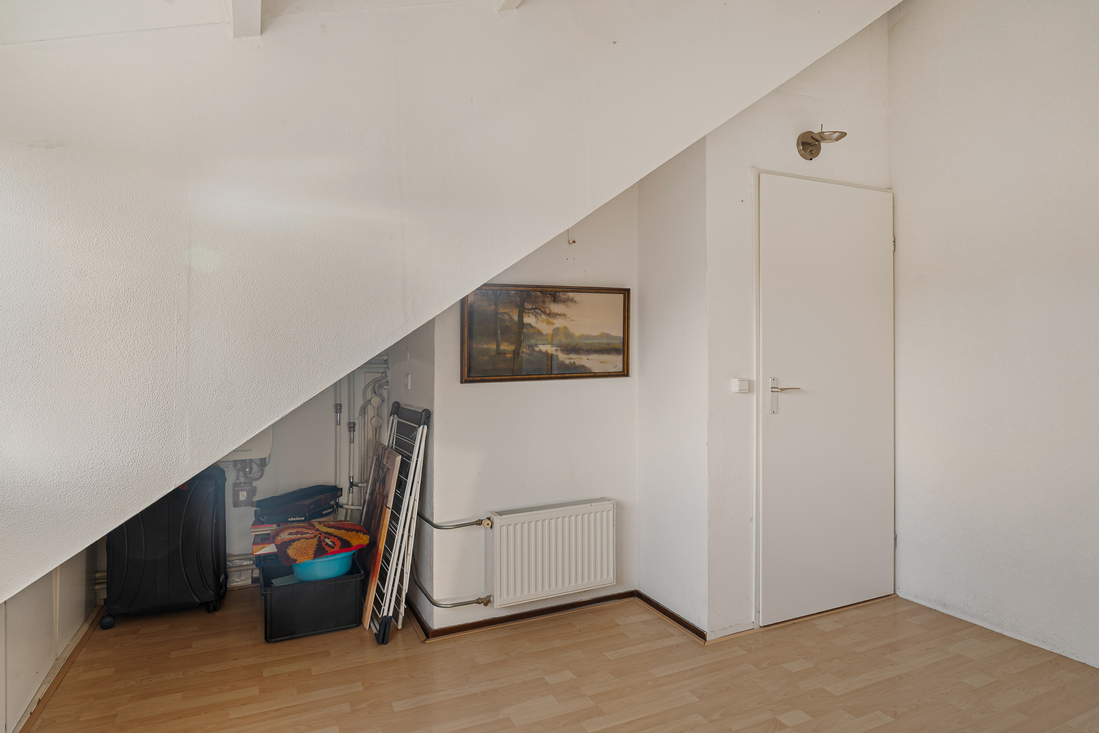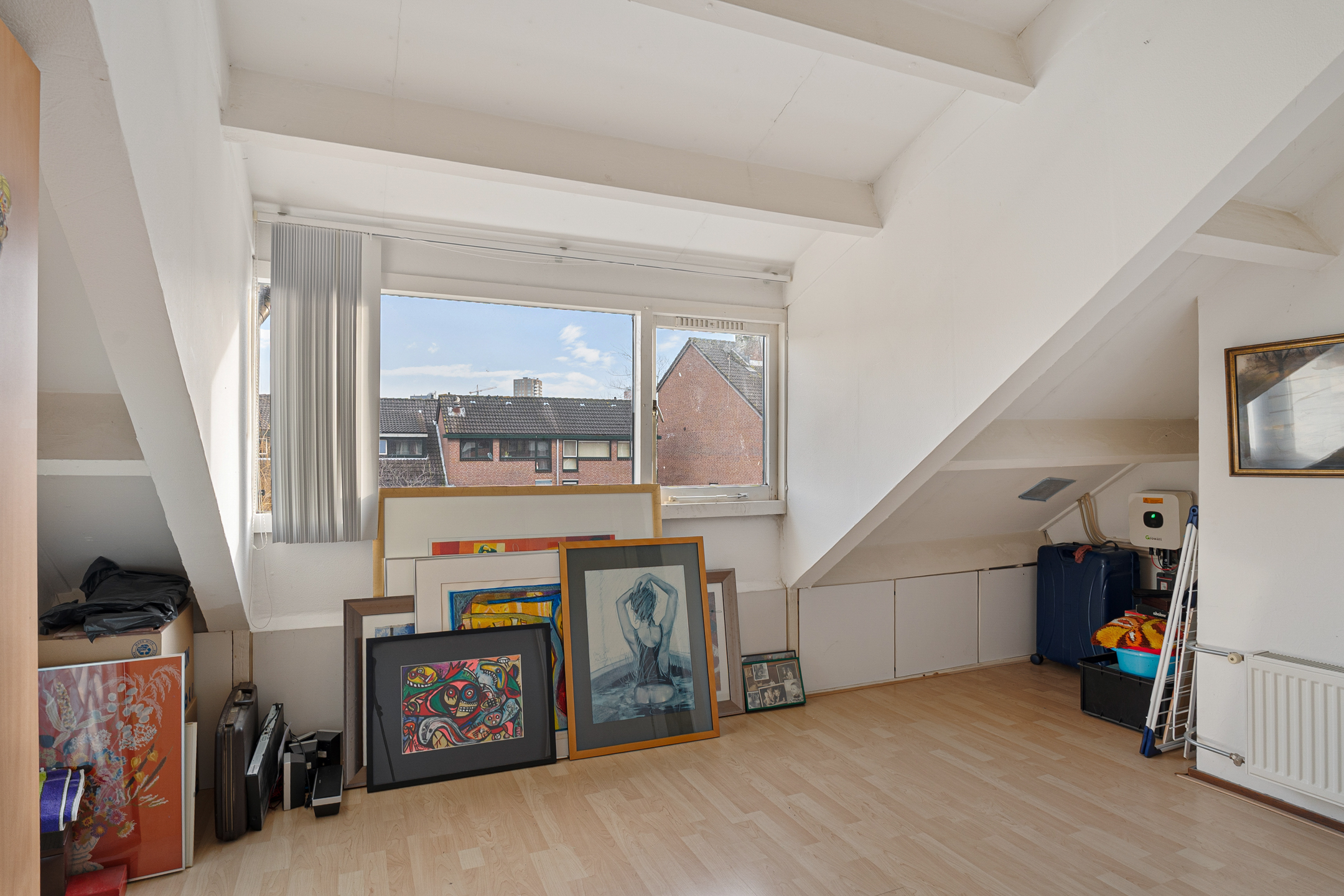 Via de vaste trap kom je op de zolderverdieping. Deze verdieping is ingedeeld met twee kamers en een ruime overloop. Dankzij de prettige hoogte voelen de ruimtes verrassend ruim aan en zijn ze uitstekend te gebruiken als extra slaapkamers, werkkamer of hobbyruimte.