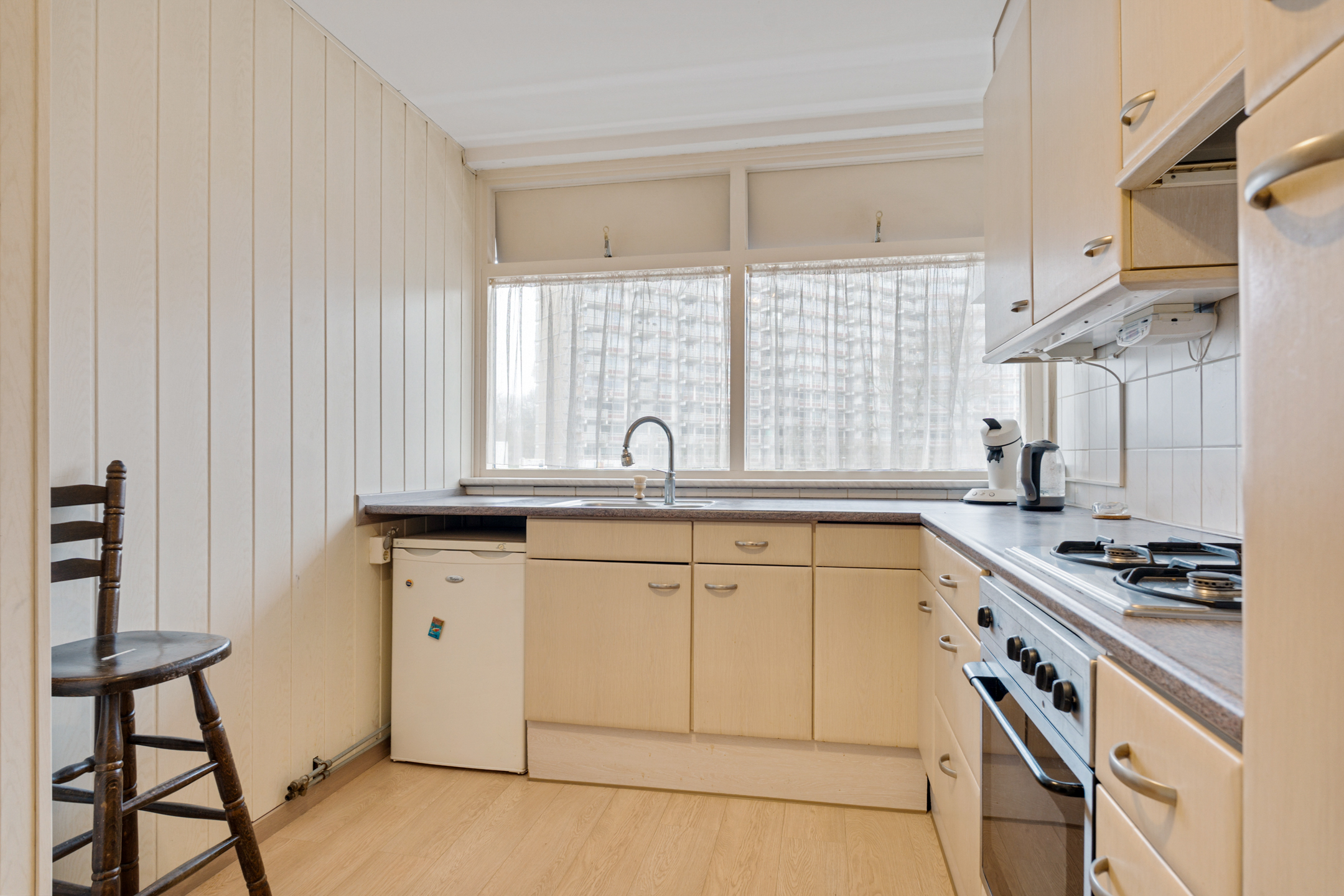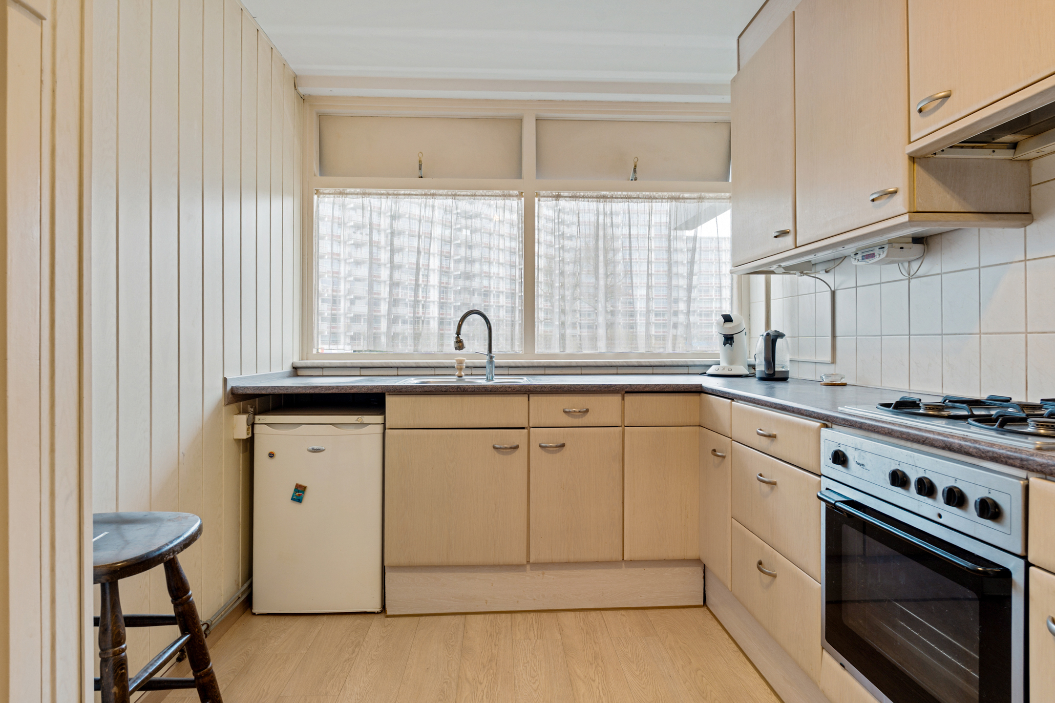 Via de entree kom je in de hal met toegang tot alle vertrekken. De ruime en lichte woonkamer van ca. 31,9 m² vormt het hart van de woning. Dankzij de grote raampartij is er een prettige lichtinval en een mooi zicht op het groen. Vanuit de slaapkamer is het balkon bereikbaar, waar je heerlijk buiten kunt zitten. De keuken is praktisch ingericht en beschikt over diverse apparatuur en voldoende kastruimte.