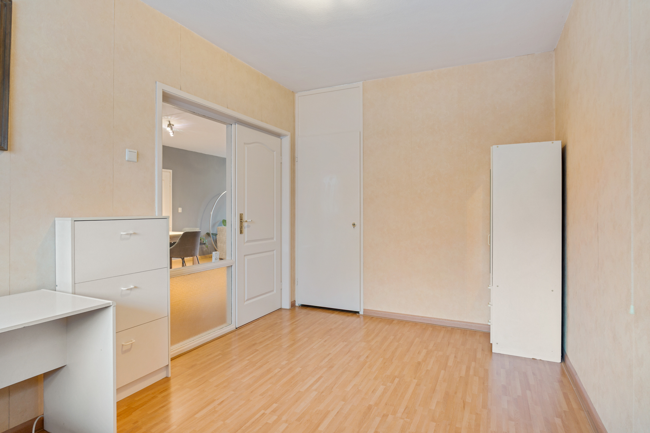 Het appartement beschikt over drie slaapkamers van goed formaat, waardoor de woning uitermate geschikt is voor gezinnen, thuiswerkers of wie behoefte heeft aan extra ruimte. De badkamer is verzorgd en voorzien van een douche, wastafelmeubel en wasmachineaansluiting. Daarnaast is er een modern uitgevoerd separaat toilet.