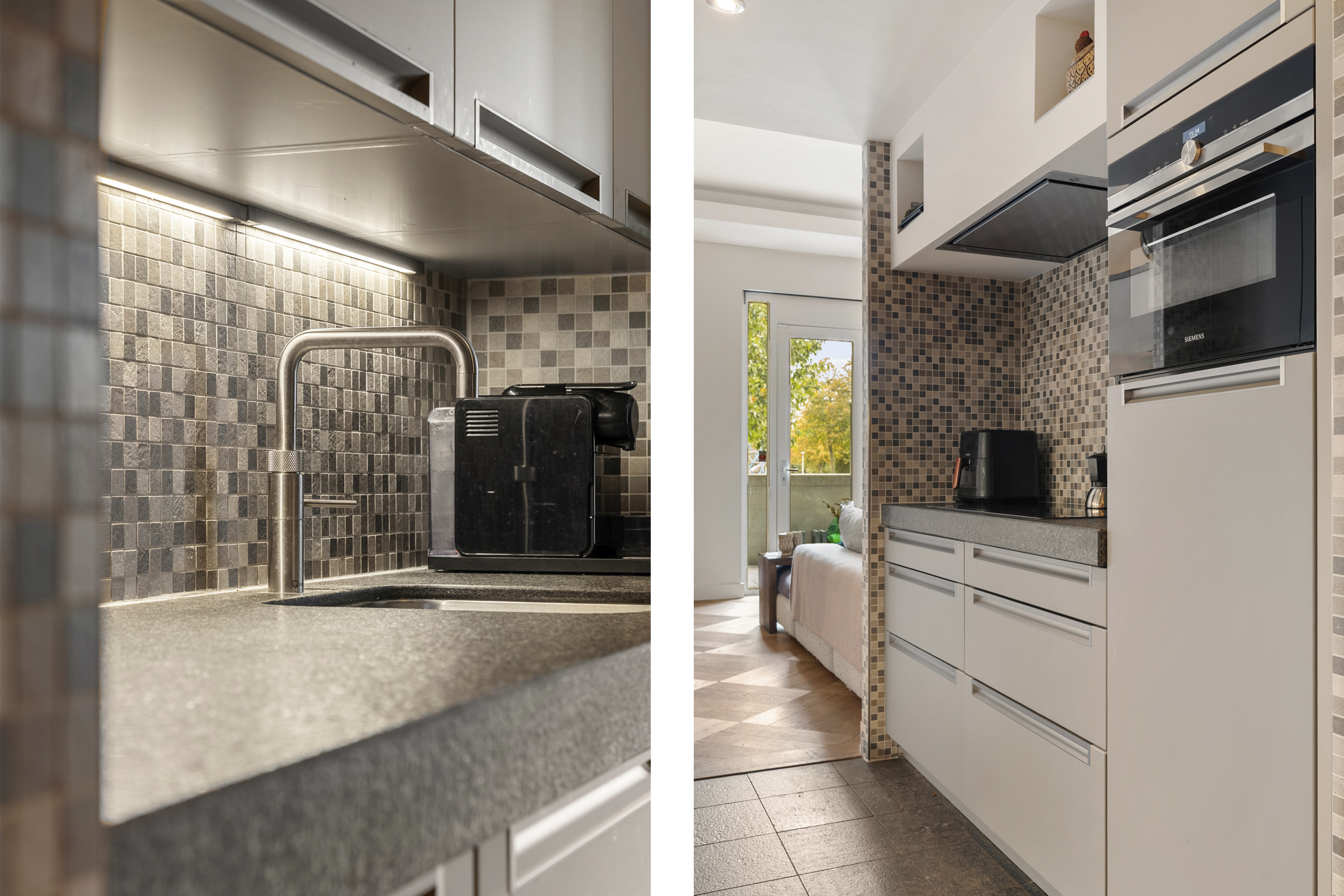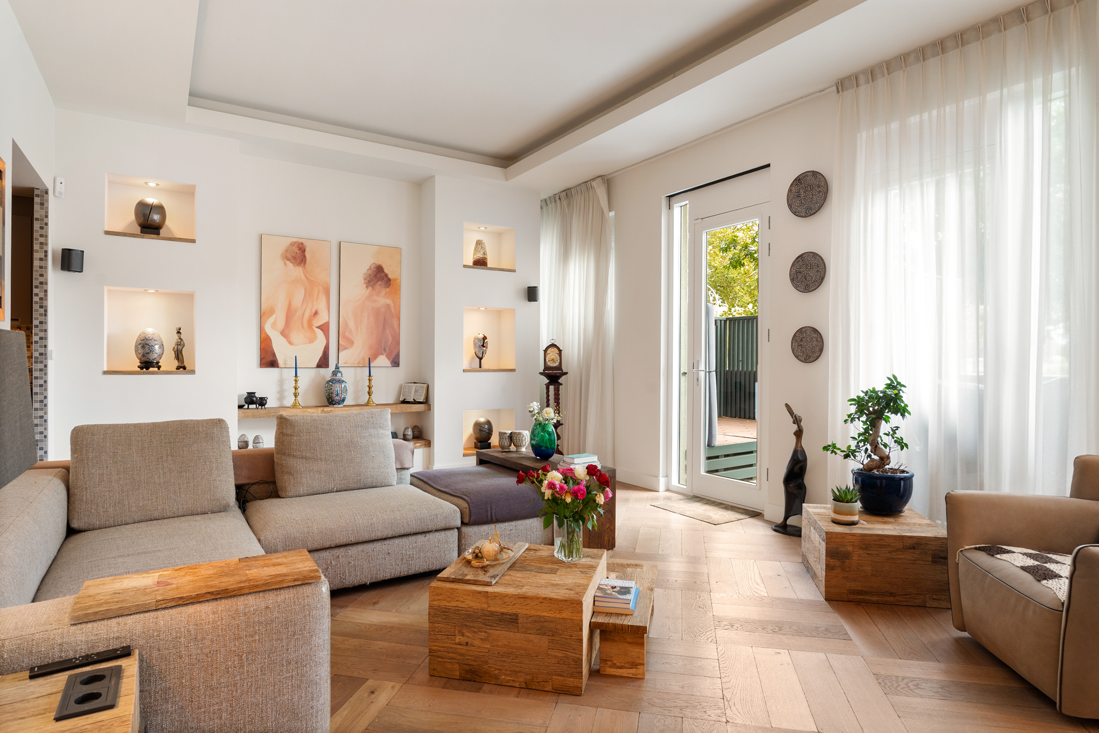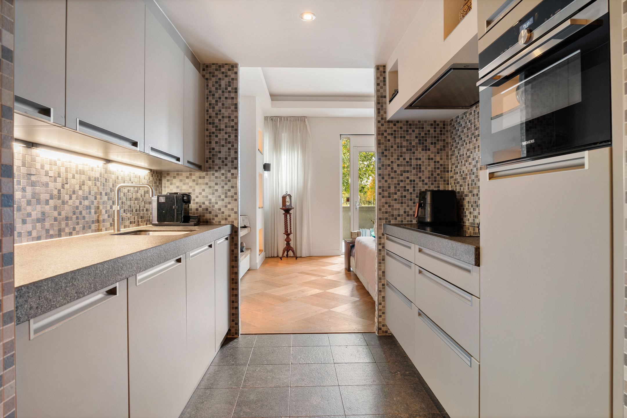 Deze is voorzien van diverse inbouwapparatuur en vormt samen met de woonkamer een stijlvolle leefruimte met veel lichtinval. Vanuit de woonkamer stap je direct het ruime terras van ca. 35 m² op, gelegen op het zuidoosten – een heerlijke plek om in alle rust van de zon te genieten.