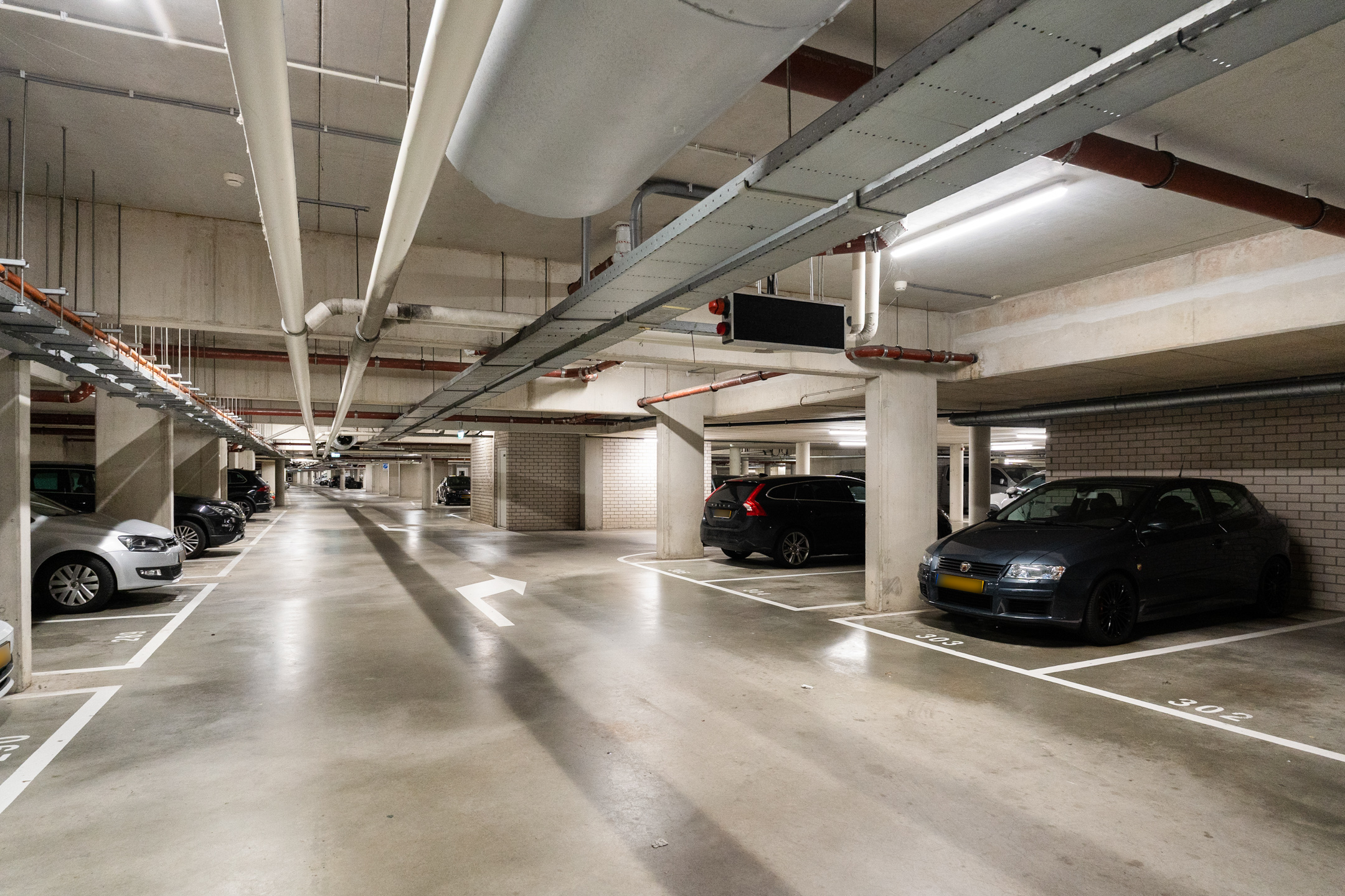 De (fietsen)berging bevindt zich in de onderbouw, evenals de eigen parkeerplaats in de afgesloten parkeergarage.