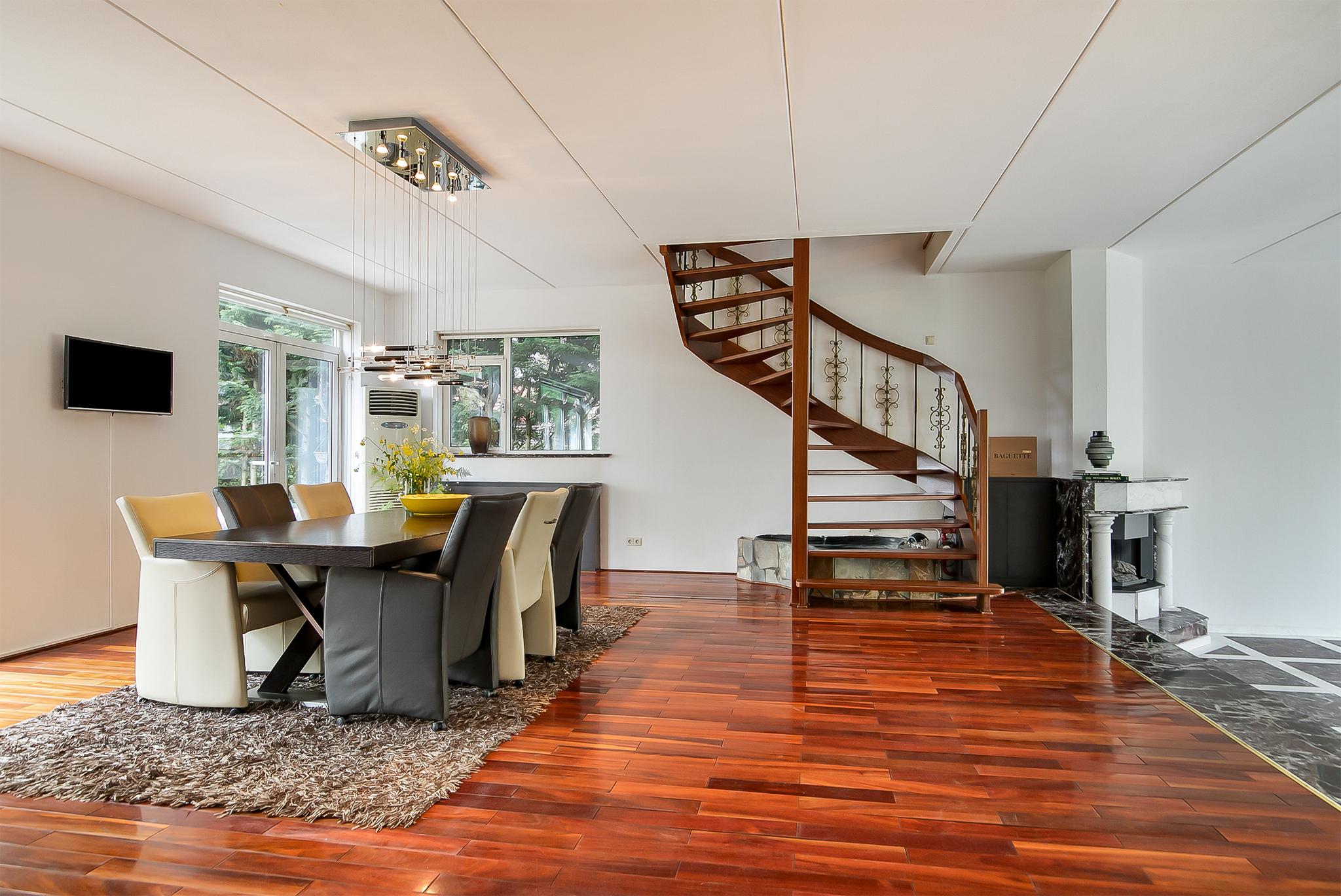 + Het eetgedeelte van de woonkamer, de slaapkamers en de overloop zijn voorzien van houten vloeren