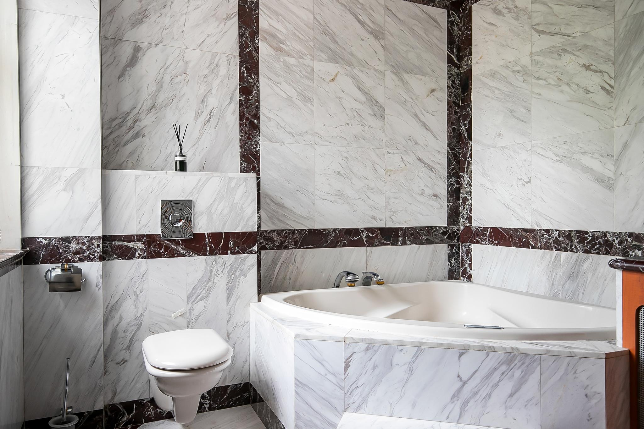 + De keuken, zitgedeelte van de woonkamer, hal, toiletten en badkamers zijn voorzien van marmeren vloeren