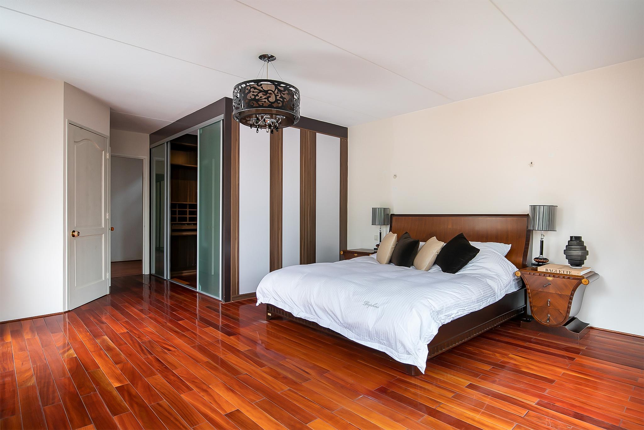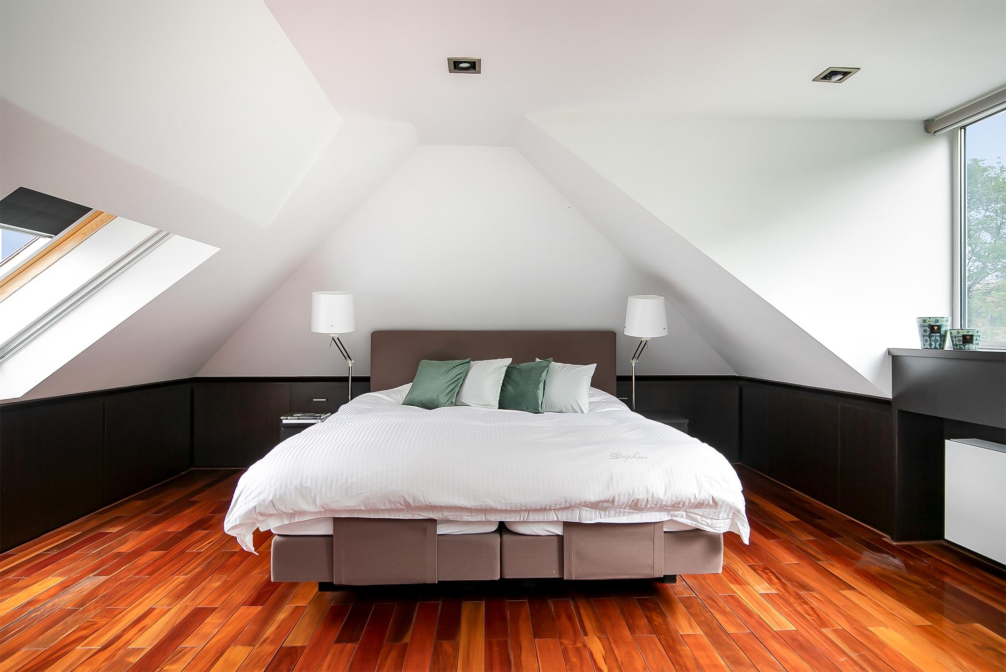 Ruime overloop met toegang tot 4 ruime slaapvertrekken. De masterbedroom heeft een royale garderobe inloopkast, balkon en een badkamer en-suite met ligbad, dubbele wastafel en tweede toilet. Op deze verdieping bevindt zich nog een tweede ruime badkamer met douchecabine, derde toilet, en dubbele wastafel. Doordat dat alle slaapkamers op een hoek gelegen zijn, hebben ze allen veel lichtinval.