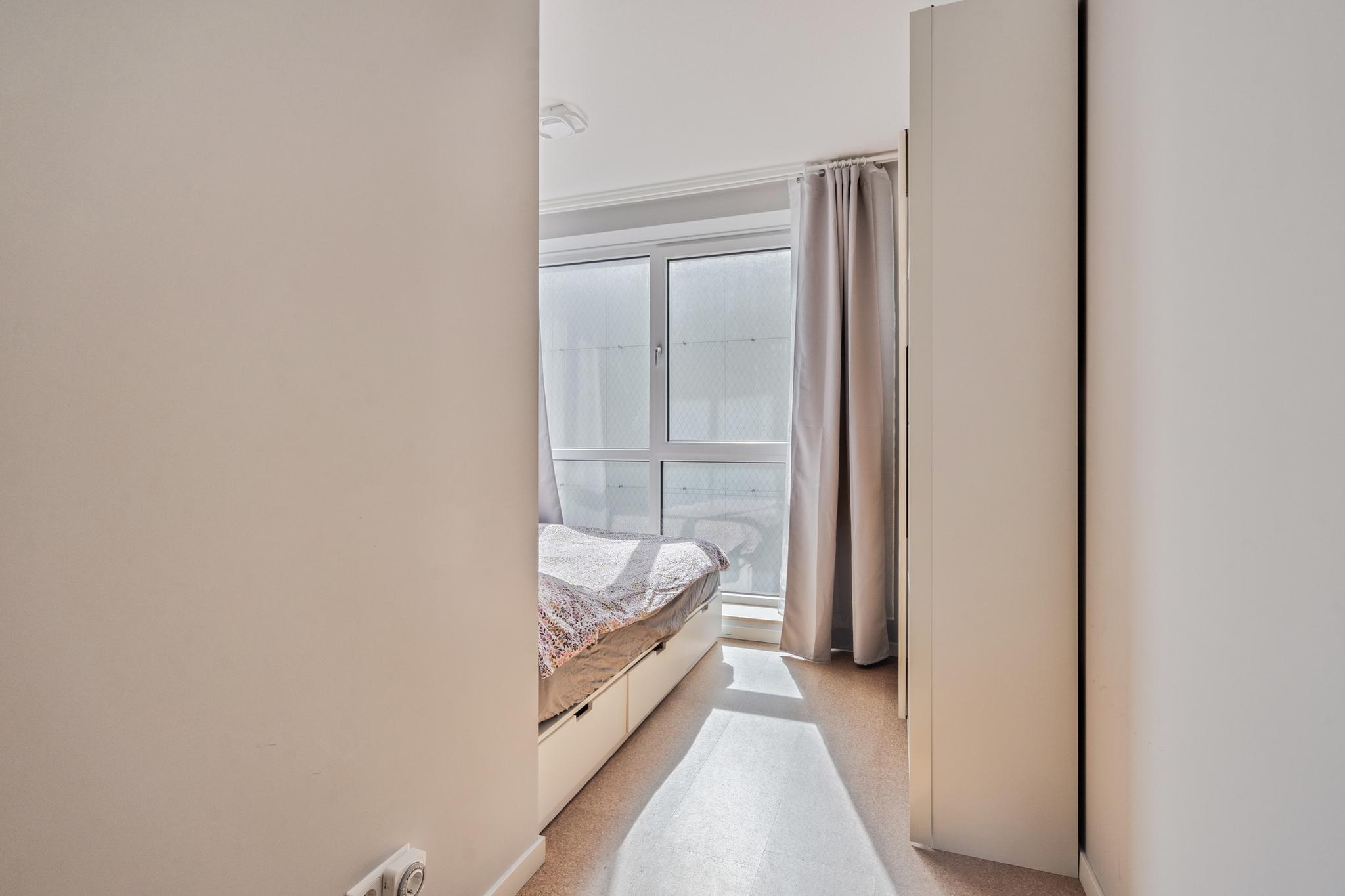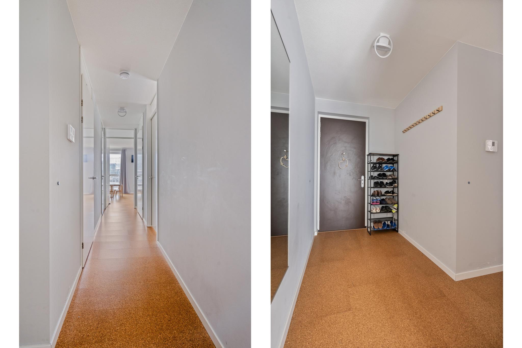 Ruime entreehal met toegang tot alle vertrekken. Tegenover de voordeur is slaapkamer 1 gelegen, dit is een ruime kamer met veel lichtinval. De volgende kamer is slaapkamer 2, dit is een prima formaat slaapkamer met veel lichtinval. De badkamer is voorzien van een vaste wandkast, een inloopdouche, een wastafel en een handdoekradiator. In de hal is er ook nog een separaat toilet aanwezig.