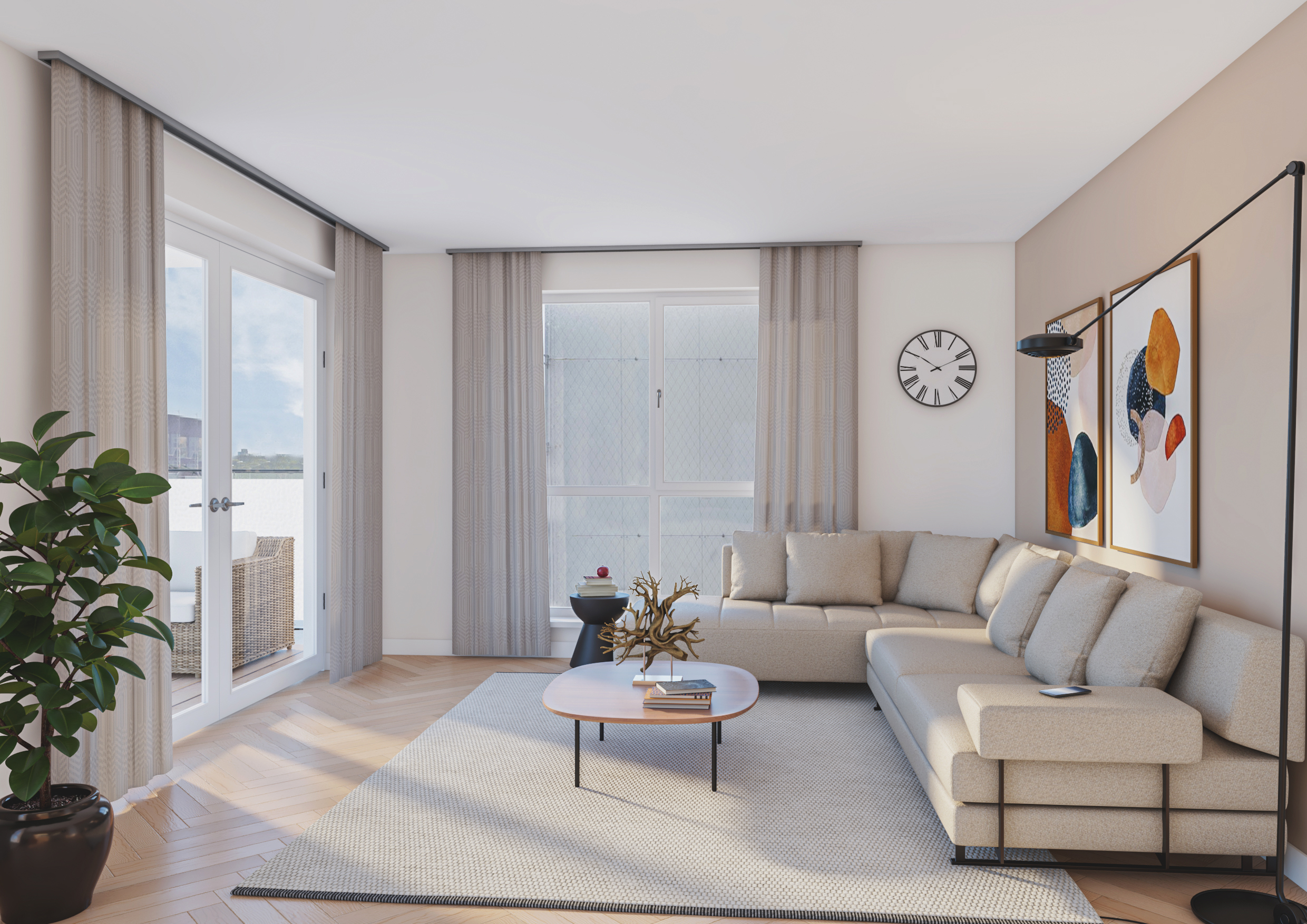 Er zijn diverse collectieve ruimtes. Achter de liften op de 2e, 3e en 4e verdieping is er een ruimte van 16m2. Op de 5e verdieping is er een ruimte van 40m2. Als koper richt je samen met je buren de collectieve ruimte in. Bijvoorbeeld een ruimte voor verjaardagsfeestjes of een gedeelde logeerkamer. Er is ook een gezamenlijk dakterras op de 5e verdieping (70 m2). Voor de inrichting van deze ruimtes is er een bedrag beschikbaar vanuit de VvE.