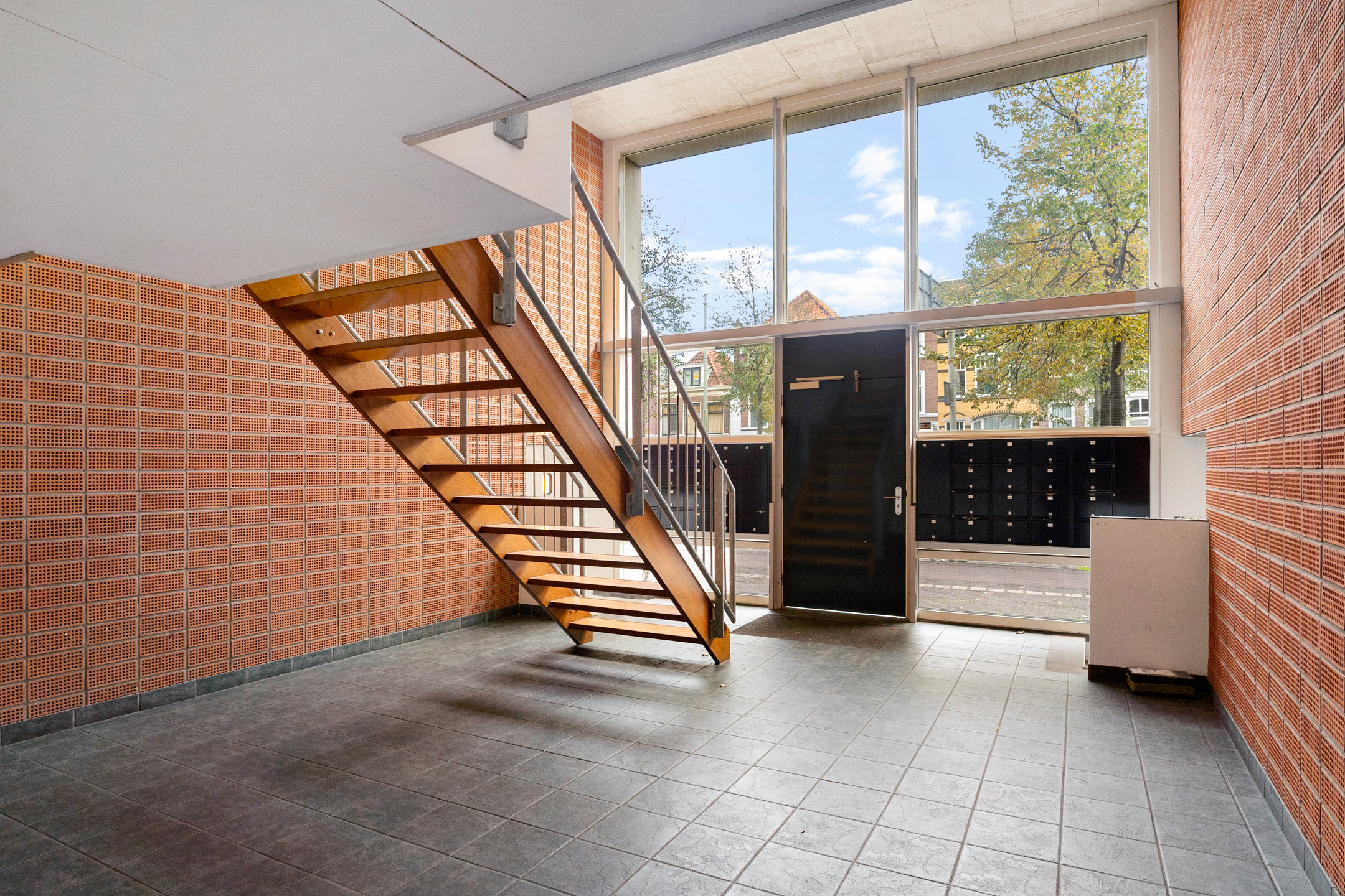 Het complex beschikt over een afgesloten portiek met brievenbustableau en videofooninstallatie. Vanuit de centrale hal heb je toegang tot de inpandige garage met eigen parkeerplaats (tegen betaling) en een separate privéberging.