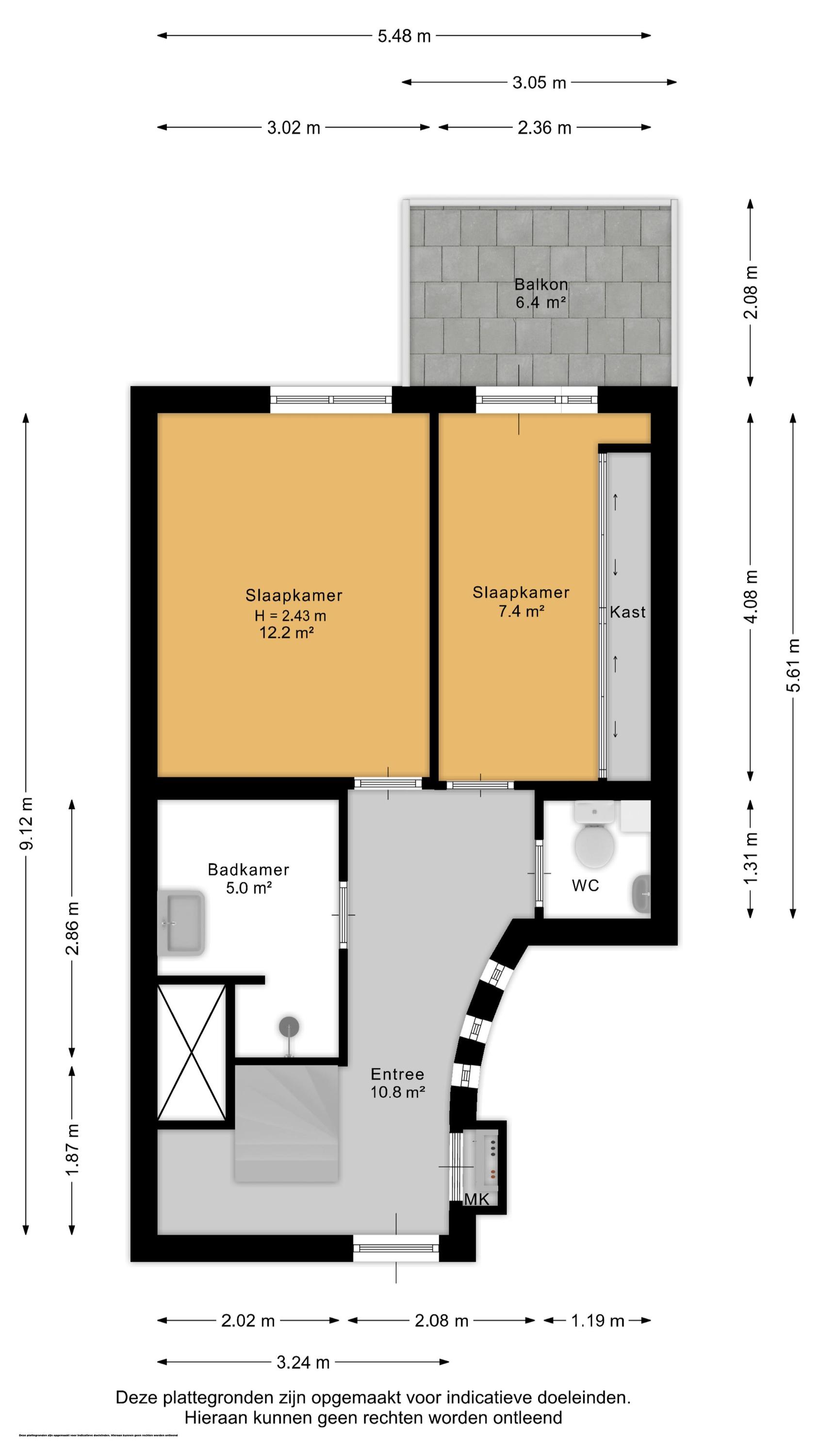 Via de entree kom je in de hal die toegang biedt tot twee ruime slaapkamers aan de achterzijde, waarvan één directe toegang heeft tot het zonnige balkon op het zuidwesten. De moderne badkamer is voorzien van een inloopdouche en een strak wastafelmeubel. Daarnaast bevindt zich op deze verdieping een separaat toilet.