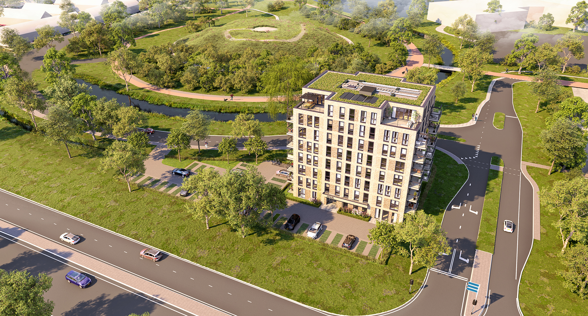 Tussen de markante Watertoren en het groene Burgemeester Hoekstrapark verrijst aan de Natuursteenlaan in Zoetermeer binnenkort een imposant gebouw. Vanuit vogelvlucht bekeken vormt de bovenste etage met een beetje verbeeldingskracht de hoofdletter G. Vandaar dat dit bijzondere project de naam GOUD heeft gekregen. Een eretitel die het gebouw met trots draagt. Dit is per slot van rekening een gouden woonplek.
