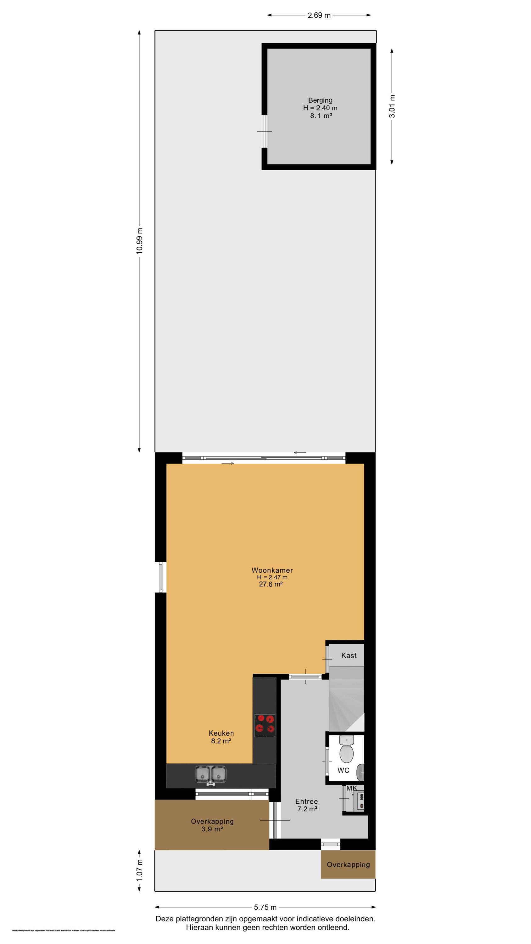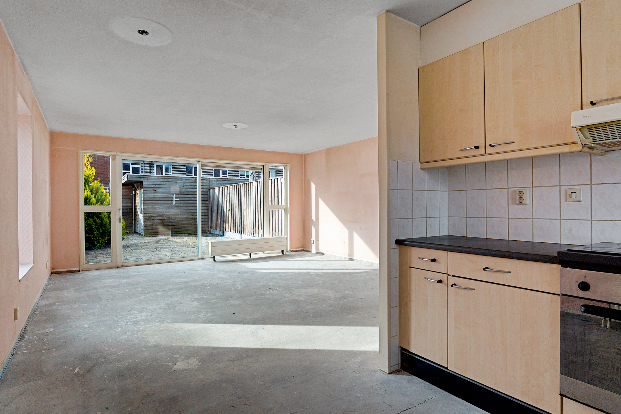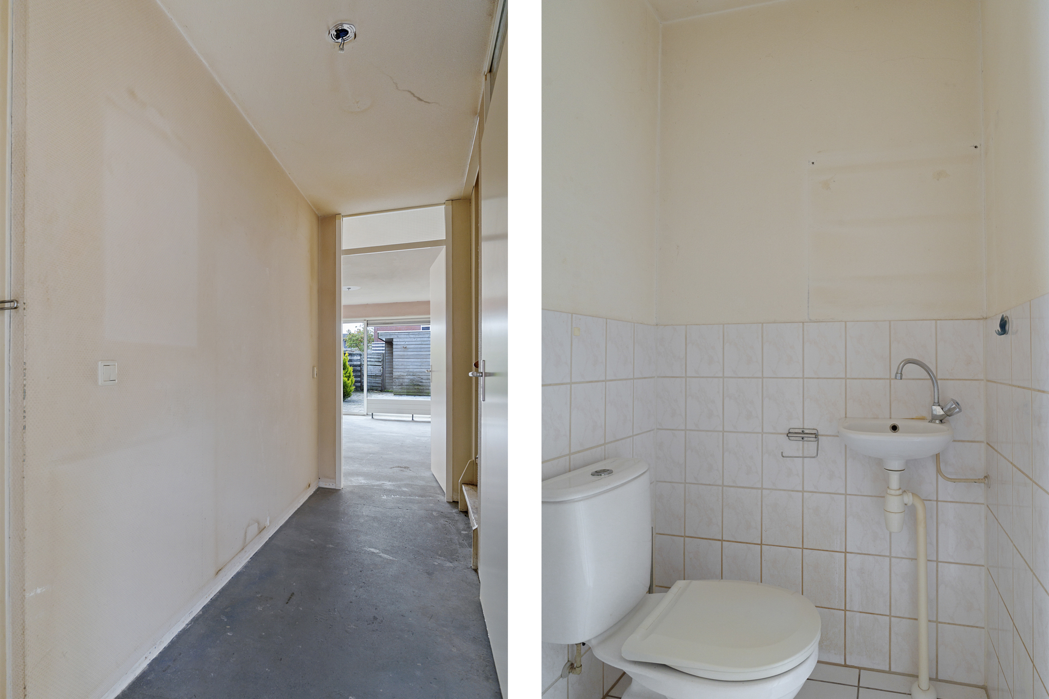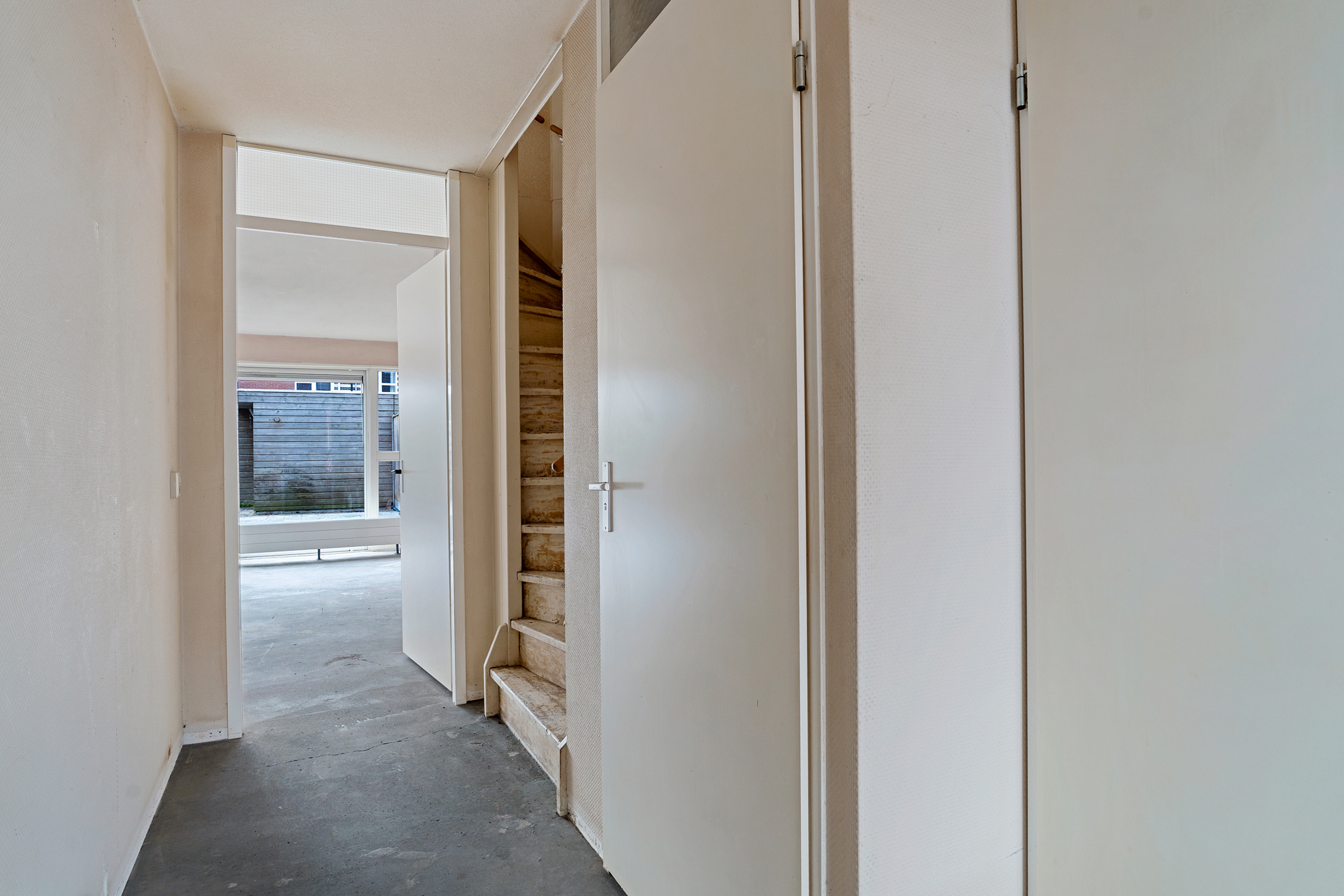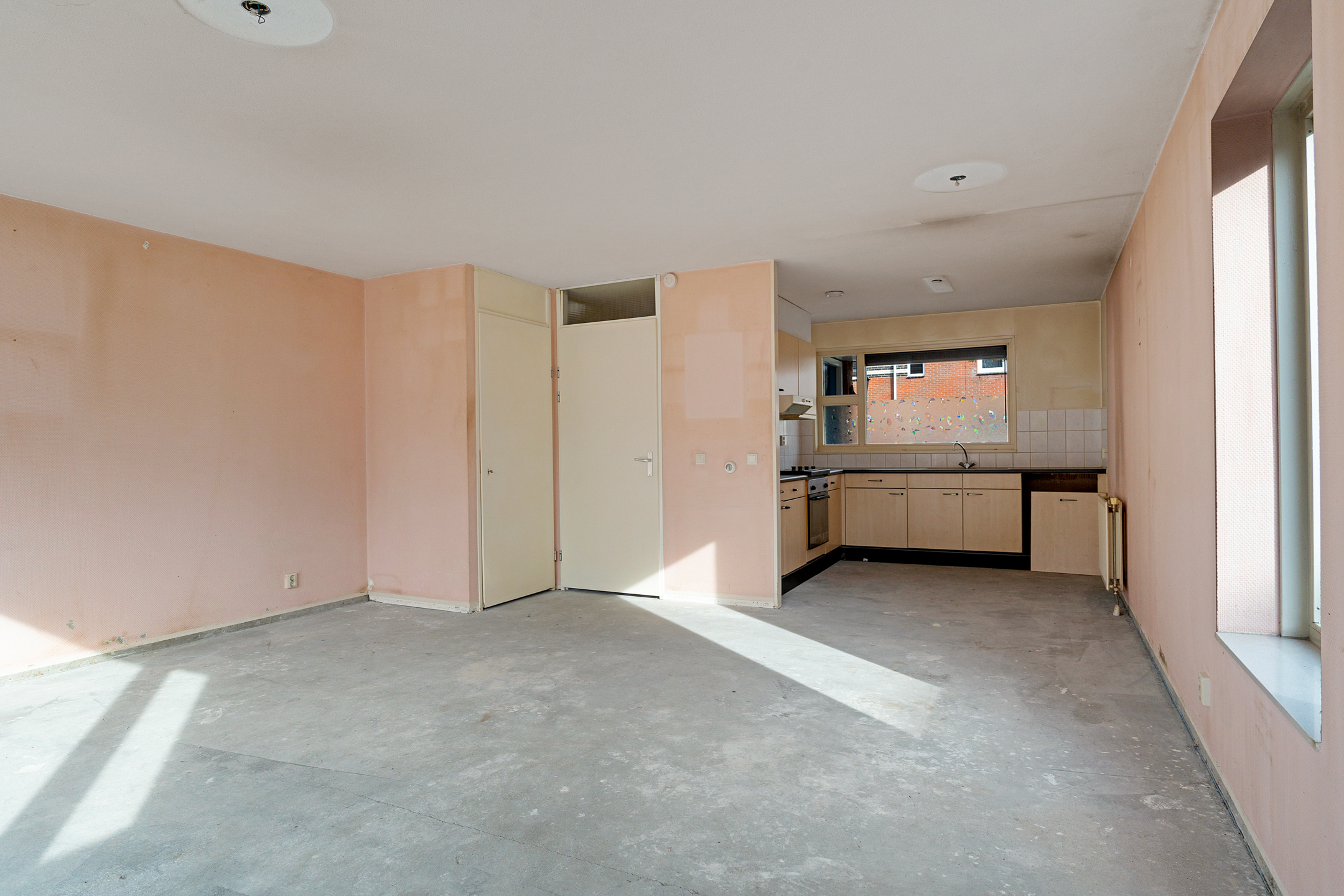 Je komt binnen via de hal met meterkast en een toilet met fonteintje. De woonkamer is opvallend licht door de brede schuifpui aan de achterzijde en het extra zijraam dankzij de hoekligging. De ruimte is rechthoekig van vorm en daarmee goed in te delen in een zit- en eetgedeelte. De open keuken aan de voorzijde is geplaatst in een ruime L-opstelling en beschikt over diverse boven- en onderkasten en inbouwapparatuur. De gehele begane grond is momenteel casco afgewerkt oftewel een blanco canvas om jouw droominterieur te realiseren!