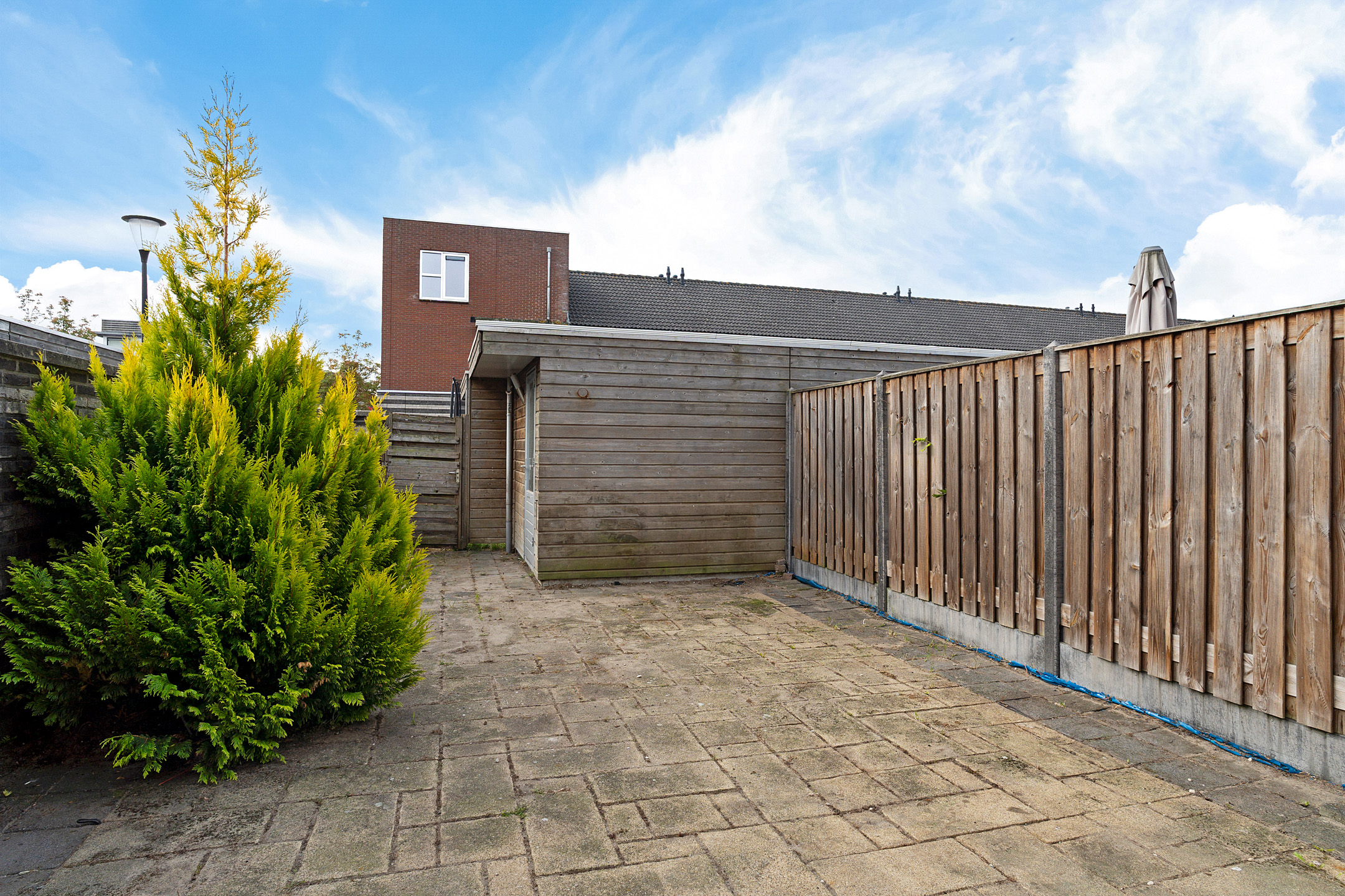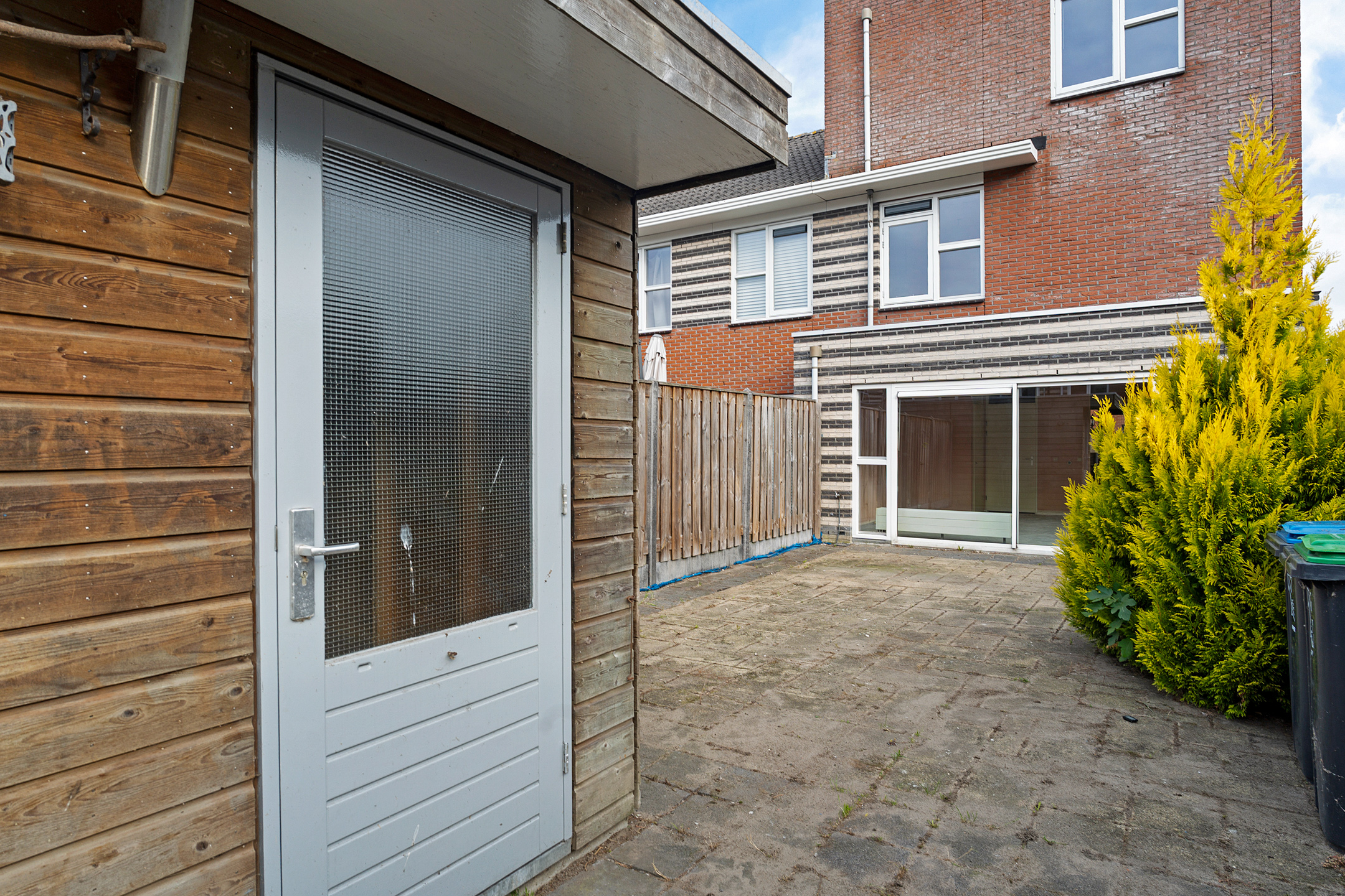 De achtertuin is gelegen op het zuiden, waardoor je hier van 's ochtends tot in de avond kunt genieten van de zon. De tuin is onderhoudsvriendelijk aangelegd met betegeling en biedt volop ruimte voor een loungehoek, eettafel of speelplek. Achterin de tuin staat een berging, ideaal voor het opbergen van fietsen en (tuin)gereedschap. Via de handige achterom is de tuin ook bereikbaar vanaf het achterpad.