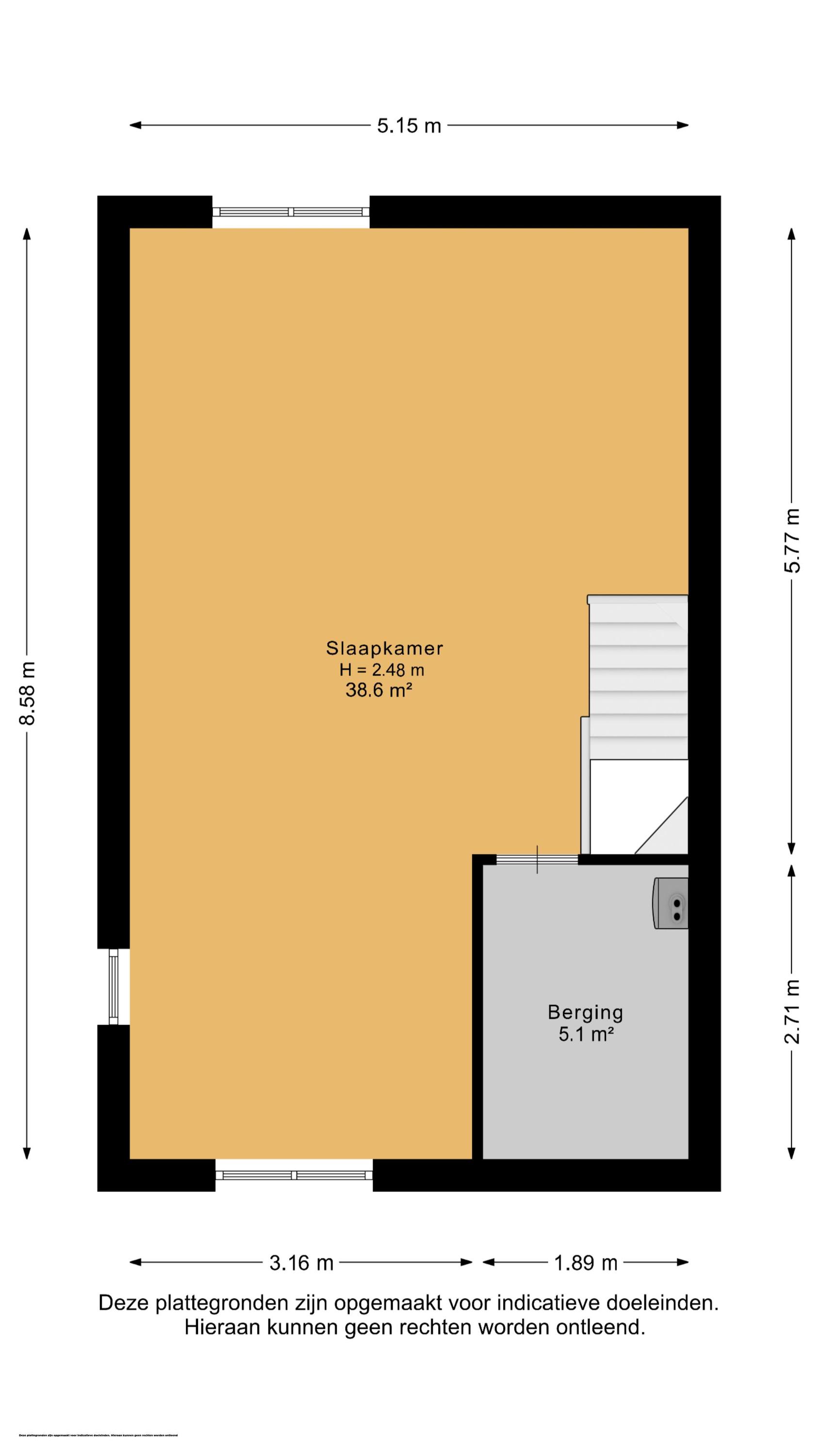 Wat een ruimte! De tweede verdieping is één grote open kamer van bijna 39 m² met een plat dak waardoor de ruimte optimaal te gebruiken is. De verdieping beschikt ook over een aparte berging met aansluiting voor wasapparatuur en de cv-ketel. Deze verdieping leent zich uitstekend als hoofdslaapkamer, werkkamer, hobbyruimte of het realiseren van twee slaapkamers!