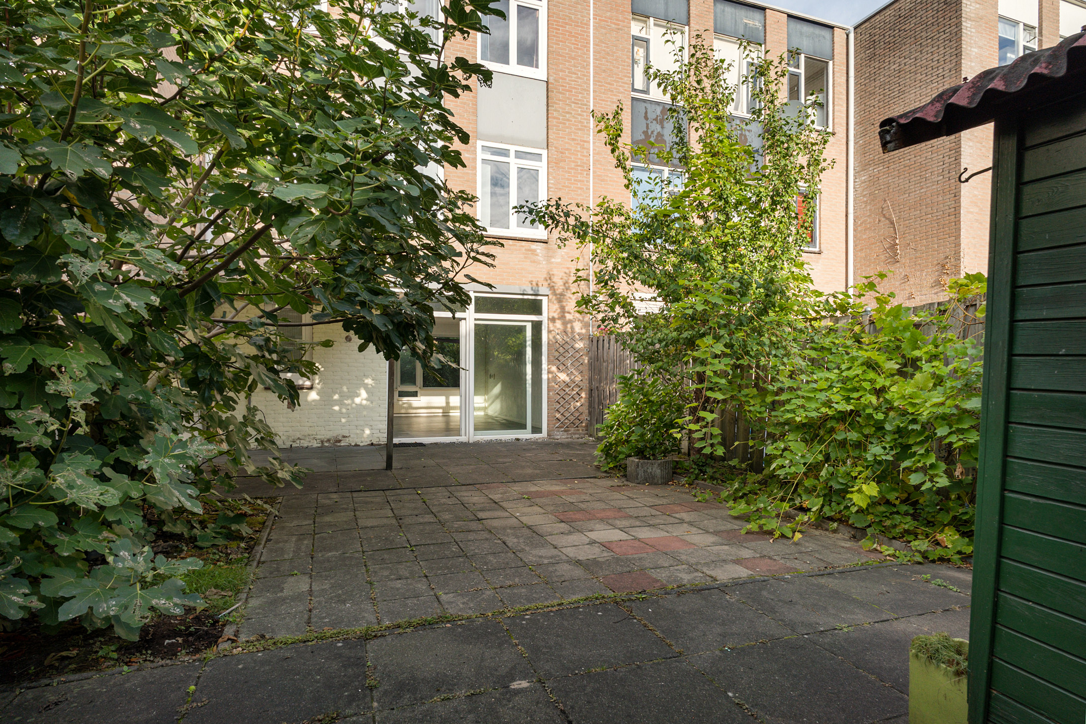 De achtertuin is maar liefst 9,5 meter diep en gesitueerd op het zuidoosten. Dankzij de gunstige ligging geniet je hier van ochtend- tot namiddagzon. De tuin is grotendeels betegeld, beschikt over volwassen beplanting en een vrijstaande houten berging.