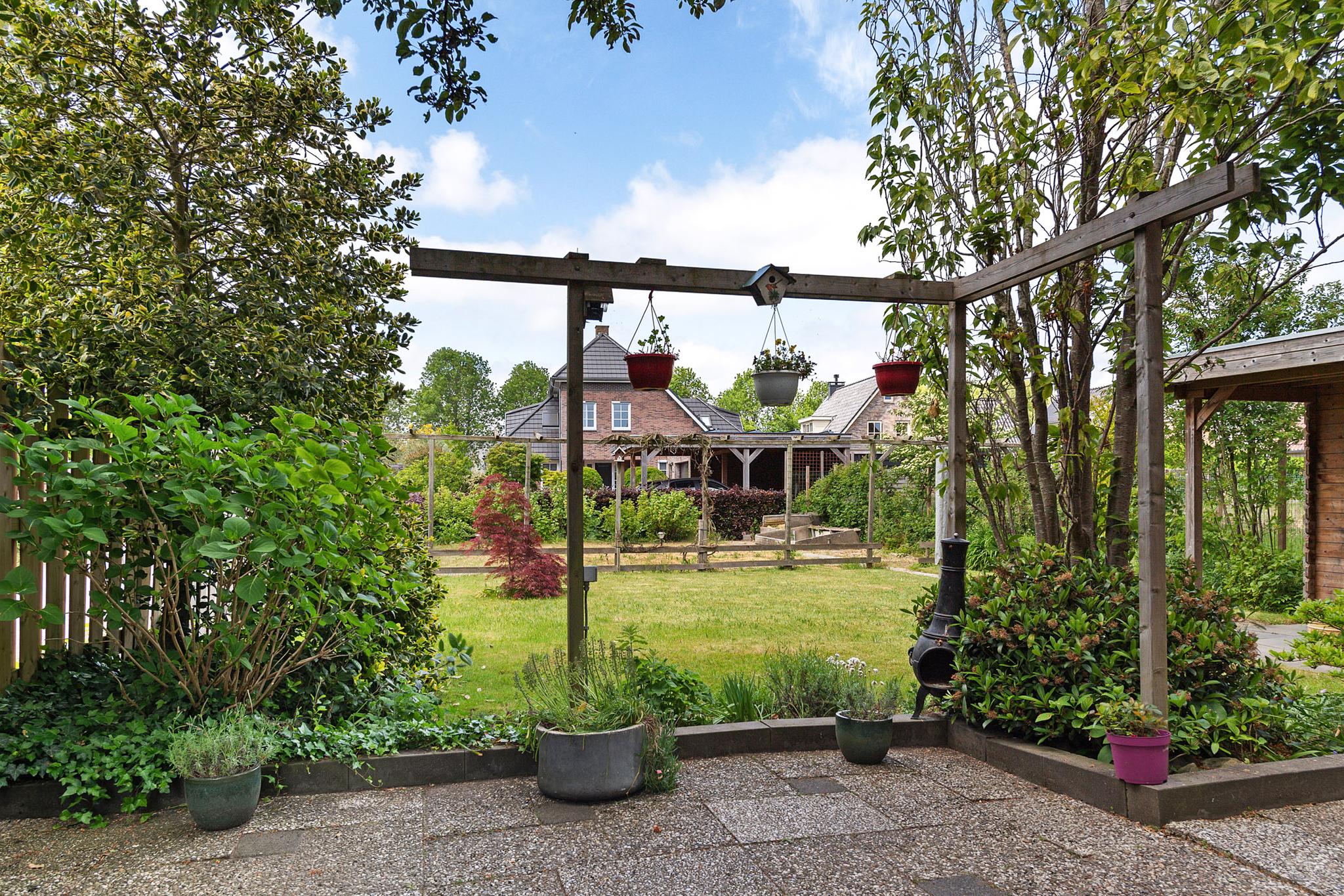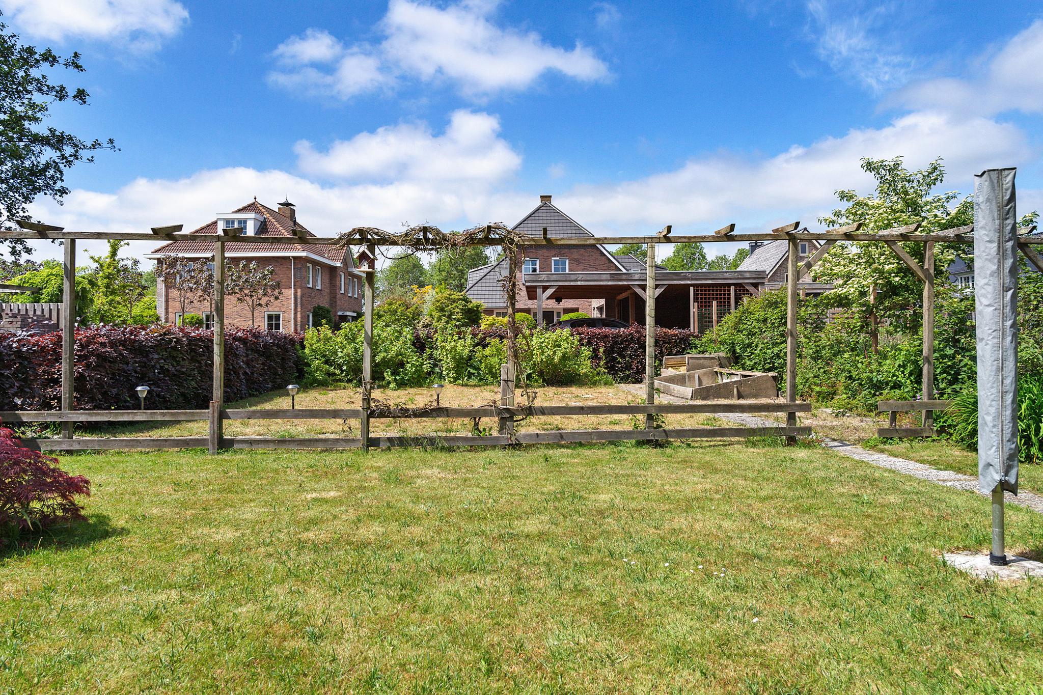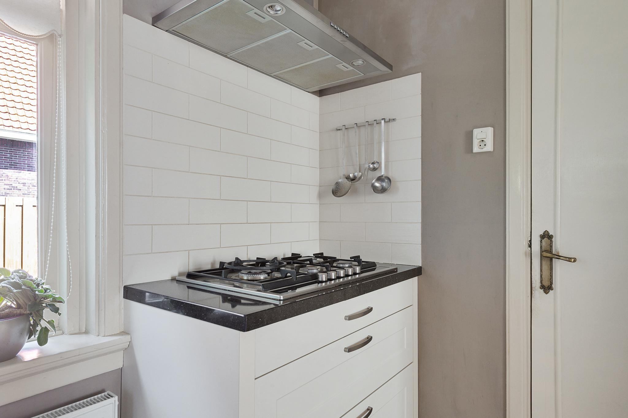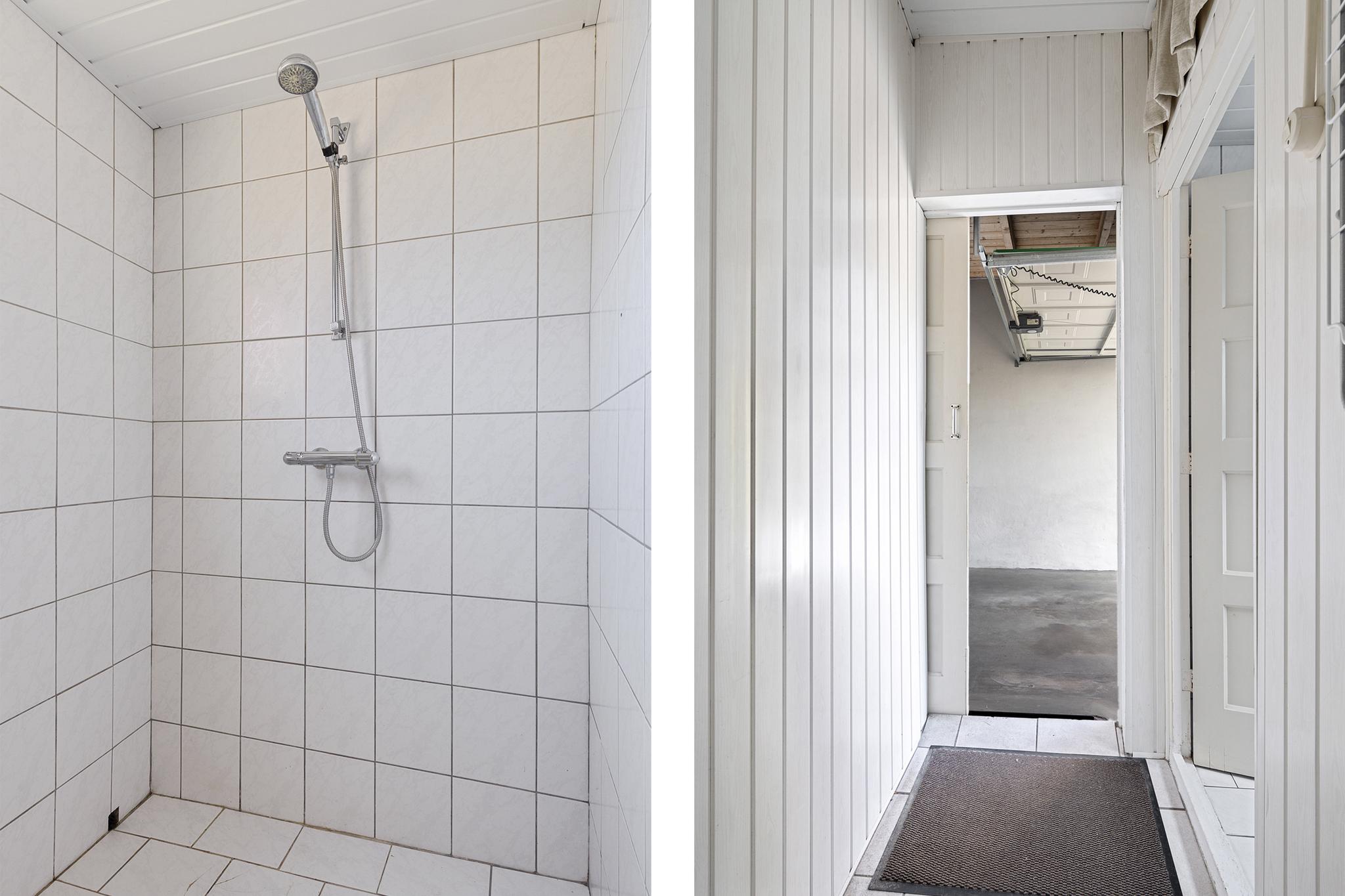 Aan de achterzijde vind je de verzorgde keuken, uitgerust met diverse inbouwapparatuur. Direct daarachter ligt de bijkeuken met plek voor je wasapparatuur. Vanuit hier loop je door naar de garage, die voorzien is van extra bergruimtes en toegang geeft tot de kelder.