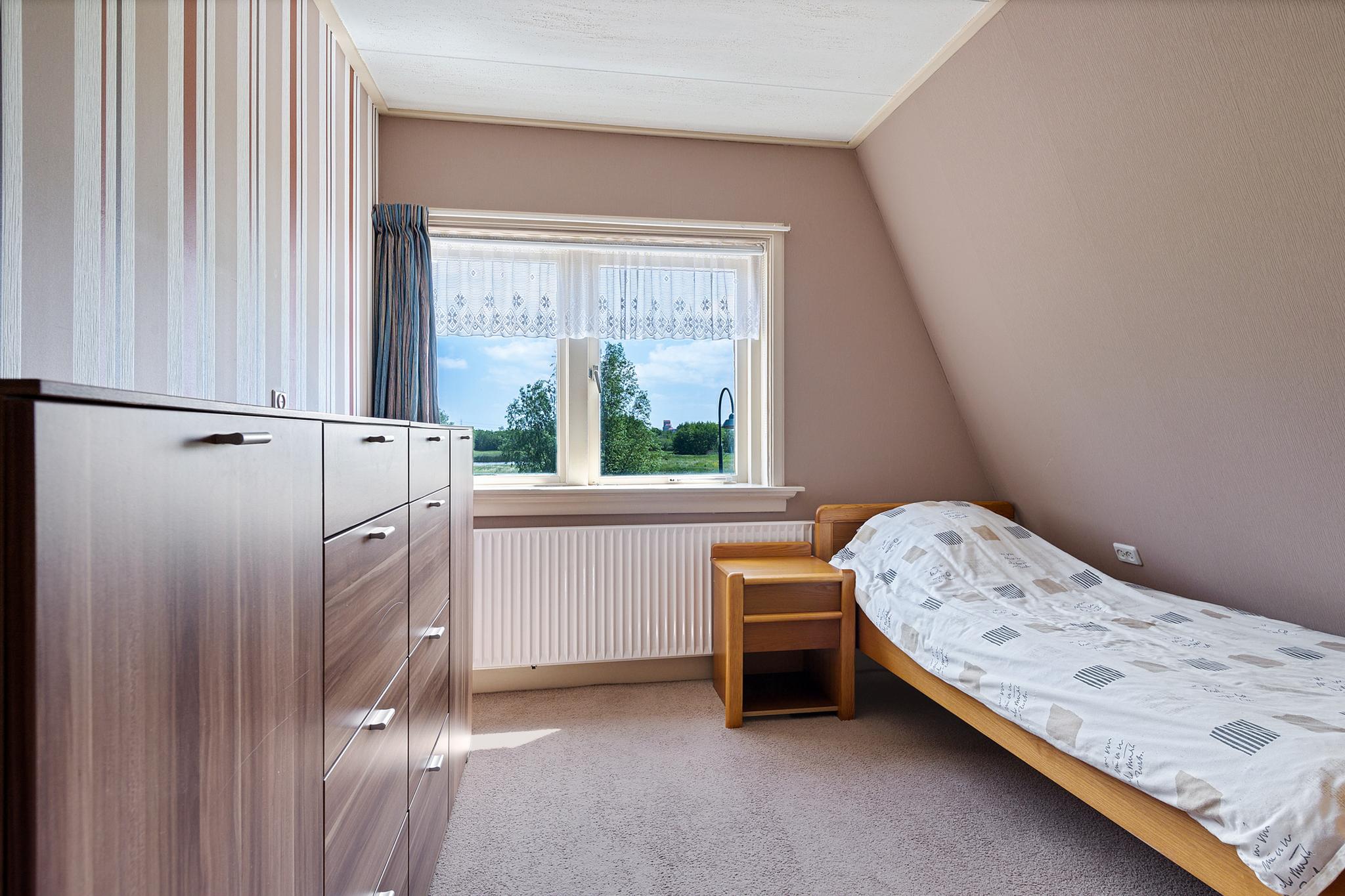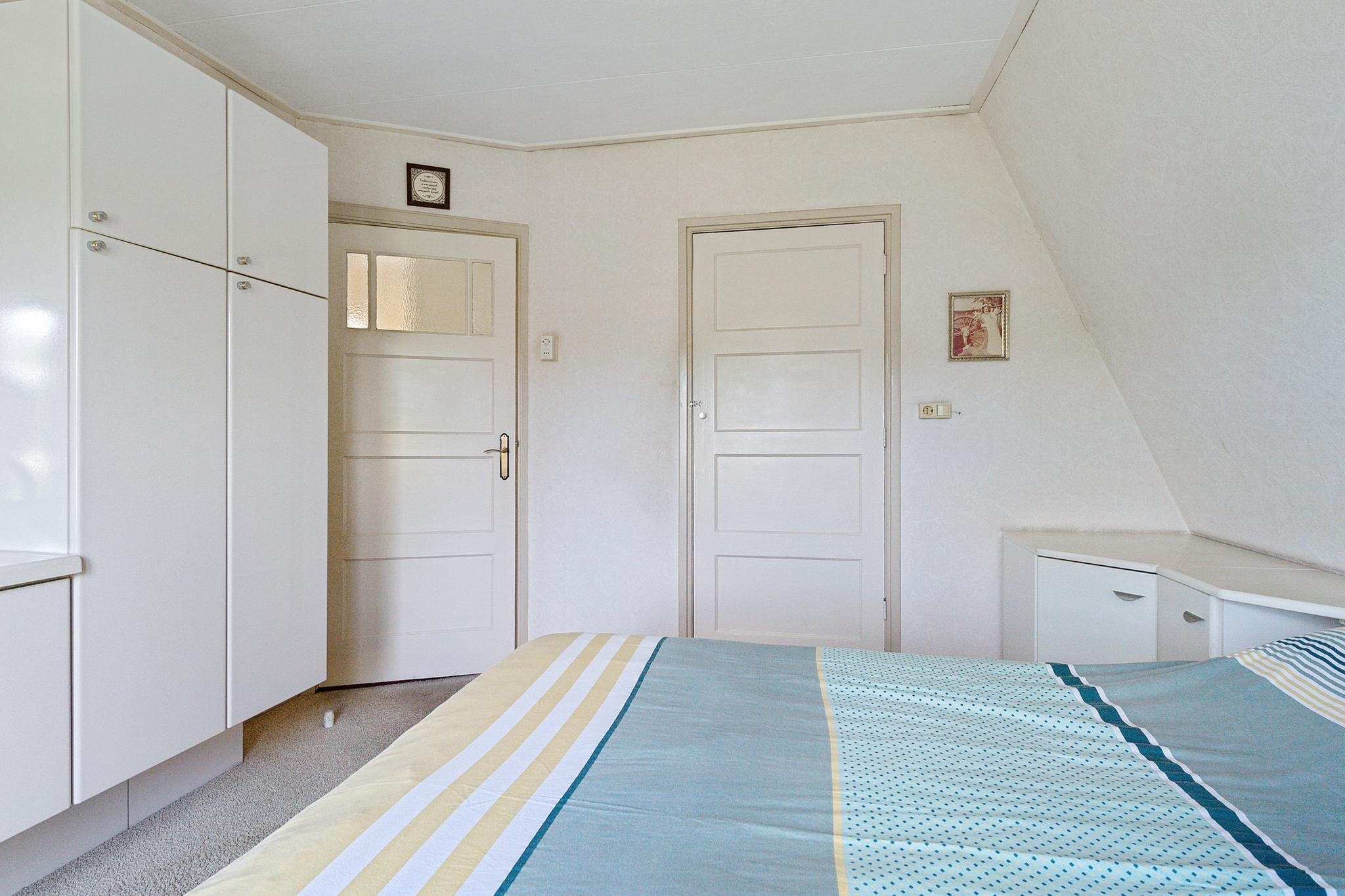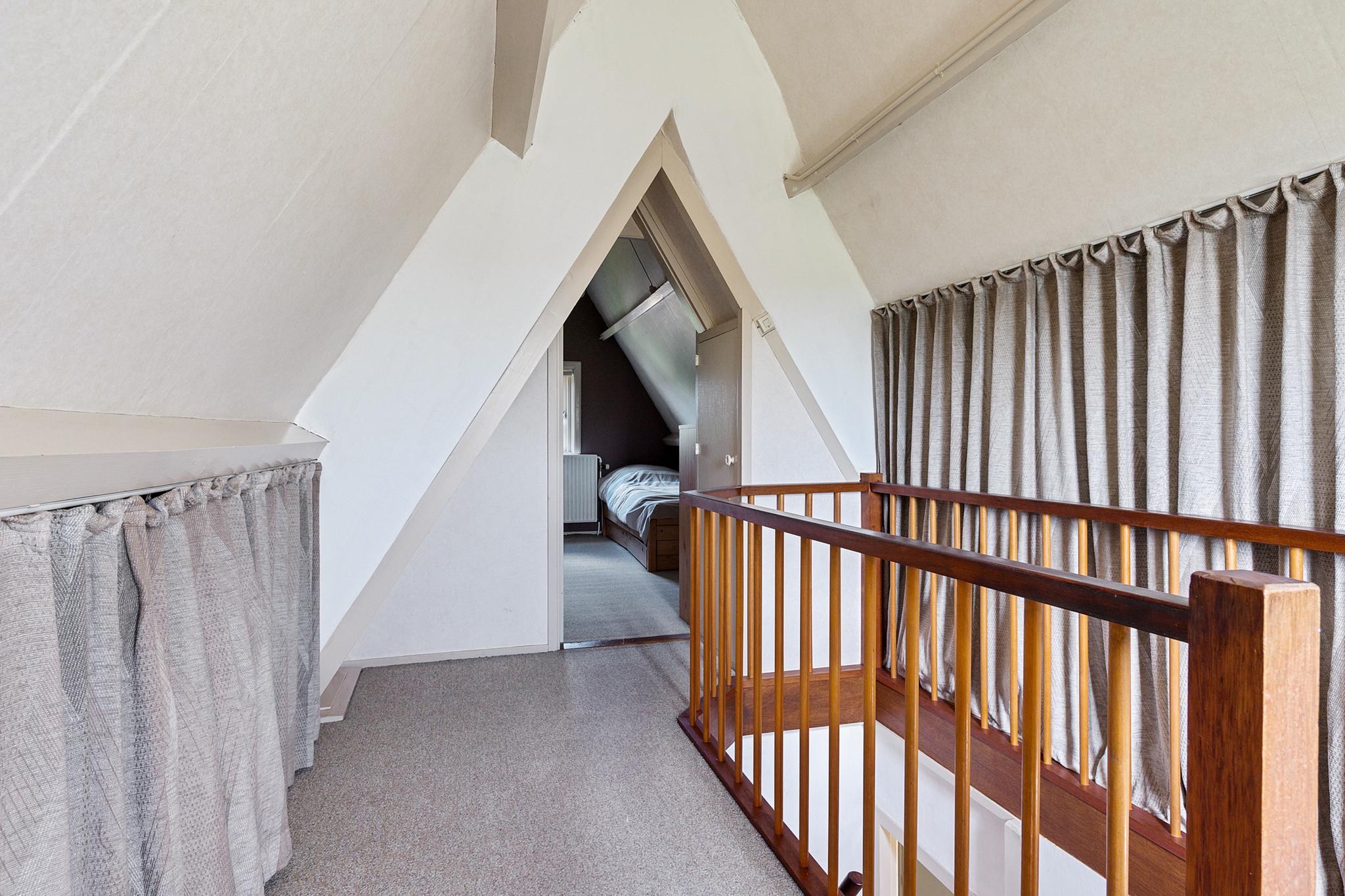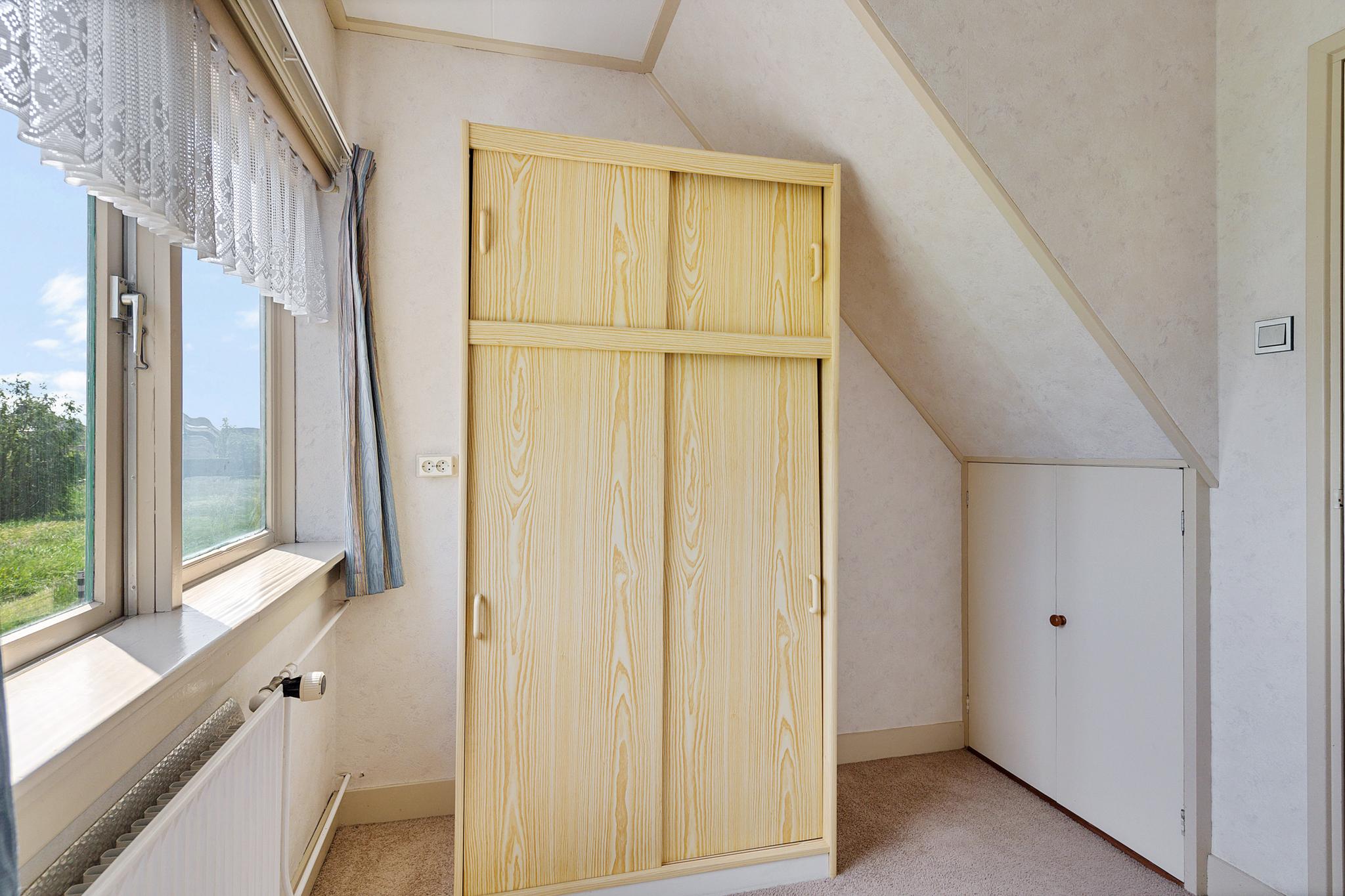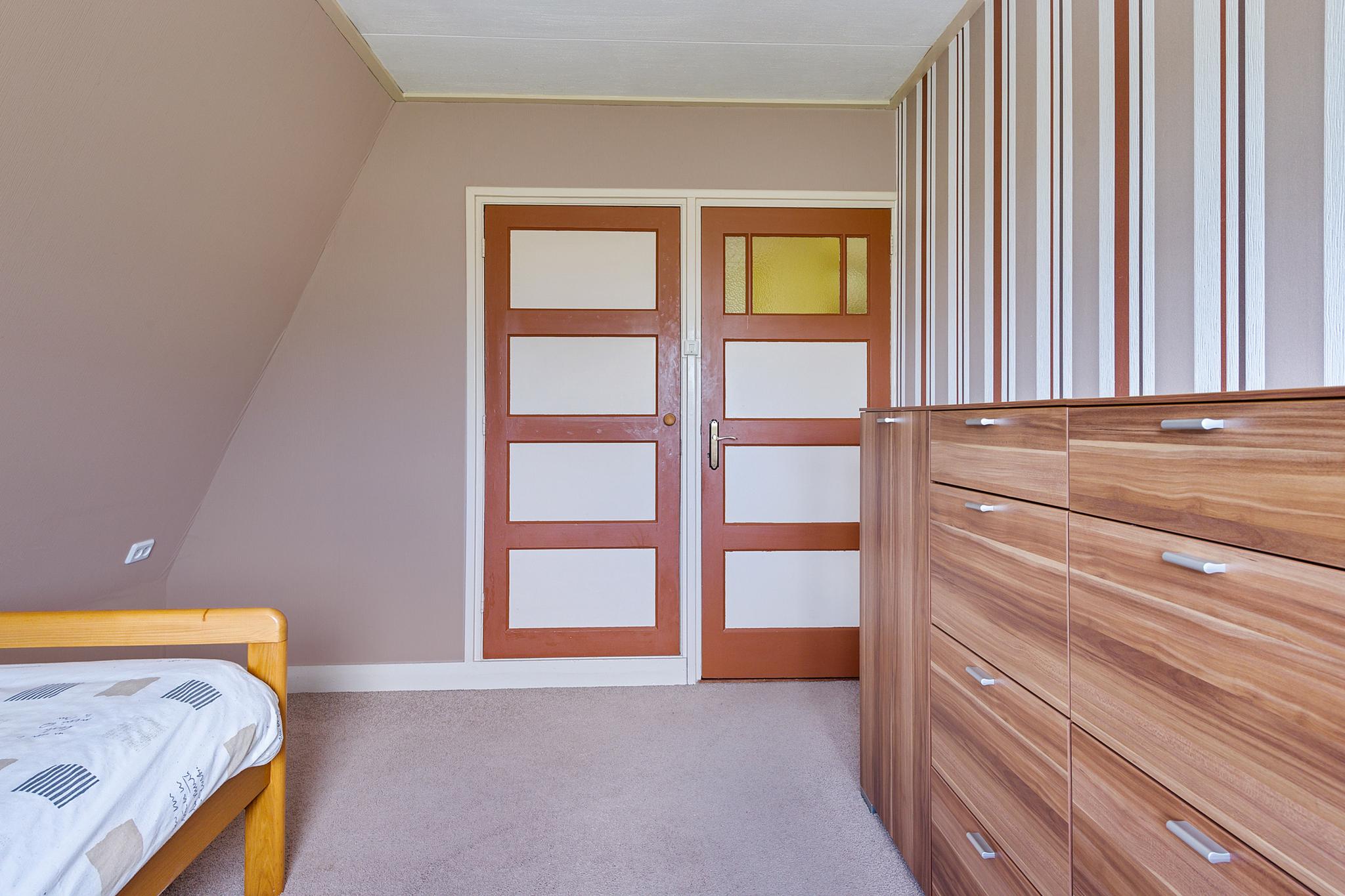 Via de ruime overloop bereik je de vierde slaapkamer, gelegen aan de achterzijde. Dankzij het dakraam geniet je hier van een prettige lichtinval. Ook is hier nog een kleine vaste bergkast aanwezig.