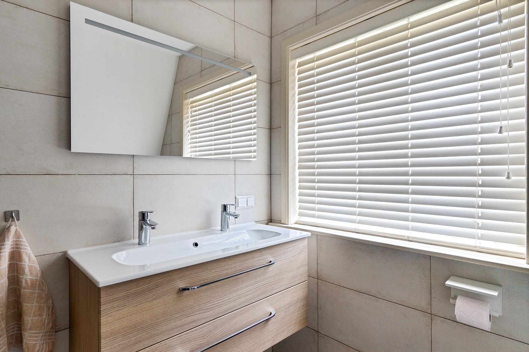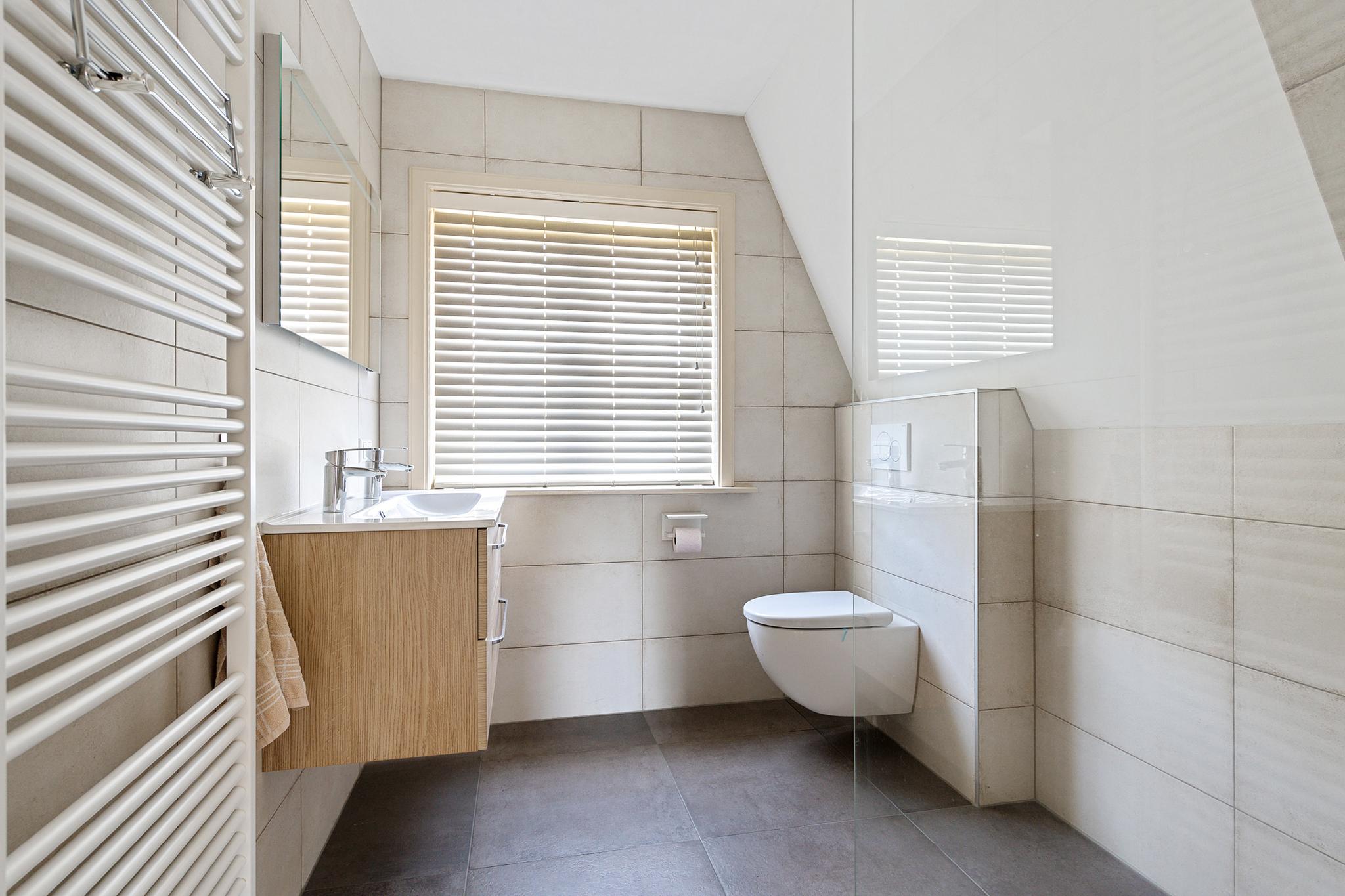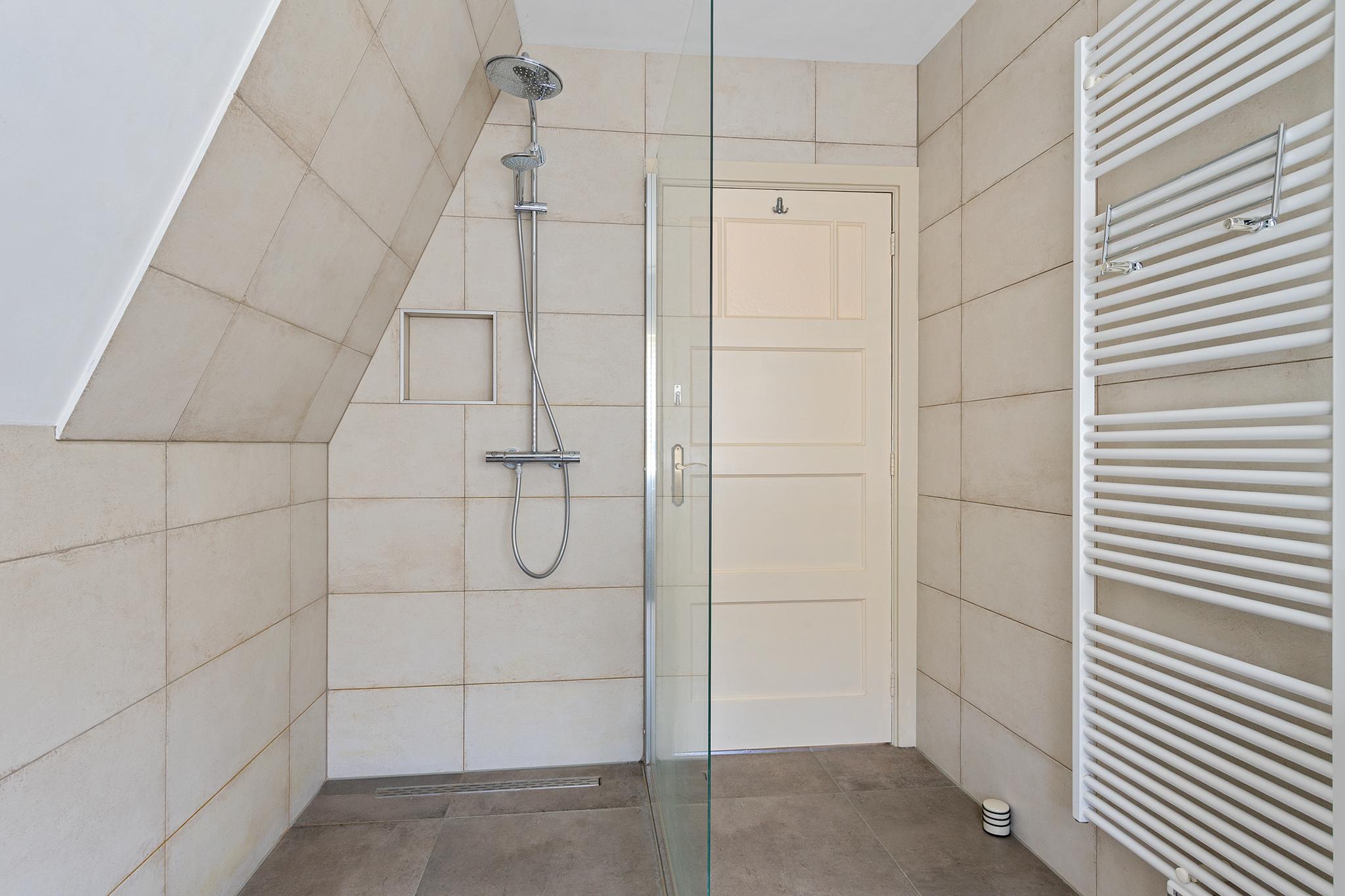 Op deze verdieping vind je drie slaapkamers. Op de overloop bevind zich ook een vaste bergkast. De grootste slaapkamer ligt aan de voorzijde en beschikt over een vaste bergkast. De slaapkamer aan de achterzijde is voorzien van een eigen wastafel en geeft toegang tot een charmant balkon. Ook deze kamer heeft een vaste bergkast. De moderne badkamer beschikt over een ruime inloopdouche, wastafelmeubel en toilet. Boven de garage ligt nog een verrassend ruime kamer die je helemaal naar wens kunt inrichten – als werkplek, hobbykamer of extra slaapkamer.