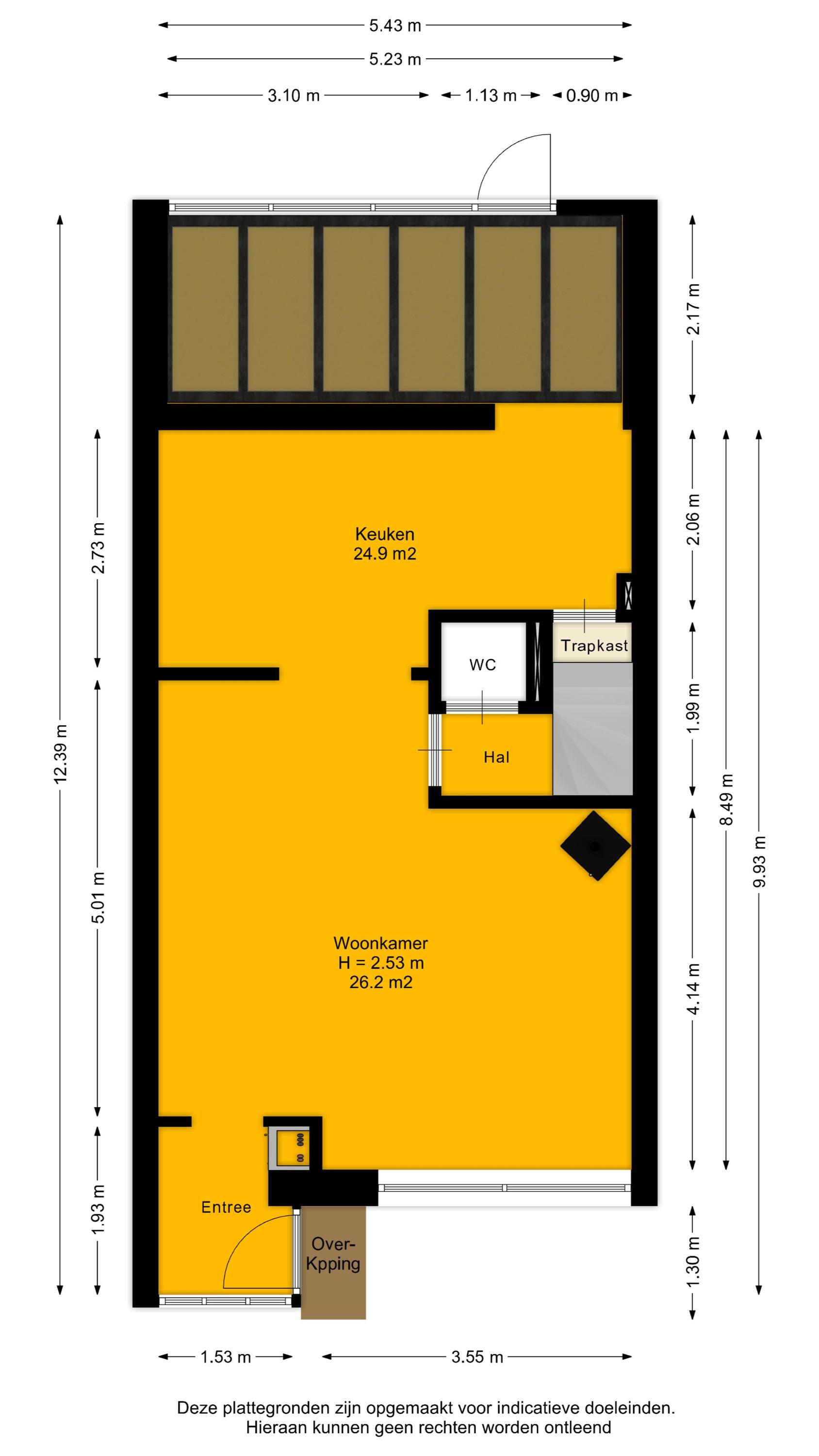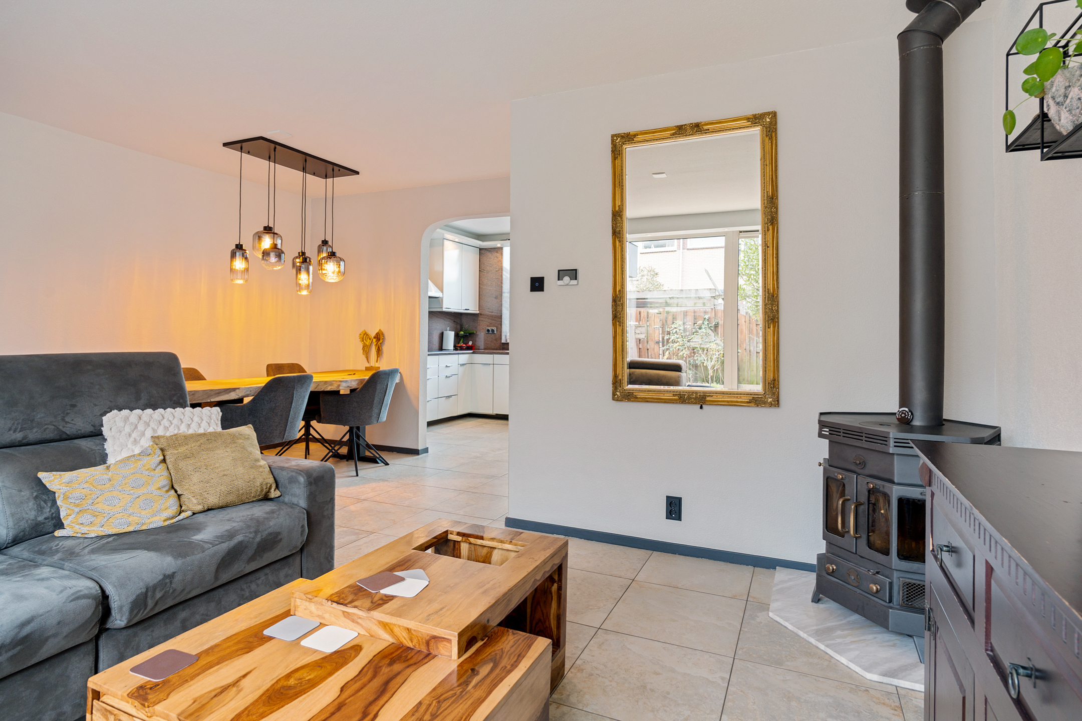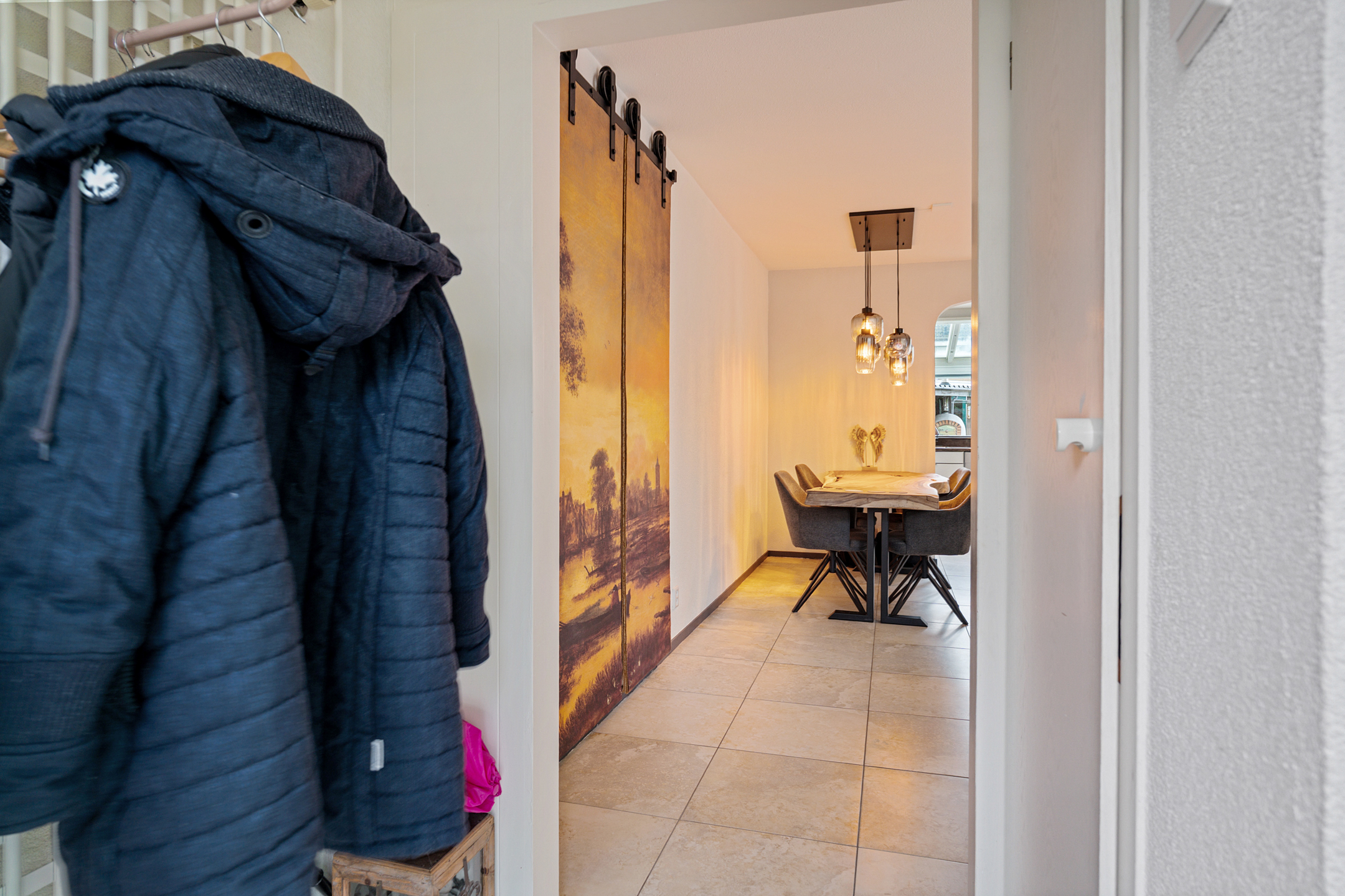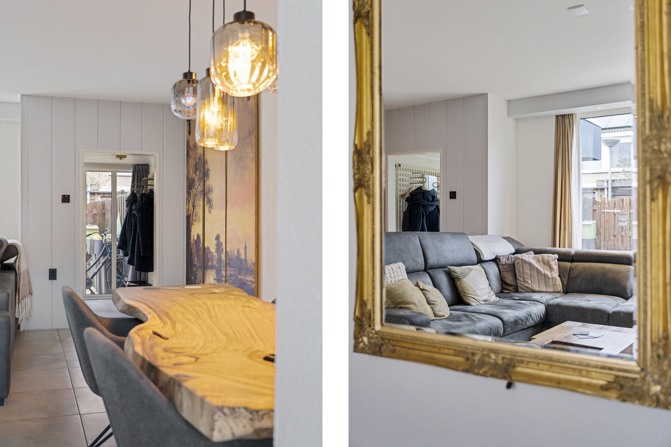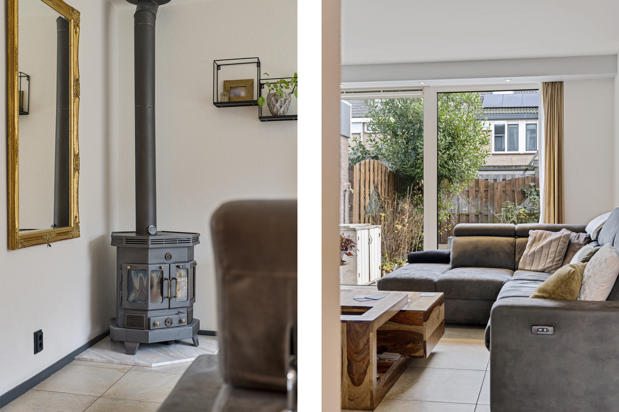 Via de entree kom je binnen in de hal met meterkast en toegang tot de woonkamer. De lichte woonkamer is prettig ingedeeld en voorzien van een schuifpui aan de voorzijde, wat zorgt voor veel daglicht en een open gevoel. Aan de achterzijde bevindt zich de serre, die als verlengde van de woonruimte wordt ervaren.