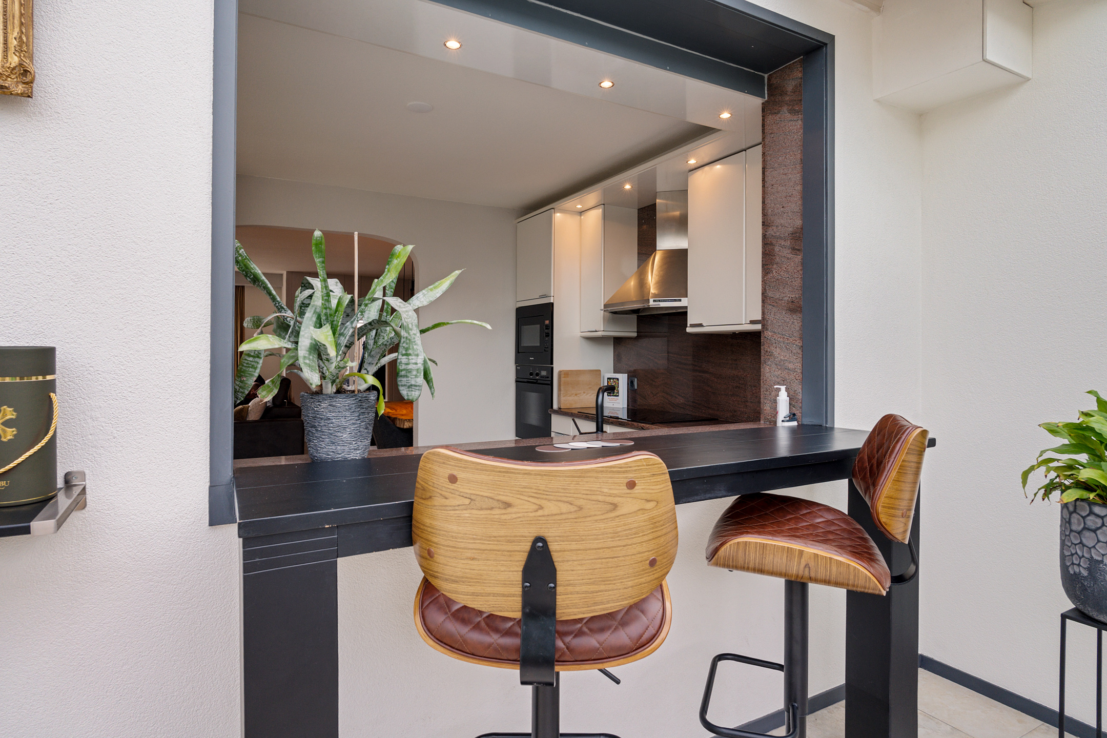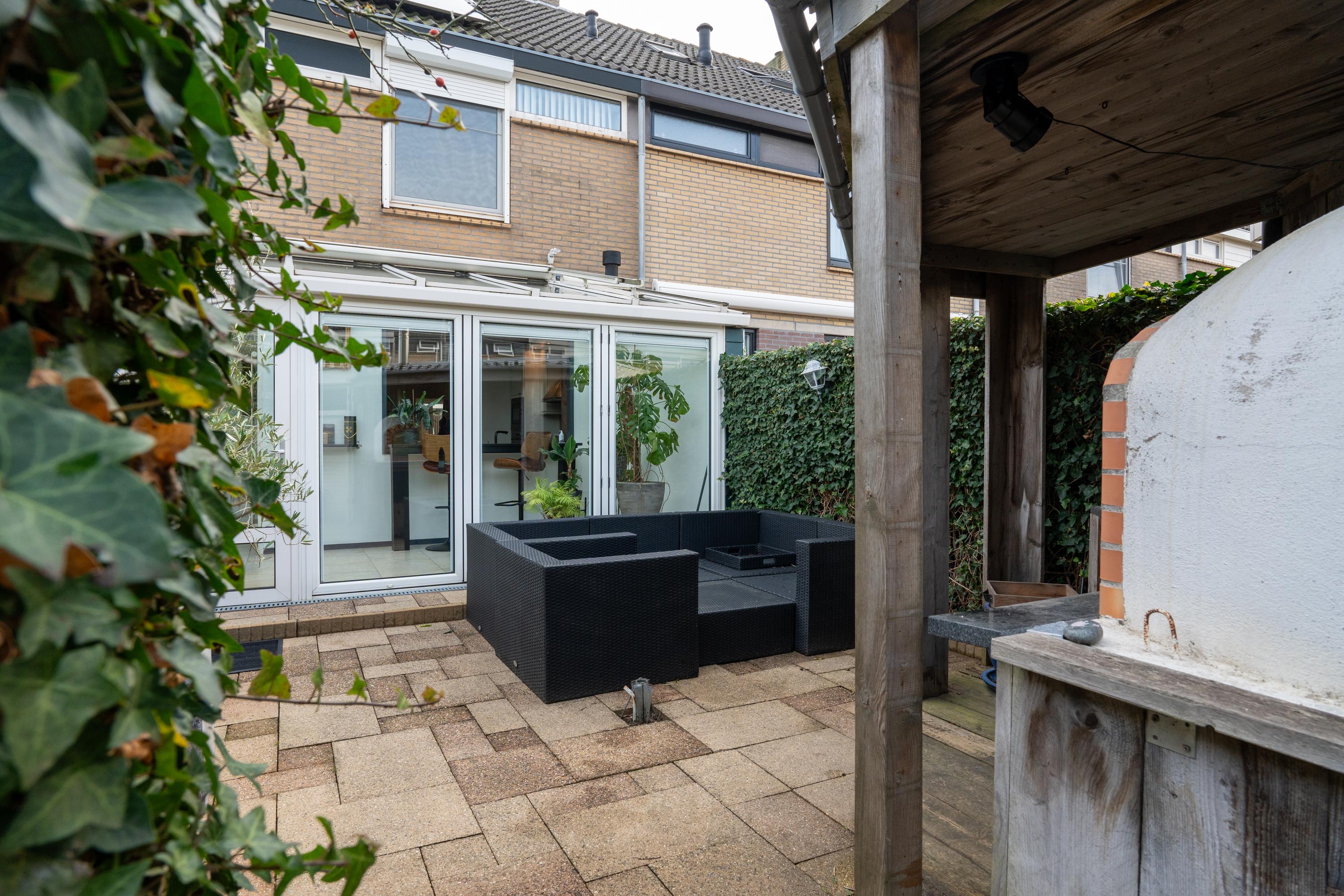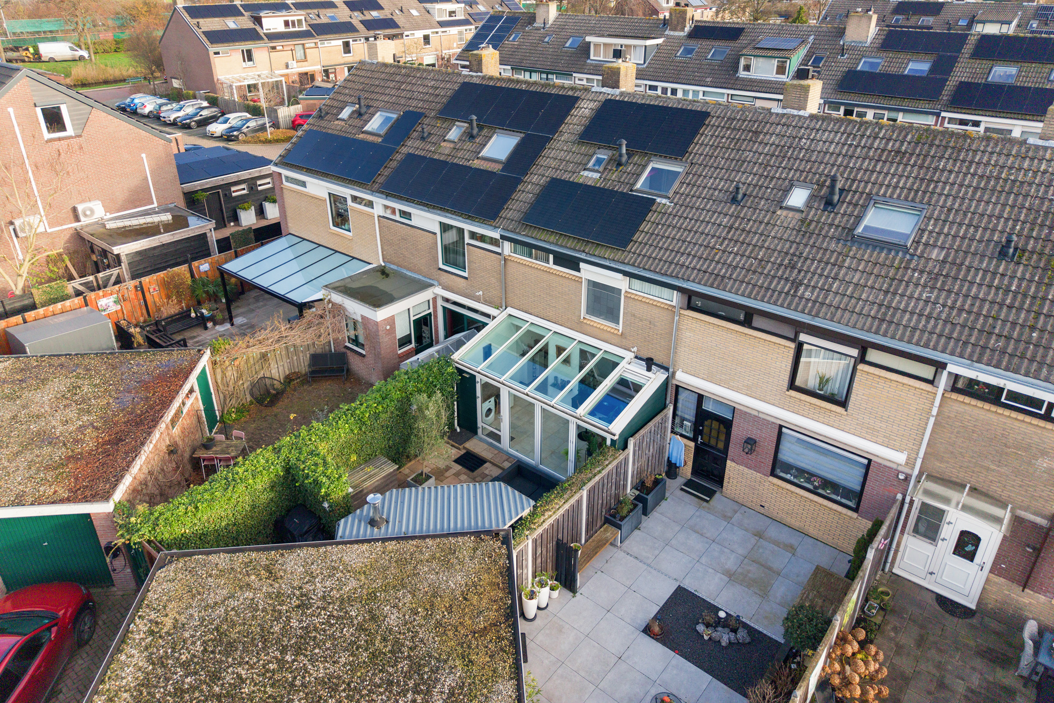 Aansluitend aan de woning bevindt zich de serre, een waardevolle toevoeging die het buitenleven op een natuurlijke manier met binnen verbindt. De serre is voorzien van speciale zon- /warmte werende en isolerende plissé op de binnenzijde van de ramen en aan de buitenzijde is er een elektrisch zonnescherm. De garage is bereikbaar vanuit de tuin en voorzien van een elektrische deur en extra bergruimte.