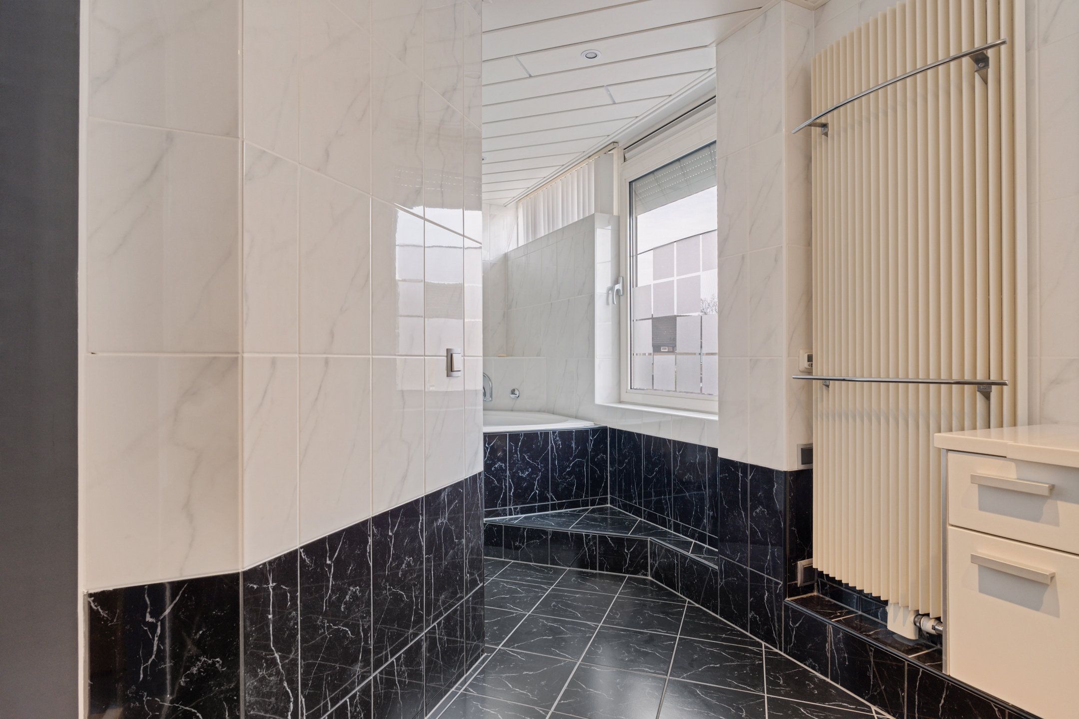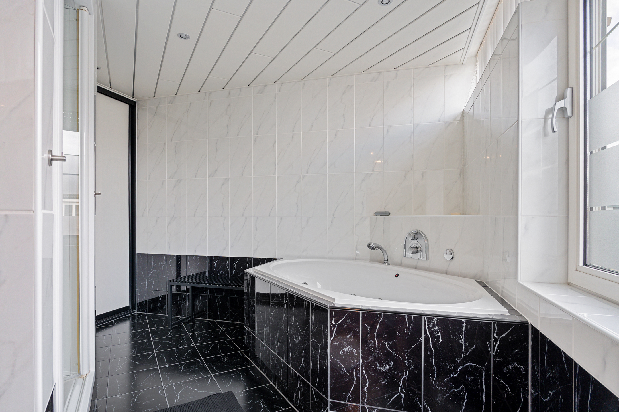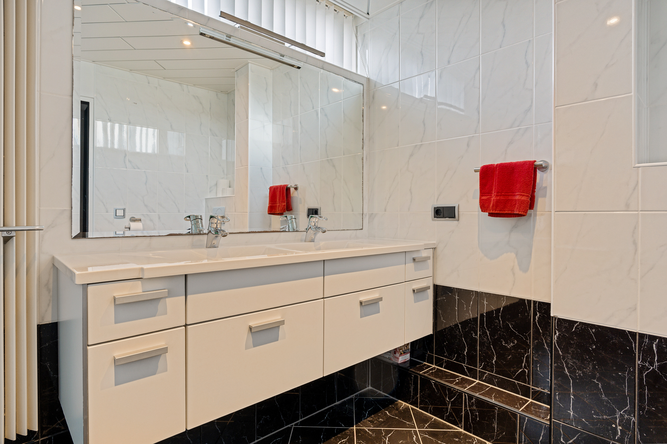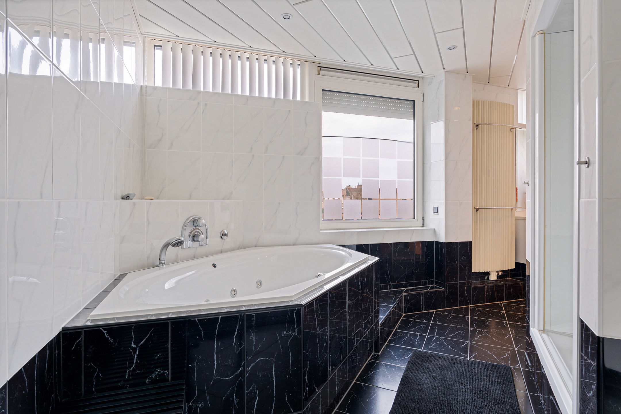 Op de eerste verdieping bevinden zich aan de voorzijde twee ruime slaapkamers. De slaapkamers zijn tevens allemaal voorzien van raamhorren. Aan de achterzijde ligt de badkamer. De royale badkamer (ca. 13 m²) is voorzien van een ligbad met whirlpool functie, dubbele wastafel, royale inbouwkast, multi spray douchecabine en een tweede toilet.