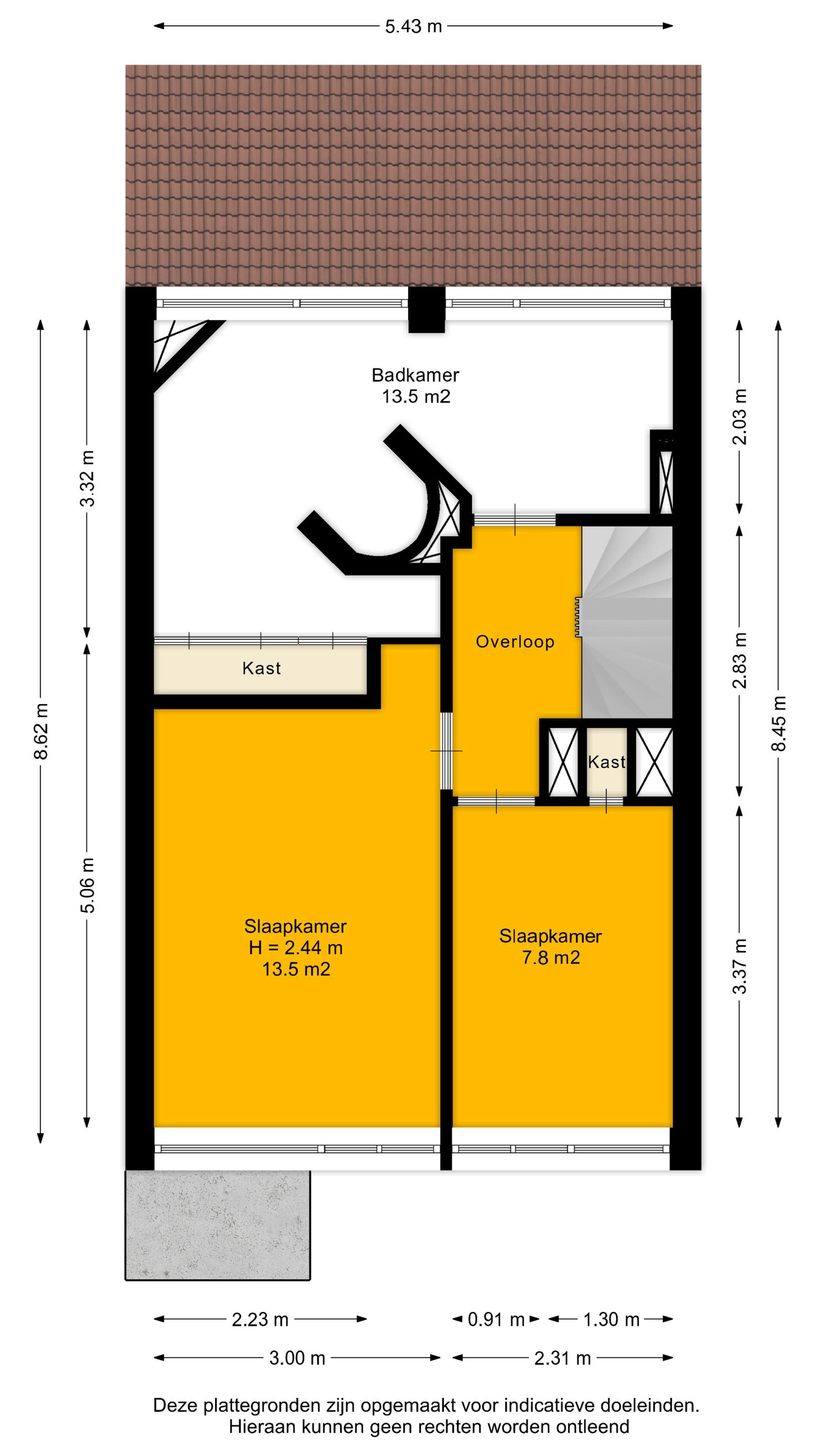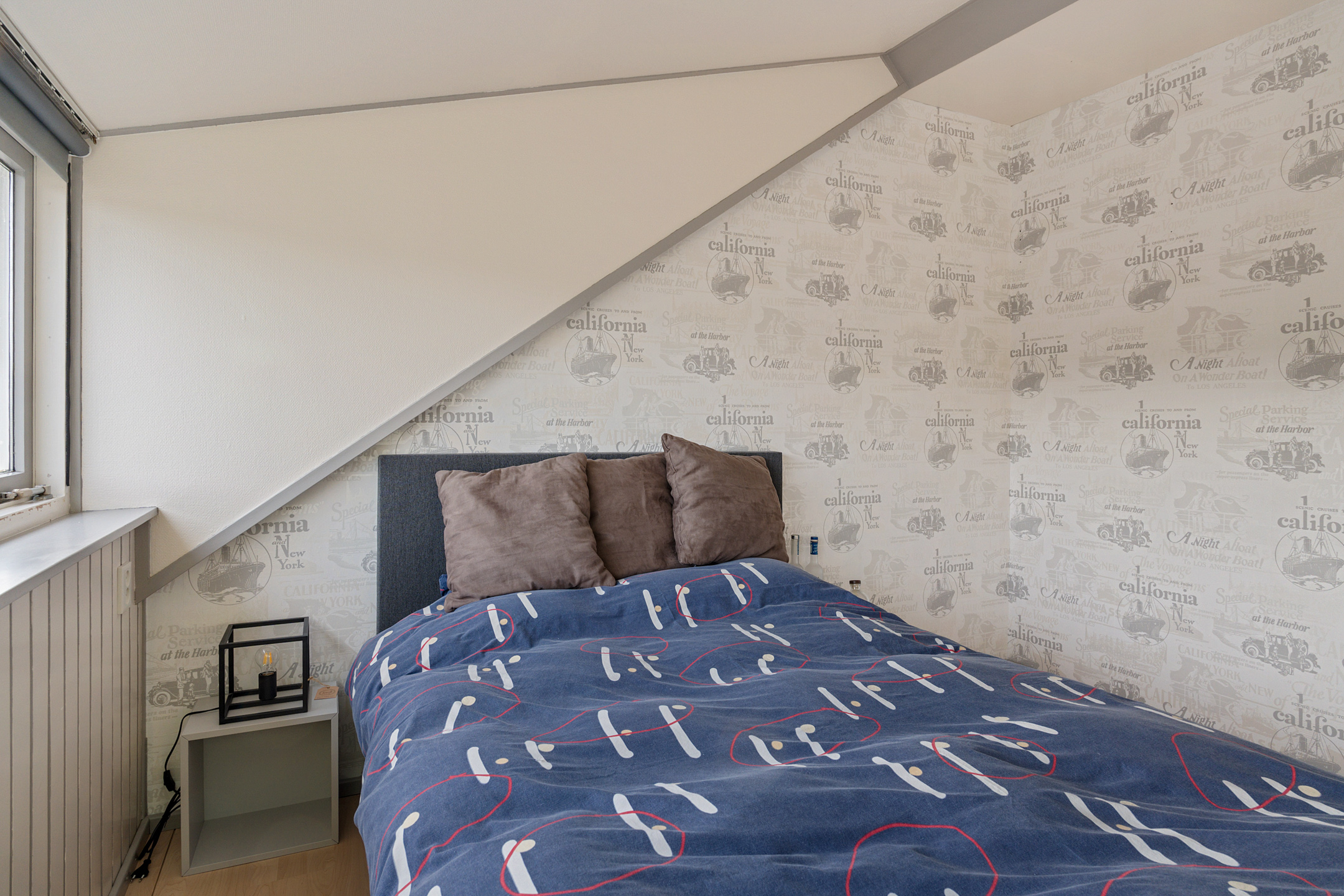 De zolderverdieping is praktisch ingedeeld en biedt ruimte aan twee slaapkamers. Beide kamers beschikken over daglicht, mede dankzij de dakkapel, en zijn geschikt als slaap-, werk- of hobbyruimte. Daarnaast bevinden zich hier de opstelplaats van de cv-installatie en extra bergruimte.