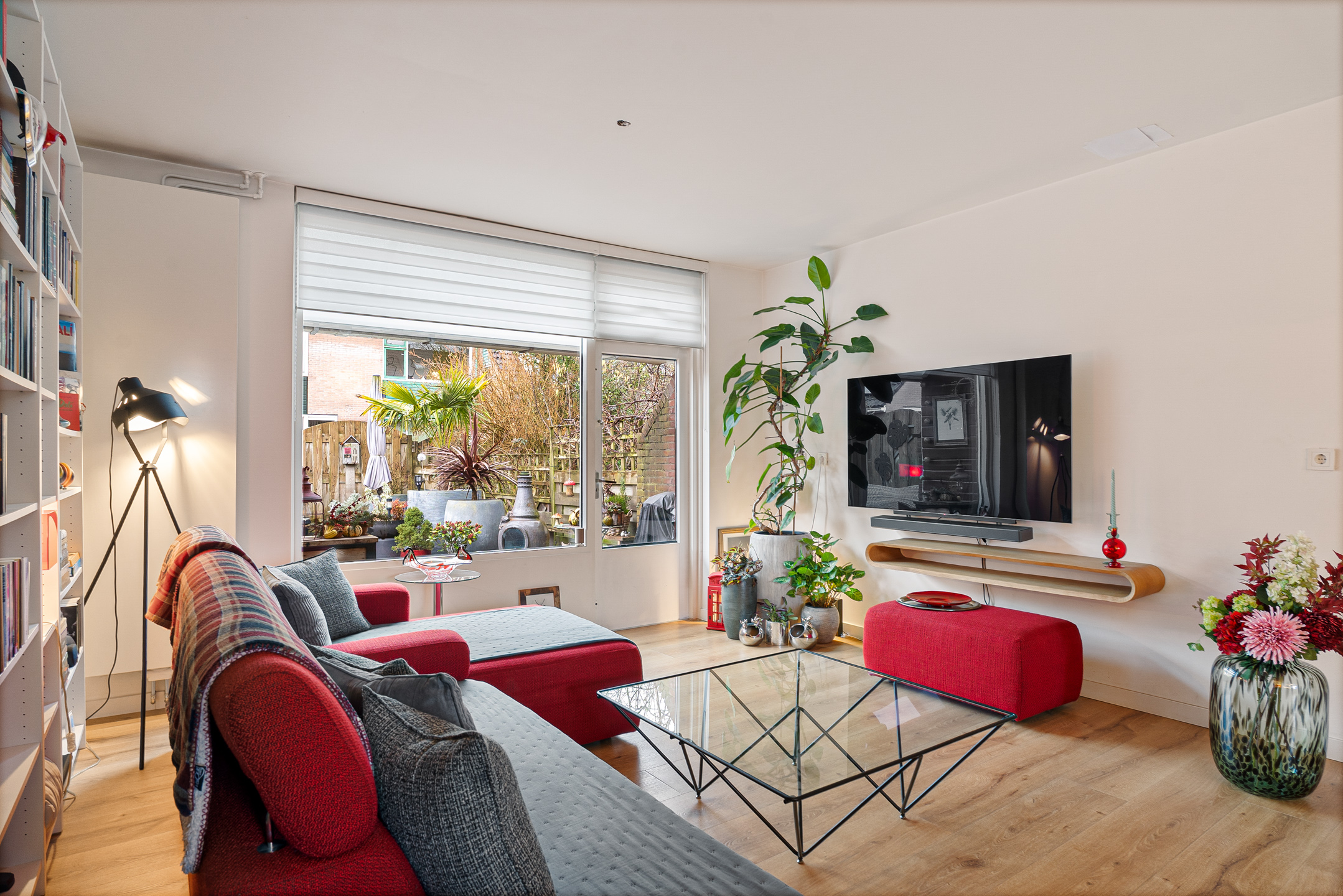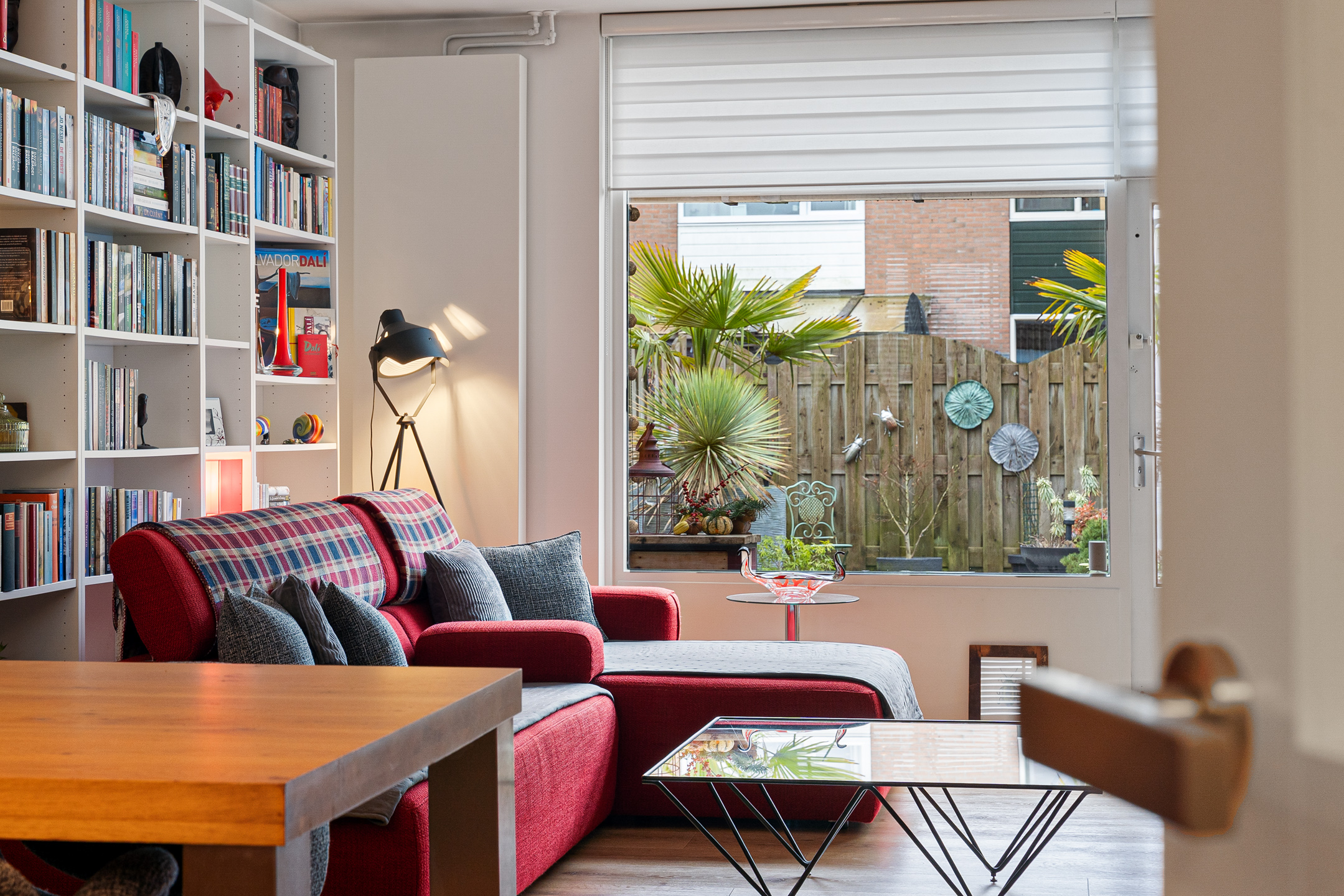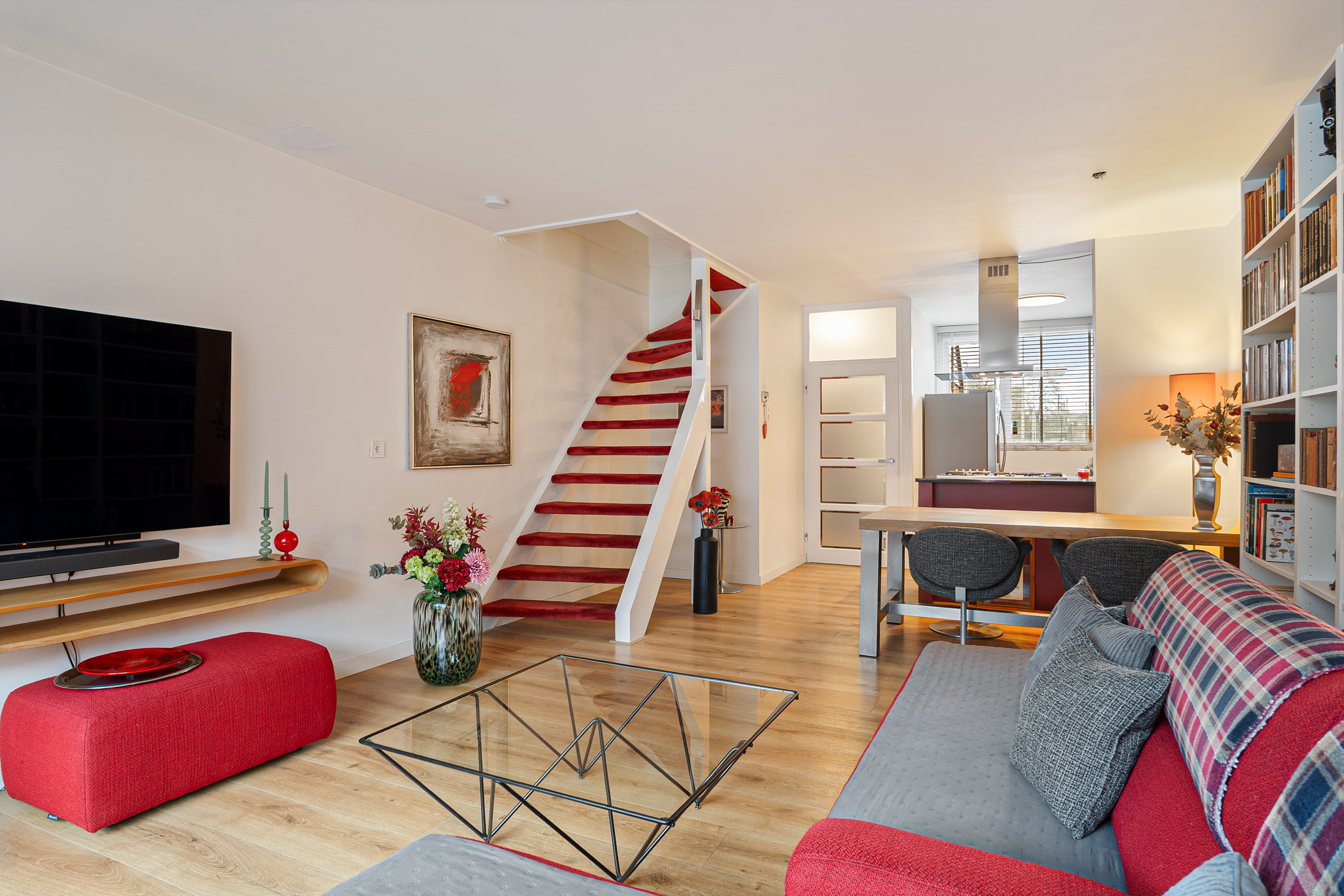 De ruime en lichte woonkamer is in 2018 geheel verbouwd: de open haard, haardplateau, gesloten trapopgang en bergkast zijn uitgebroken, waardoor de woning nu een veel ruimere opstelling heeft gekregen met een mooie open trapopgang. Wel is er nog een mogelijkheid tot het installeren van een nieuwe houtkachel.