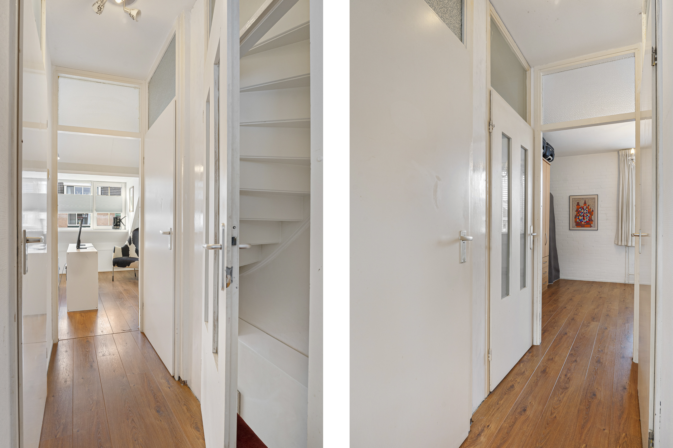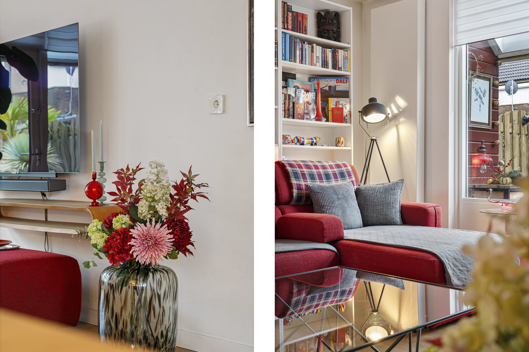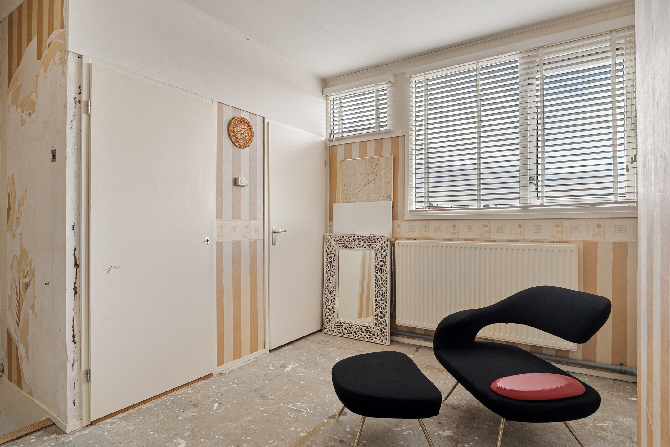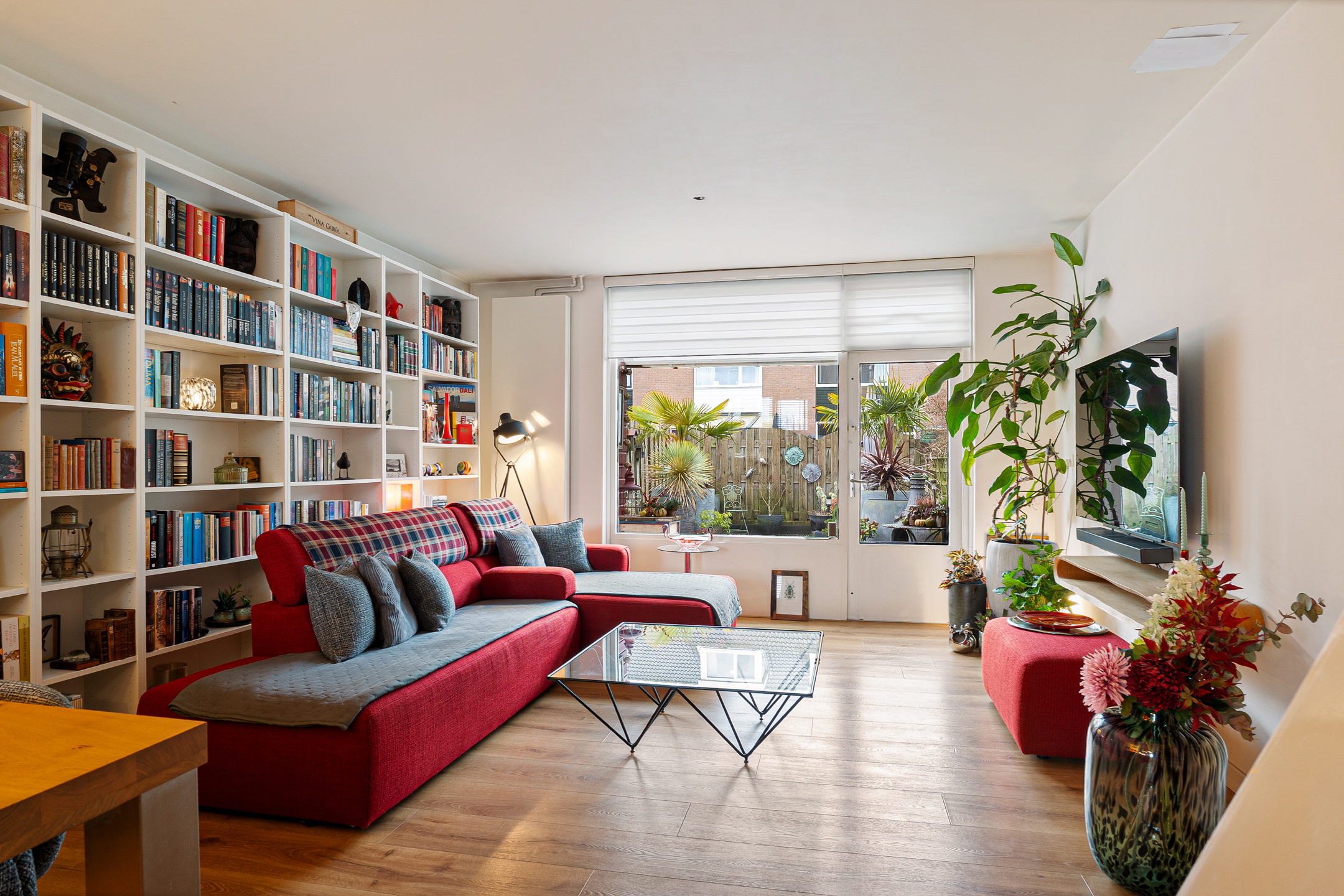 De ruime en lichte woonkamer is in 2018 geheel verbouwd: de open haard, haardplateau, gesloten trapopgang en bergkast zijn uitgebroken, waardoor de woning nu een veel ruimere opstelling heeft gekregen met een mooie open trapopgang. Wel is er nog een mogelijkheid tot het installeren van een nieuwe houtkachel.