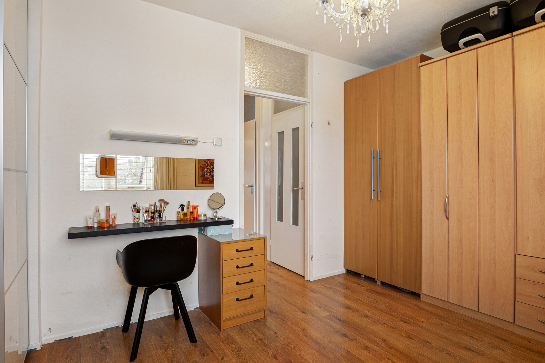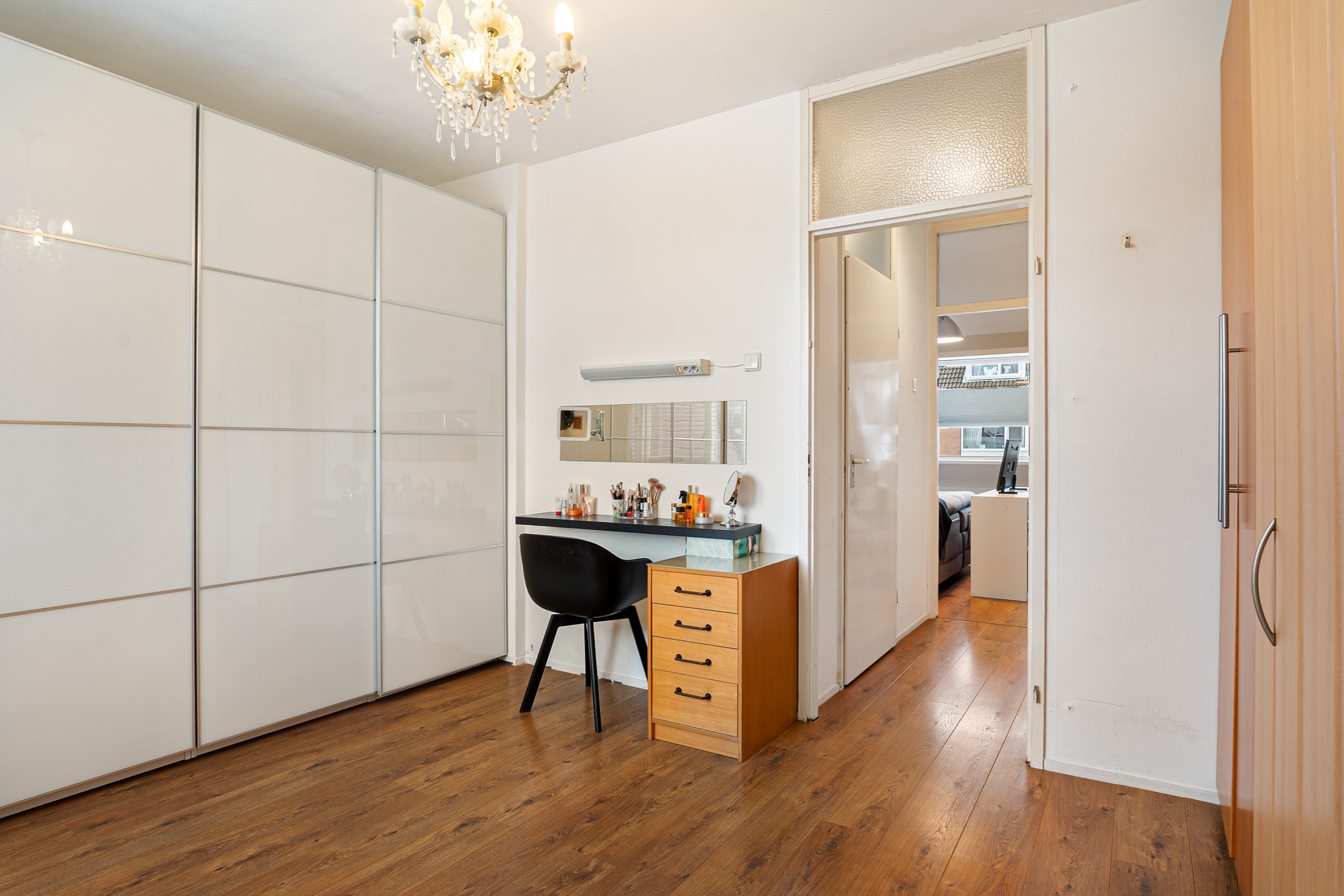 Op de eerste verdieping bevinden zich twee royale slaapkamers, beide over de gehele breedte van de woning. De slaapkamer aan de voorzijde is voorzien van een laminaatvloer.