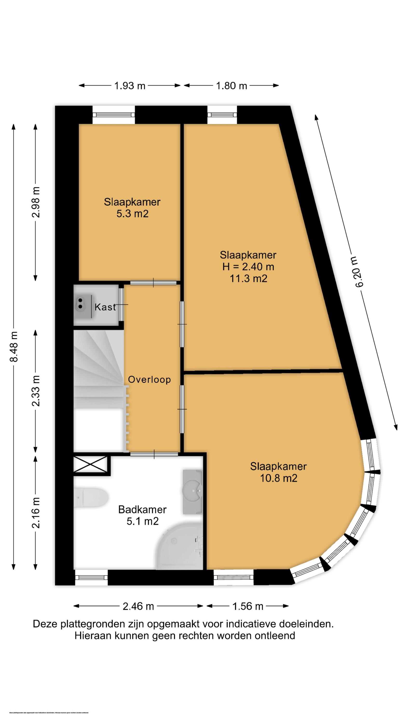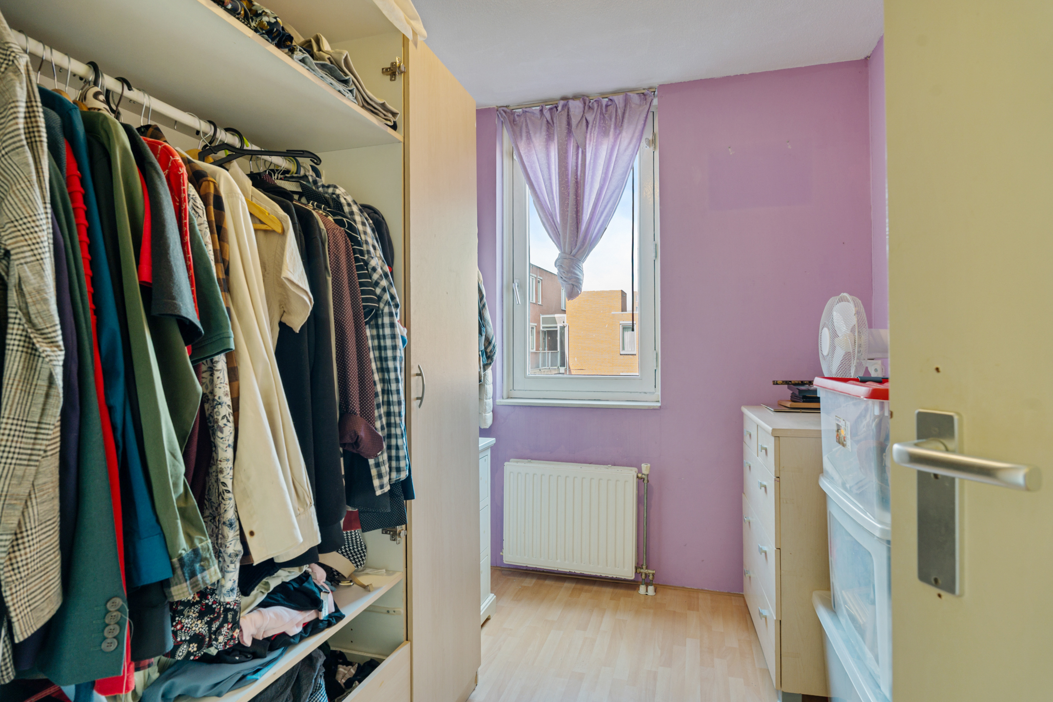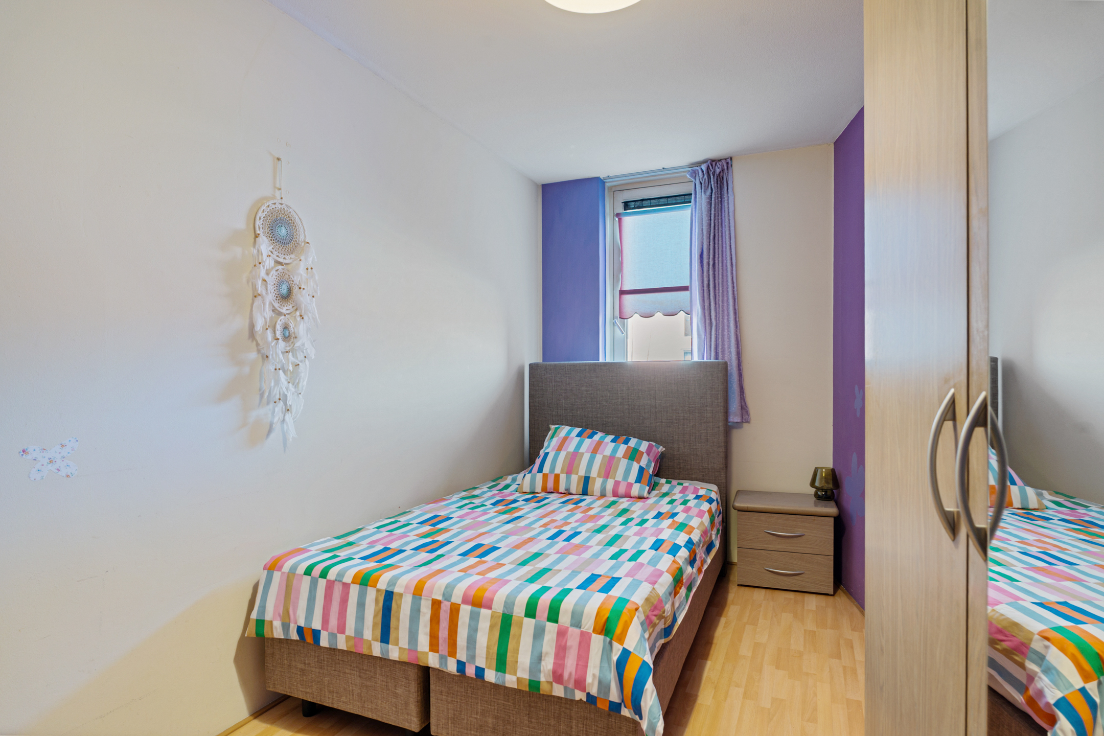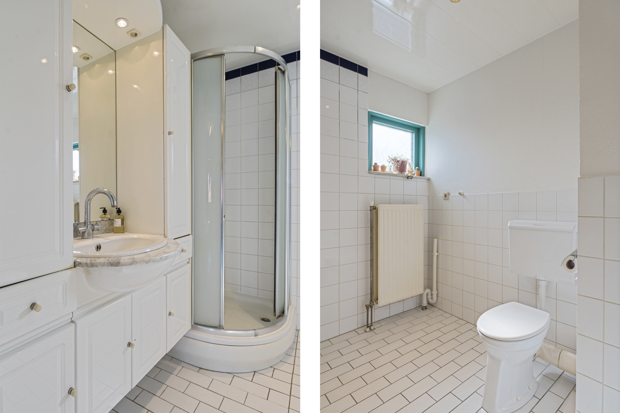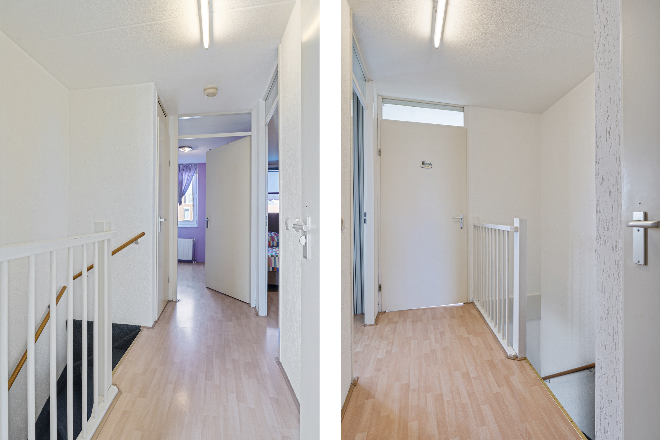 Hier vind je drie slaapkamers: twee aan de achterzijde en één aan de voorzijde. De slaapkamer aan de achterzijde wordt momenteel gebruikt als inloopkast, maar is ook ideaal als werk- of logeerkamer. De ruime badkamer ligt aan de voorzijde en is uitgerust met een douchecabine, wastafelmeubel en een tweede toilet. De gehele woning is afgewerkt met een nette laminaatvloer.