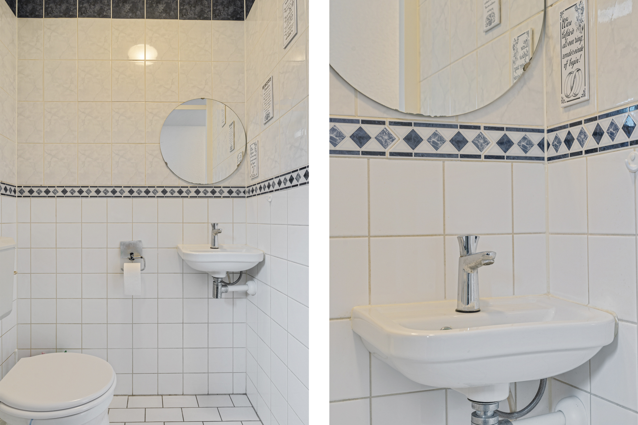In de hal bevindt zich ook een separaat toilet. Via de trap bereik je de eerste verdieping. Bij de woning hoort een eigen parkeerplaats, wat het woongemak compleet maakt.