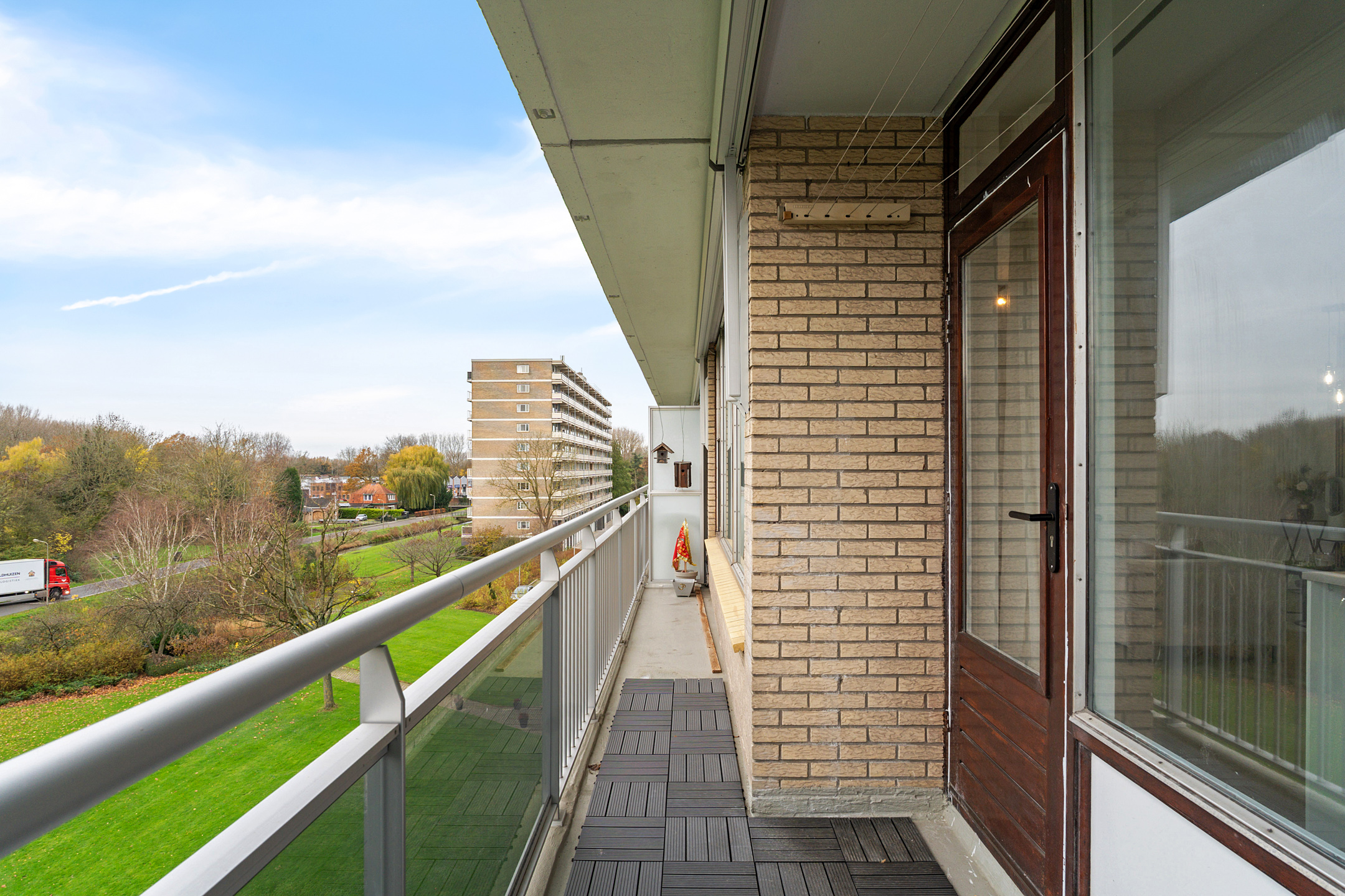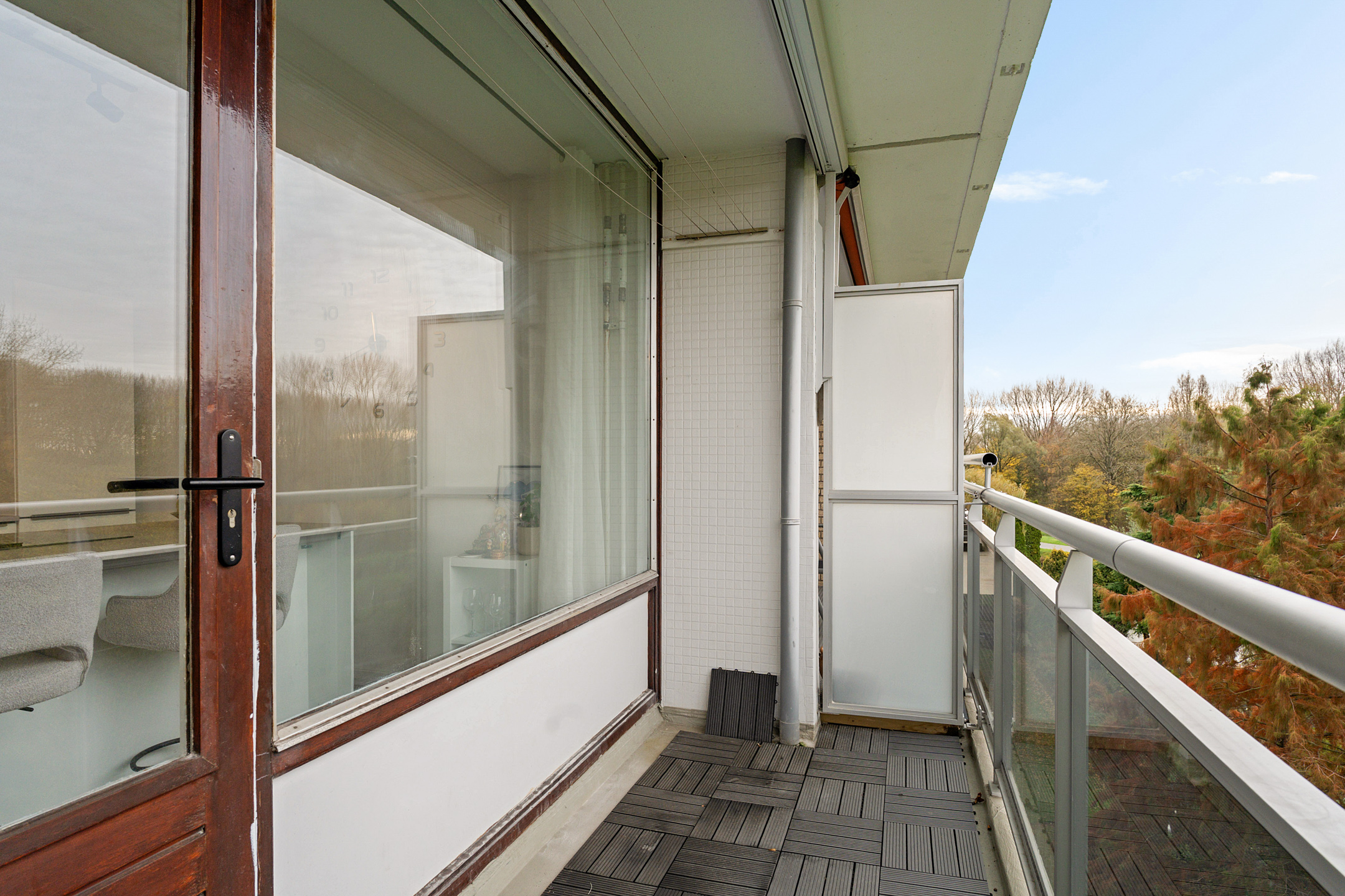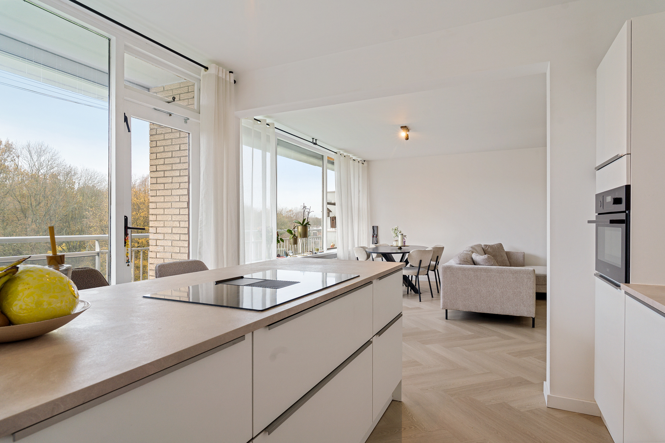 De woonkamer is ruim opgezet en geniet van een prettige lichtinval dankzij de grote raampartijen. De ruimte is strak afgewerkt en vormt samen met de open keuken een fijne leefruimte. Vanuit de woonkamer is het balkon bereikbaar, een comfortabele plek om buiten te zitten.