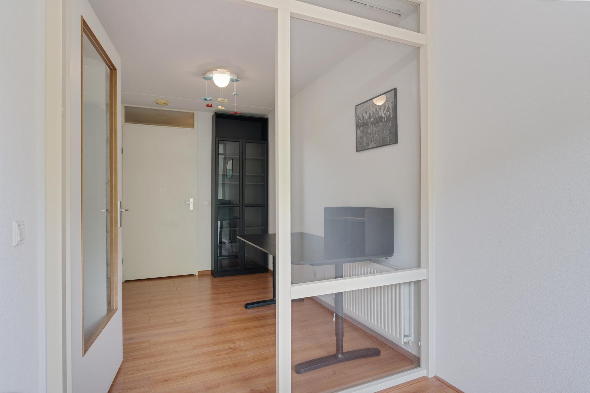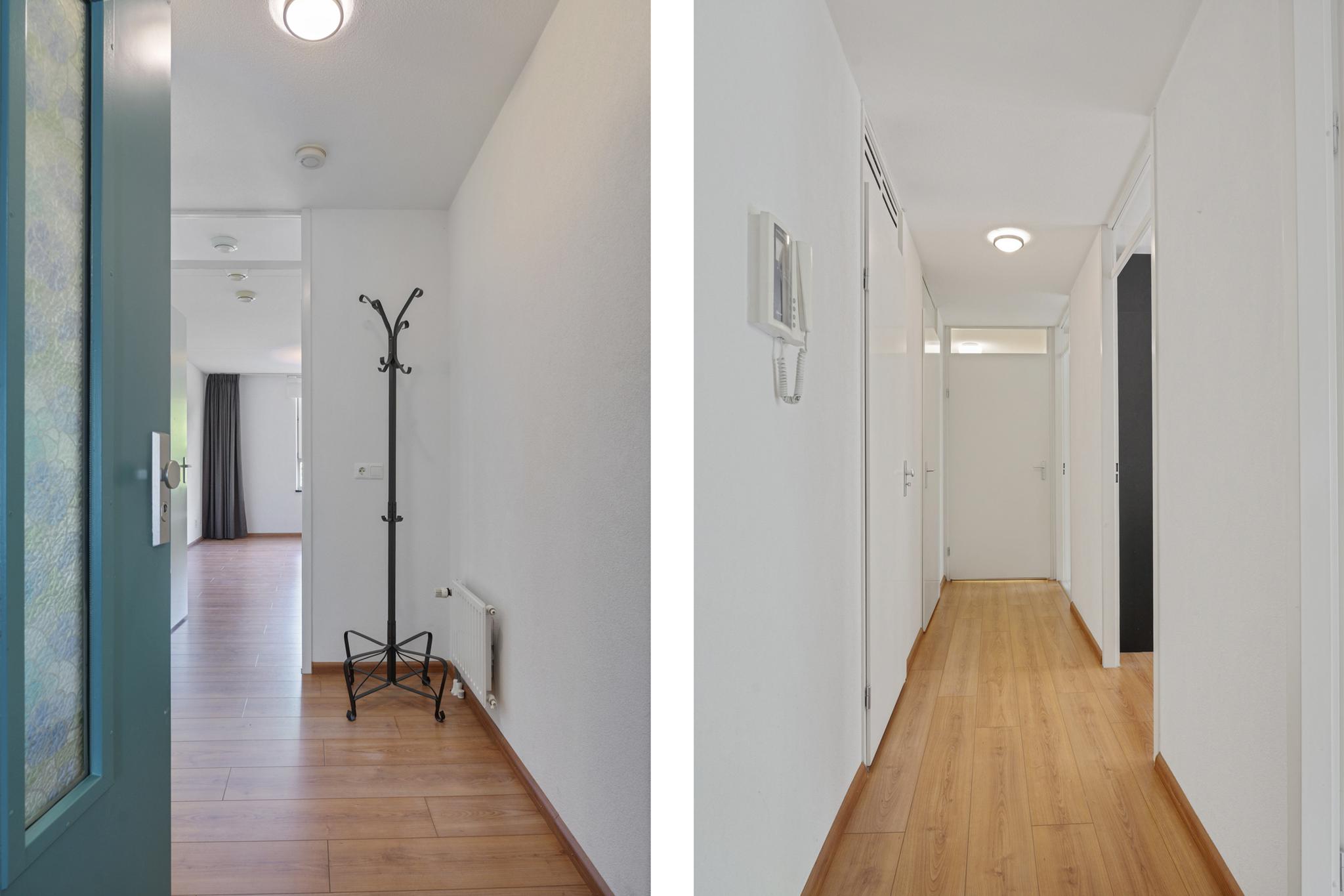 In de hal vind je daarnaast een separaat toilet en een ruime inpandige berging. Aan de achterzijde zijn twee comfortabele slaapkamers gelegen. Vanuit de rechter slaapkamer heb je toegang tot de loggia, die via openslaande deuren uitkomt op een charmant Frans balkon – een fijne plek om even buiten te zitten met zicht op de omgeving.