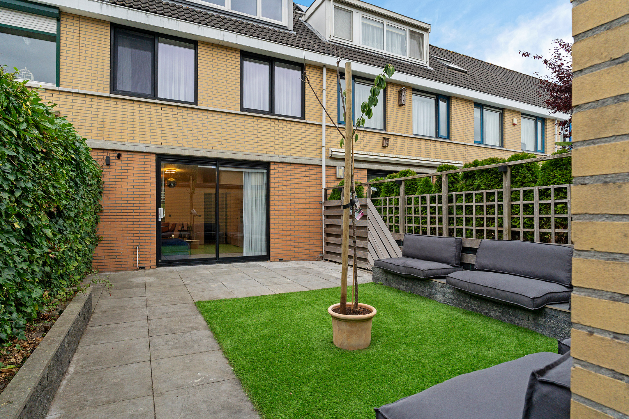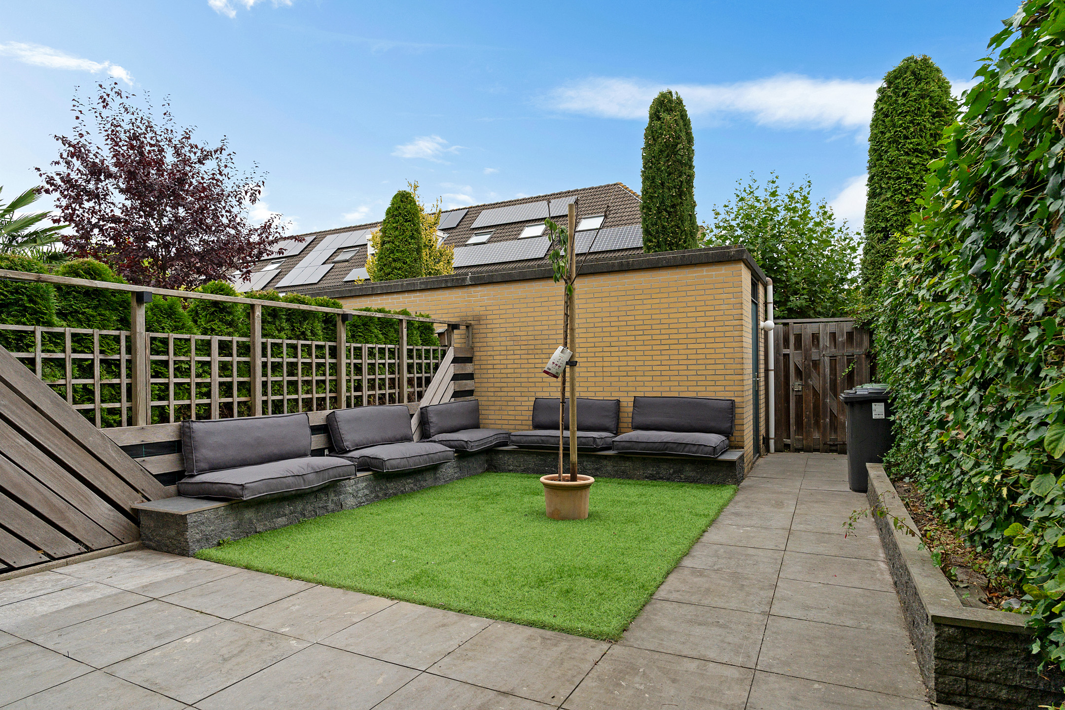 De achtertuin is fraai aangelegd en gelegen op het noordoosten. Hier staat een stenen berging voorzien van elektra, een buitenkraan en er is een achterom. De tuin is voldoende diep en netjes onderhouden, perfect voor ontspanning, spel en groenbeleving.