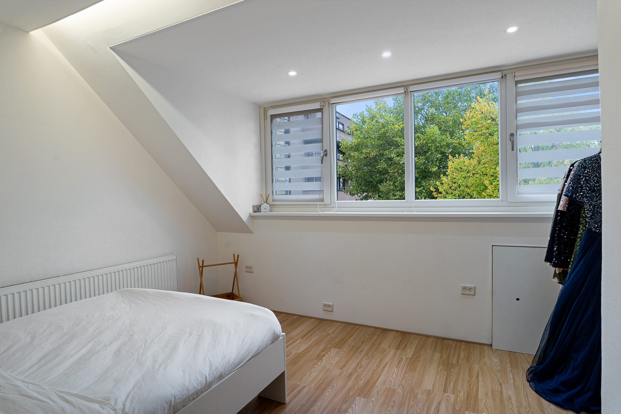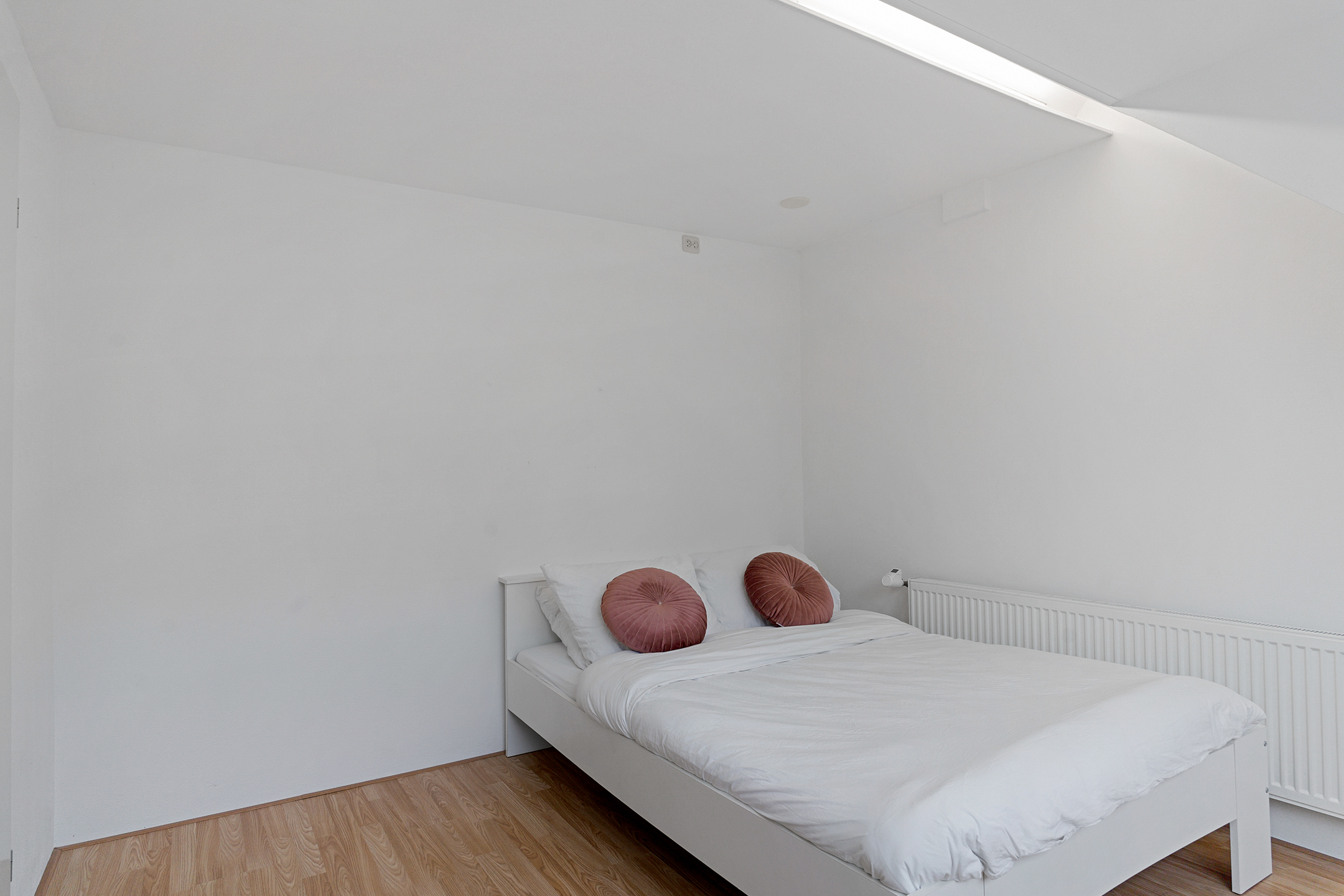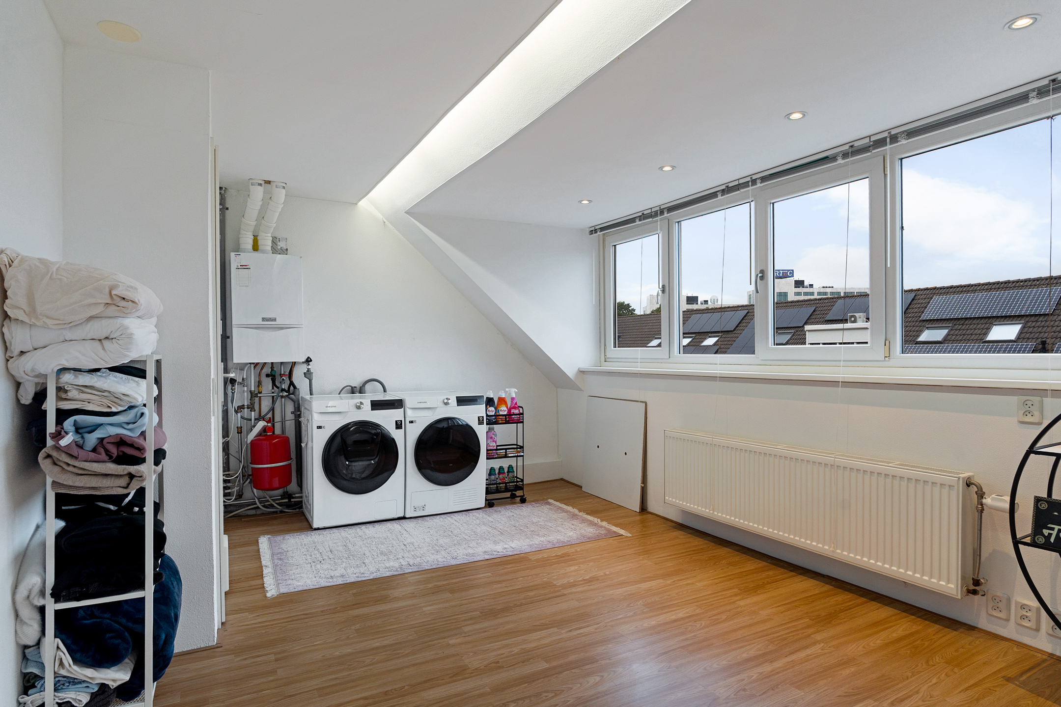 De tweede verdieping beschikt over een overloop met vlizotrap naar de bergvliering. Aan de voorzijde ligt een slaapkamer met dakkapel, grenzend aan een tweede badkamer met douche en wastafel. Achter bevindt zich een ruime slaapkamer met een groot dakkapel, wasmachine-aansluiting, cv-opstelling en praktische bergruimte achter de knieschotten.
