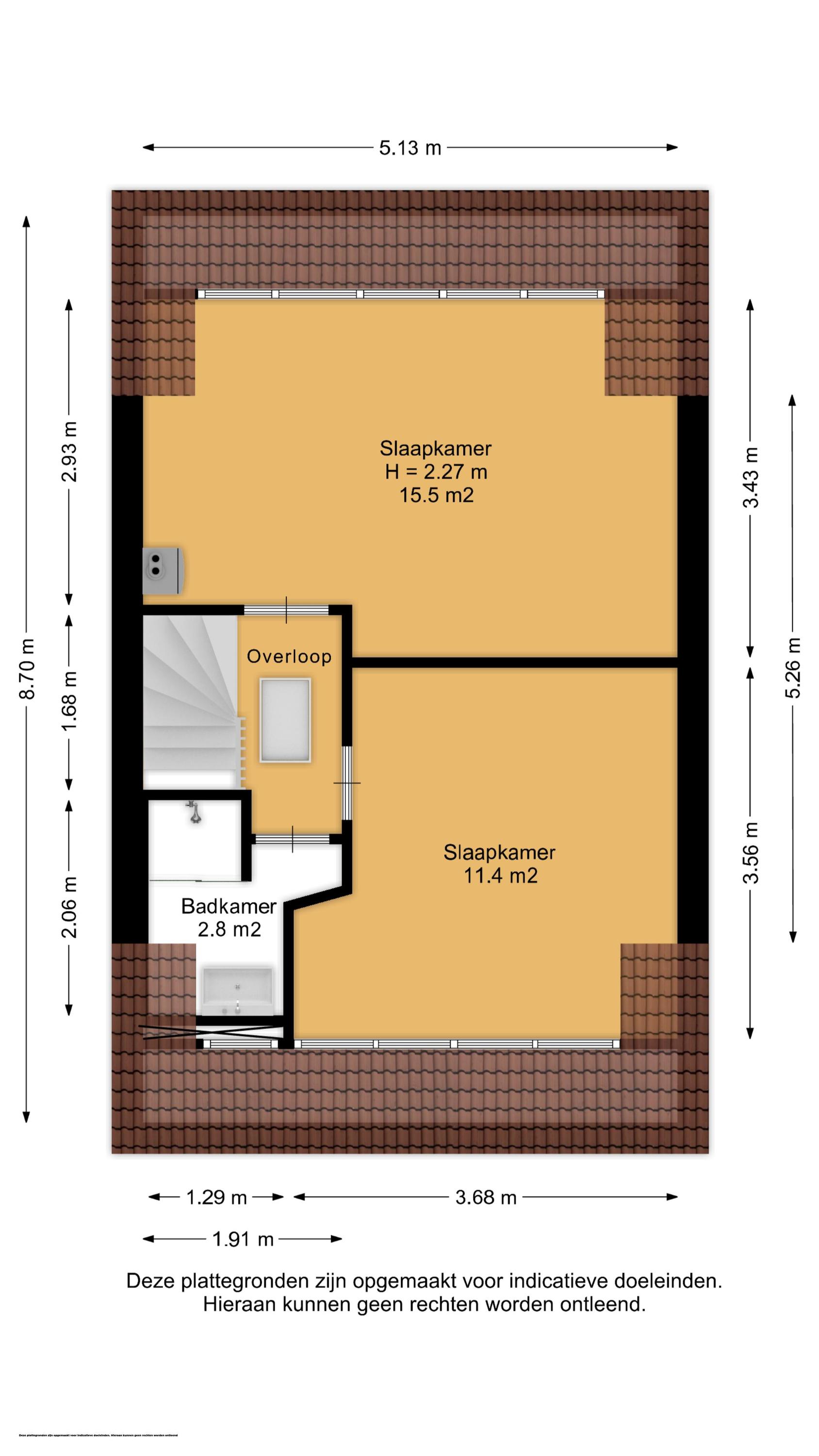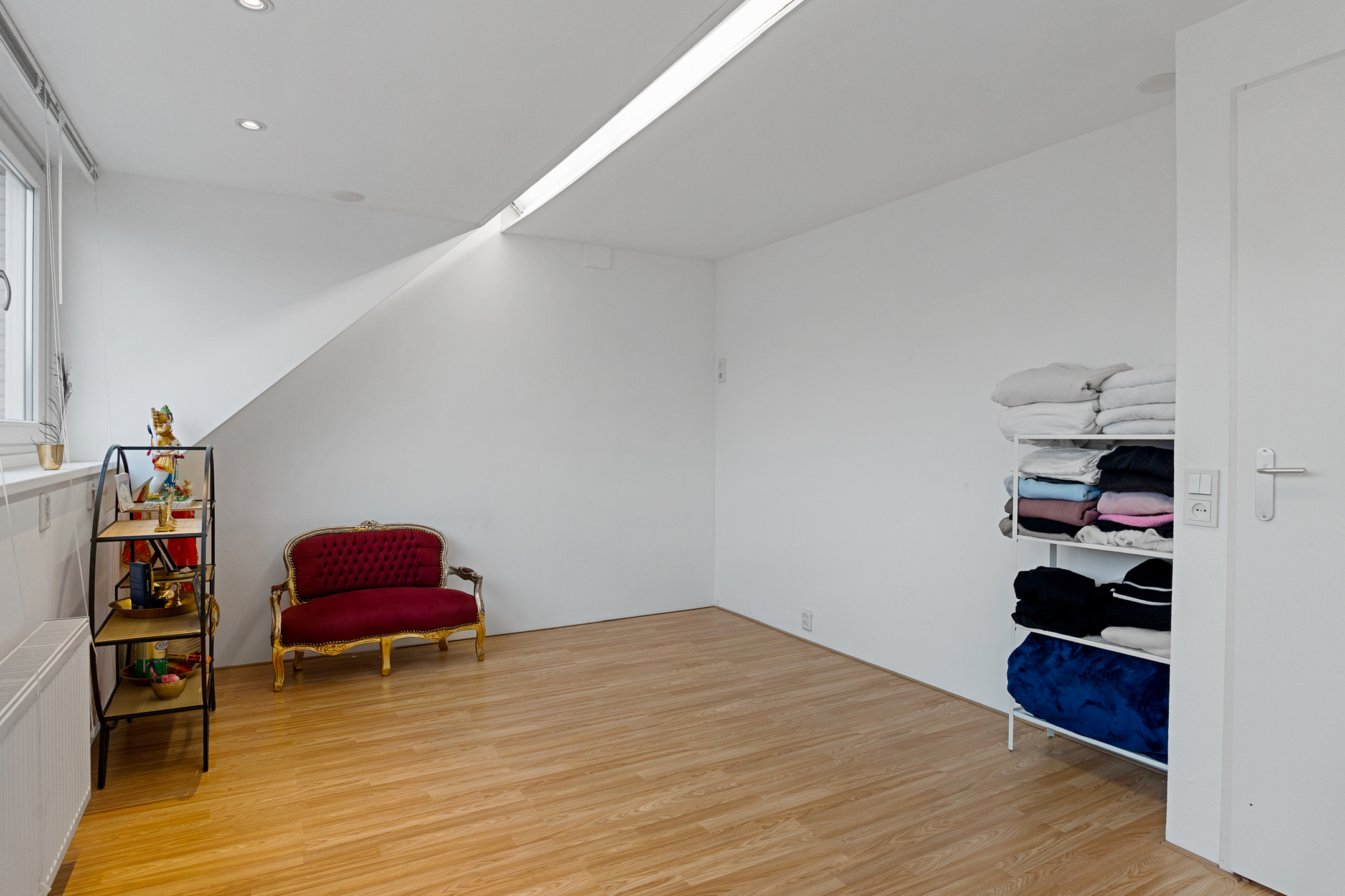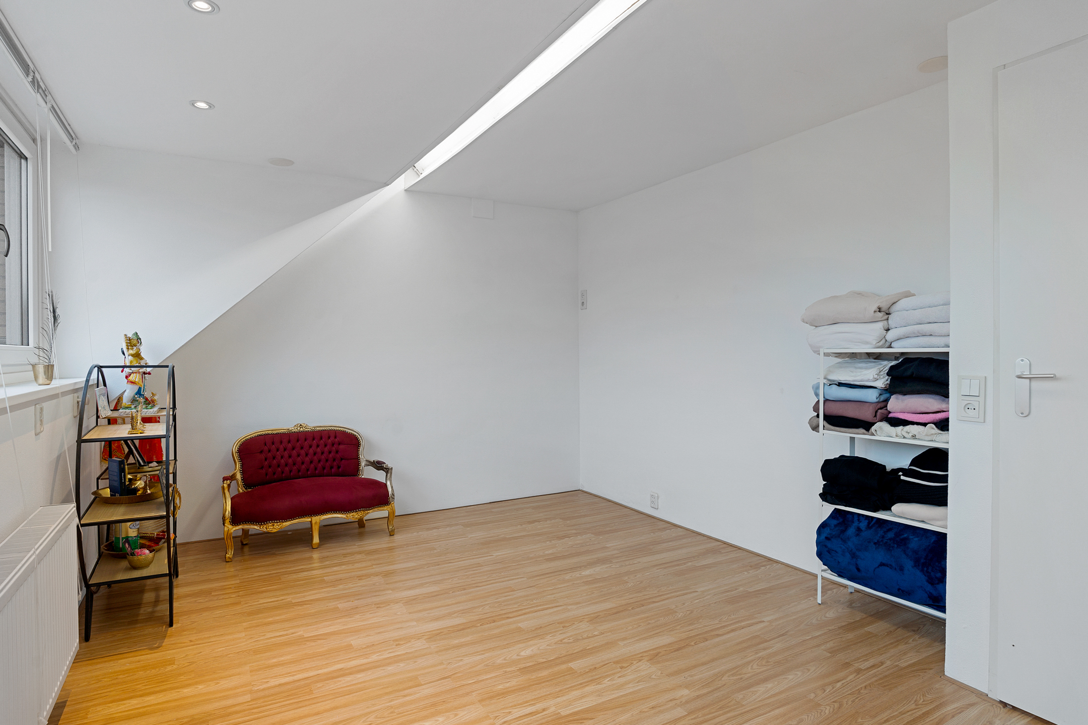 De tweede verdieping beschikt over een overloop met vlizotrap naar de bergvliering. Aan de voorzijde ligt een slaapkamer met dakkapel, grenzend aan een tweede badkamer met douche en wastafel. Achter bevindt zich een ruime slaapkamer met een groot dakkapel, wasmachine-aansluiting, cv-opstelling en praktische bergruimte achter de knieschotten.