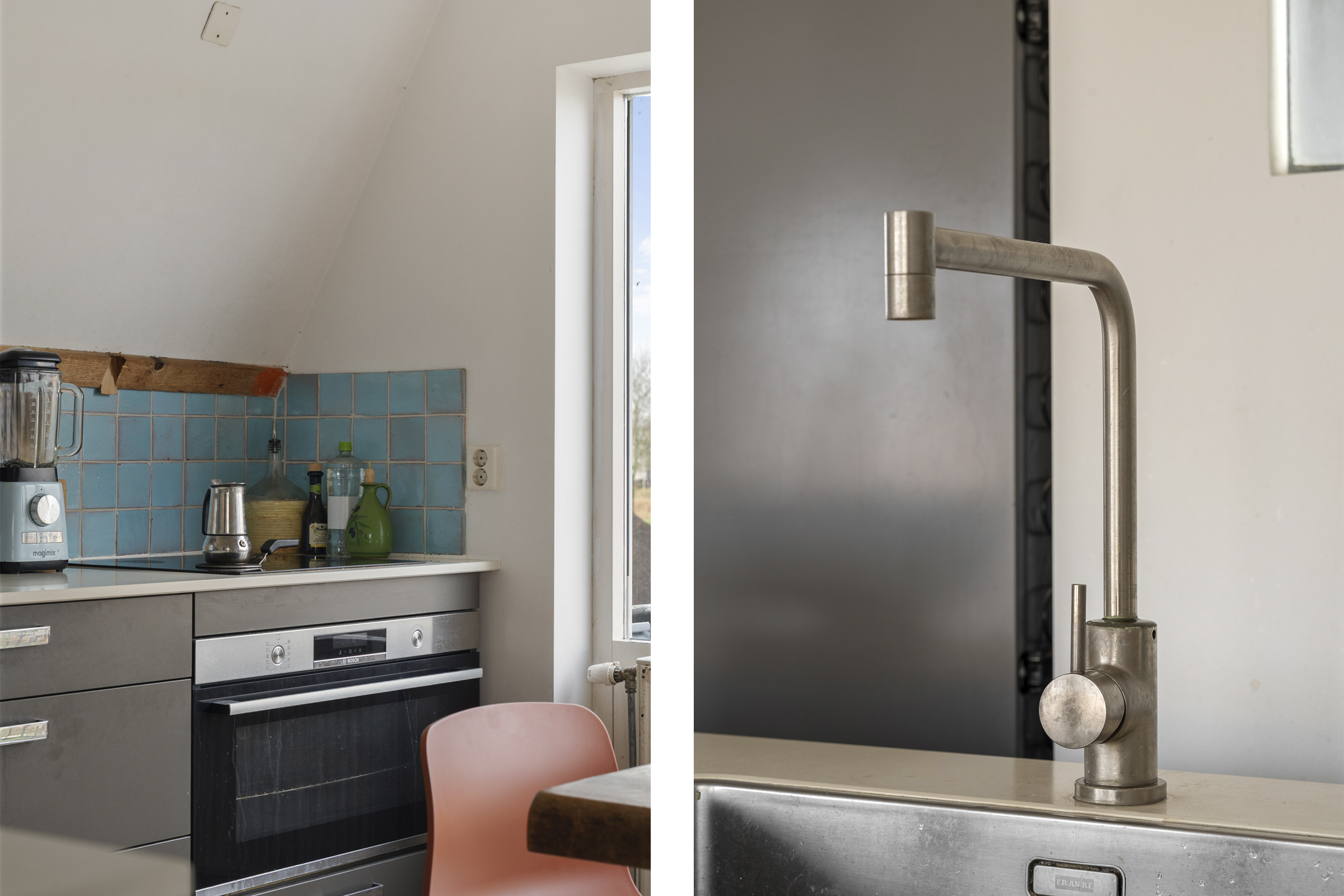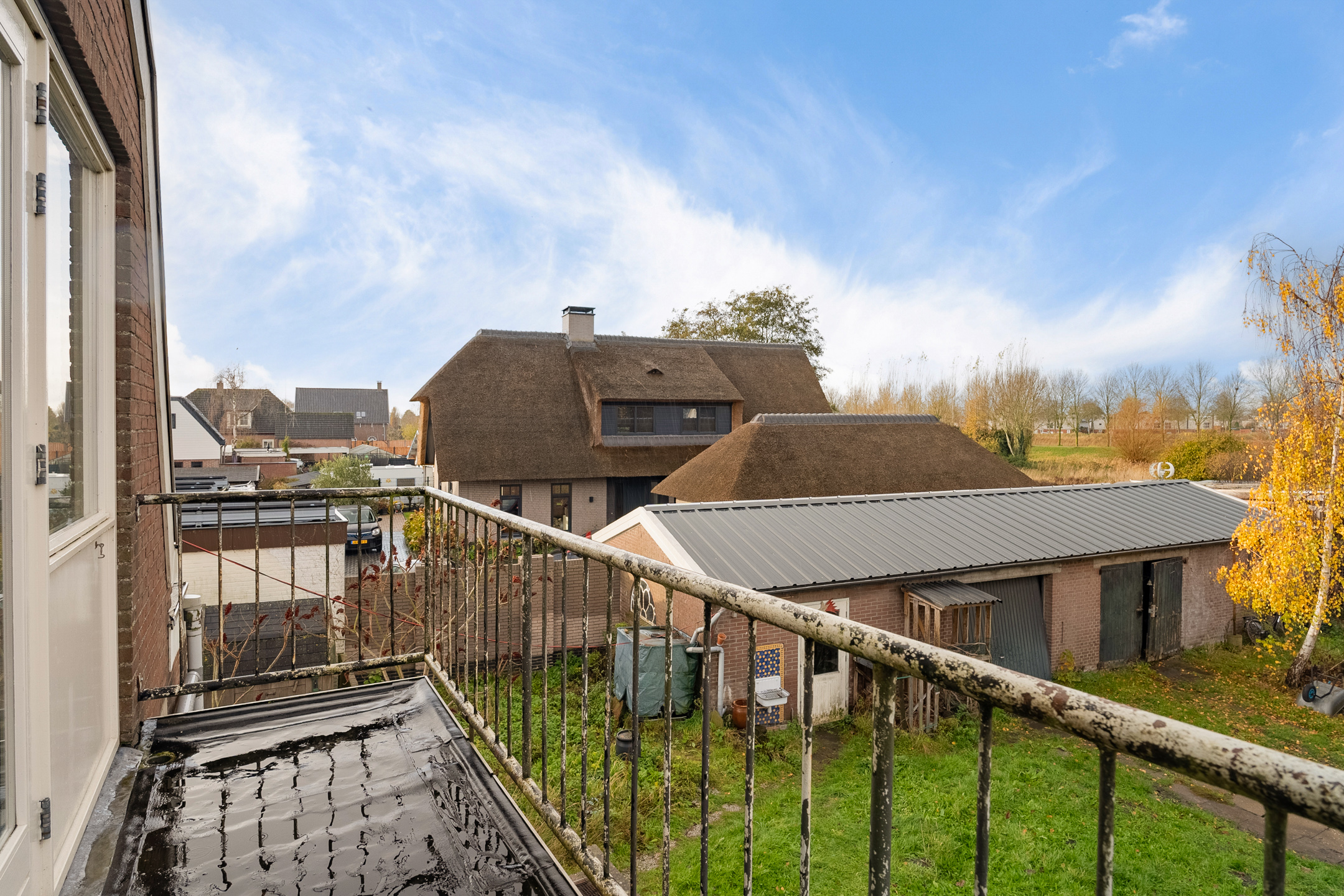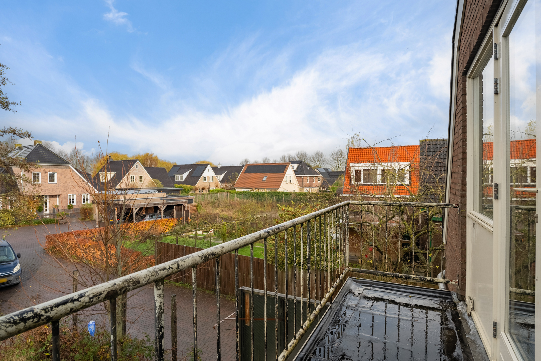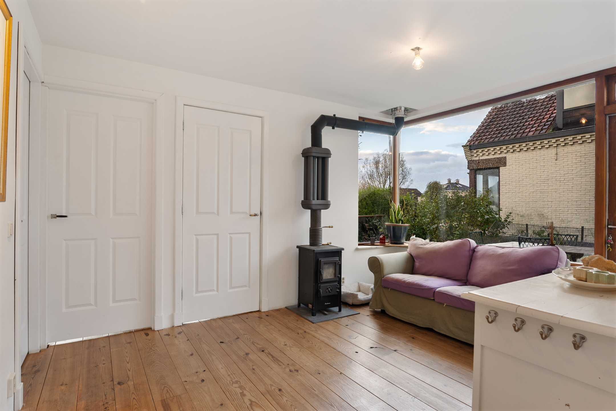 Aan de achterzijde ligt de open L-vormige keuken, uitgerust met onder andere een oven en inductiekookplaat. Via openslaande deuren bereik je het balkon aan de achterzijde – een fijne plek om van de rust en ruimte te genieten.