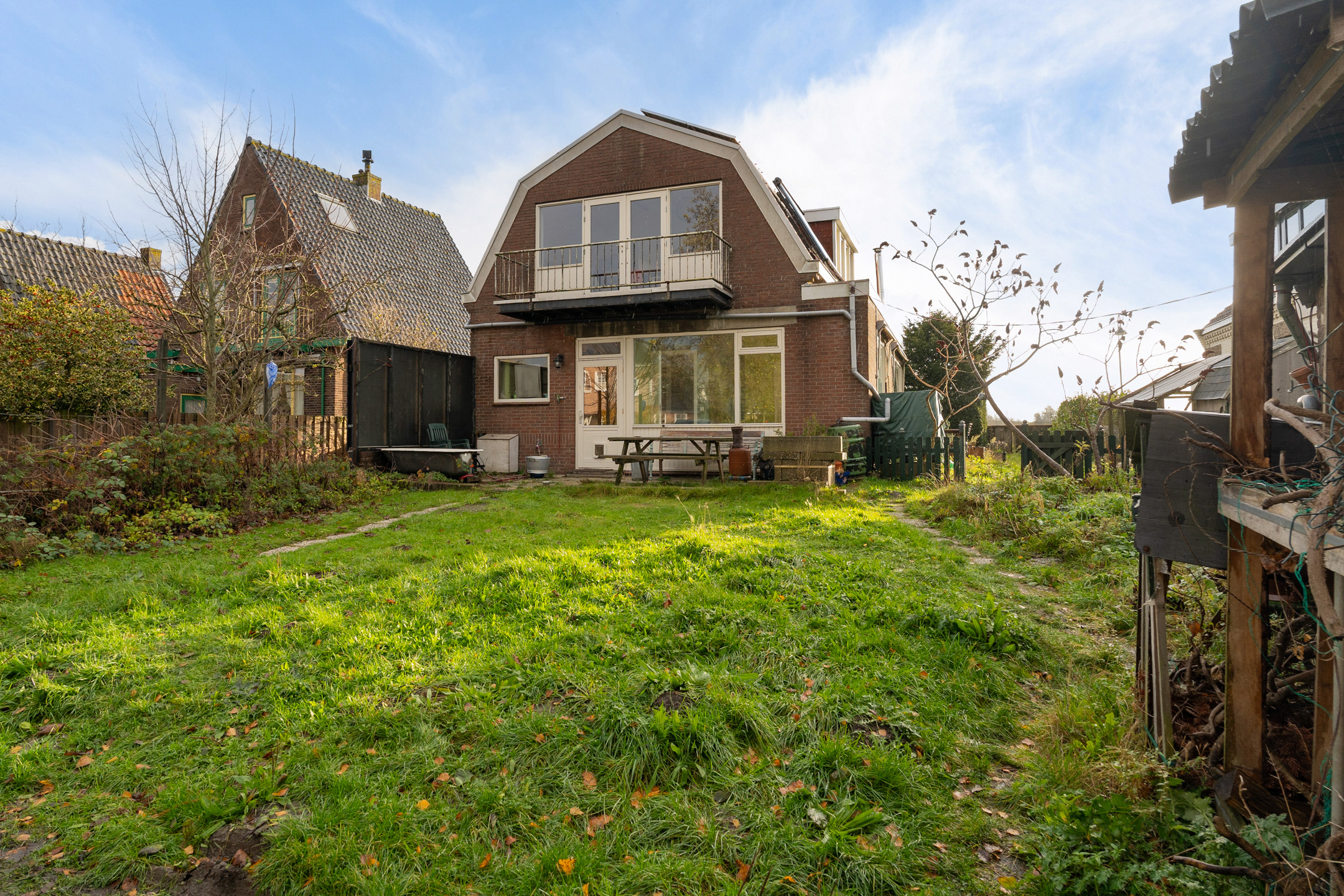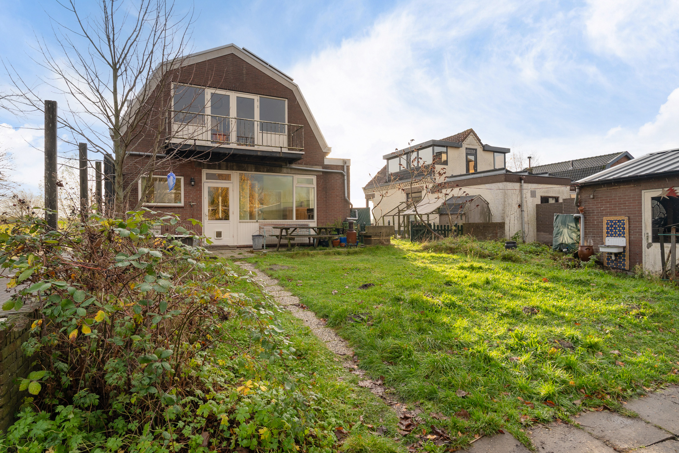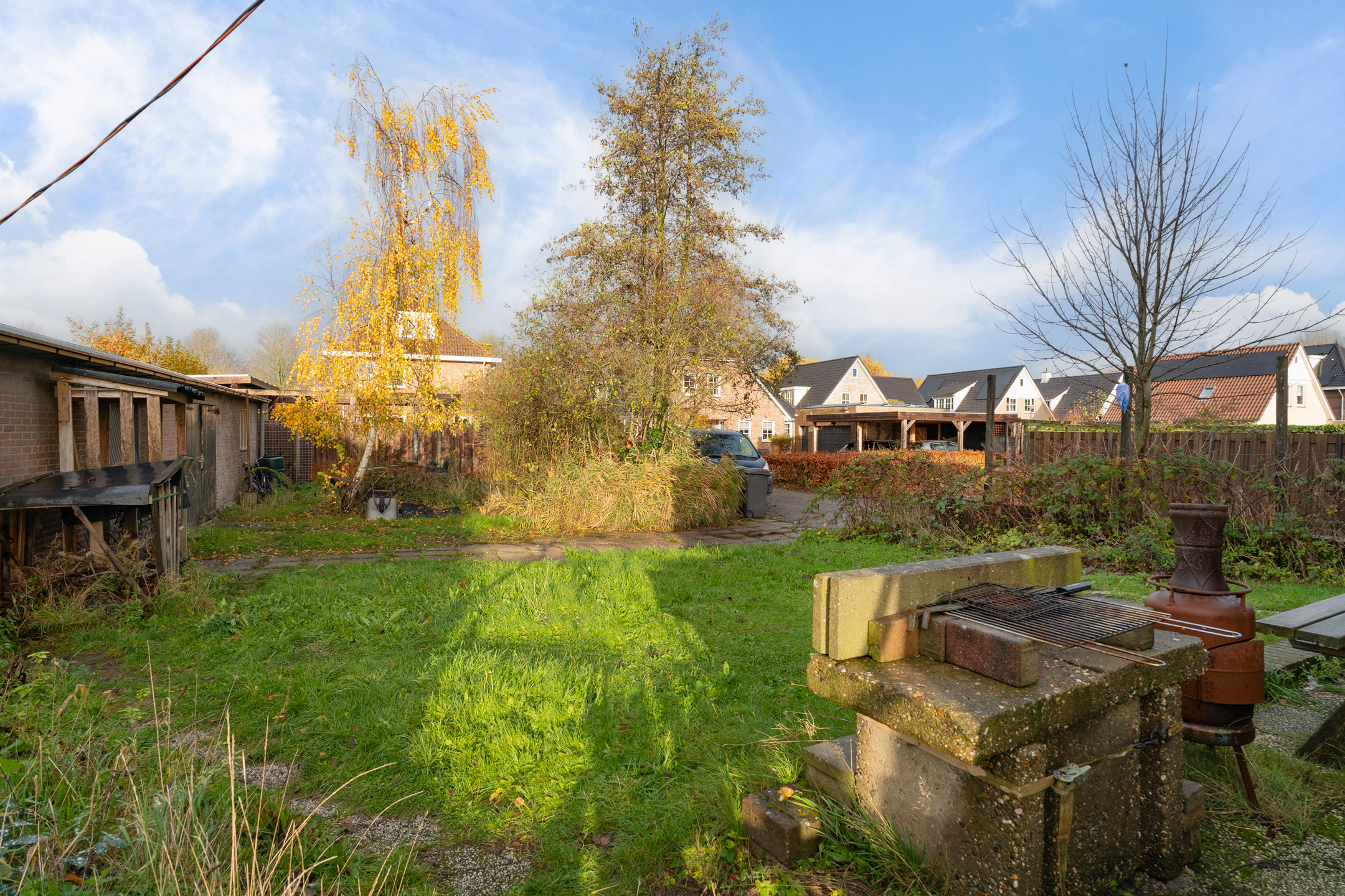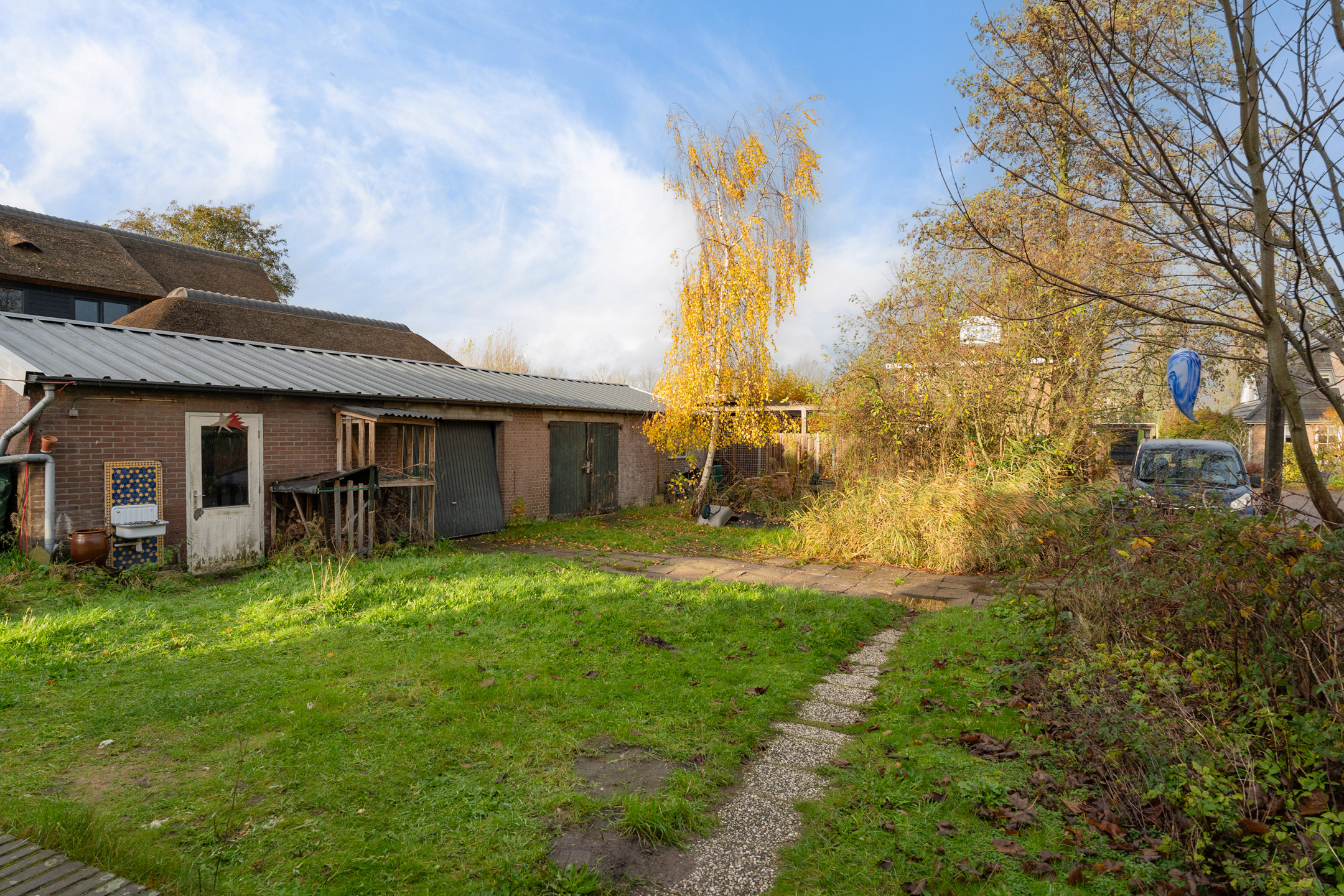 Op het achtergelegen terrein bevindt zich een zeer ruime garage/schuur met vliering en opstelplaats voor wasapparatuur. De schuur is voorzien van een nieuw geïsoleerd dak en krachtstroom. Daarmee biedt het vele andere mogelijkheden zoals een werkplaats, atelier en studio. Hier zijn momenteel twee parkeerplaatsen aanwezig, met mogelijkheid om dit verder uit te breiden.