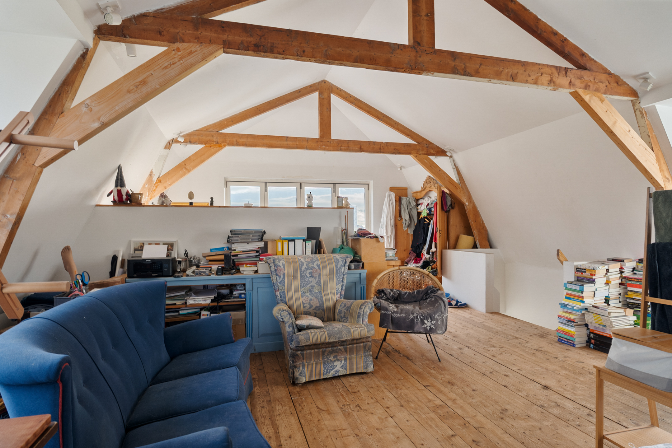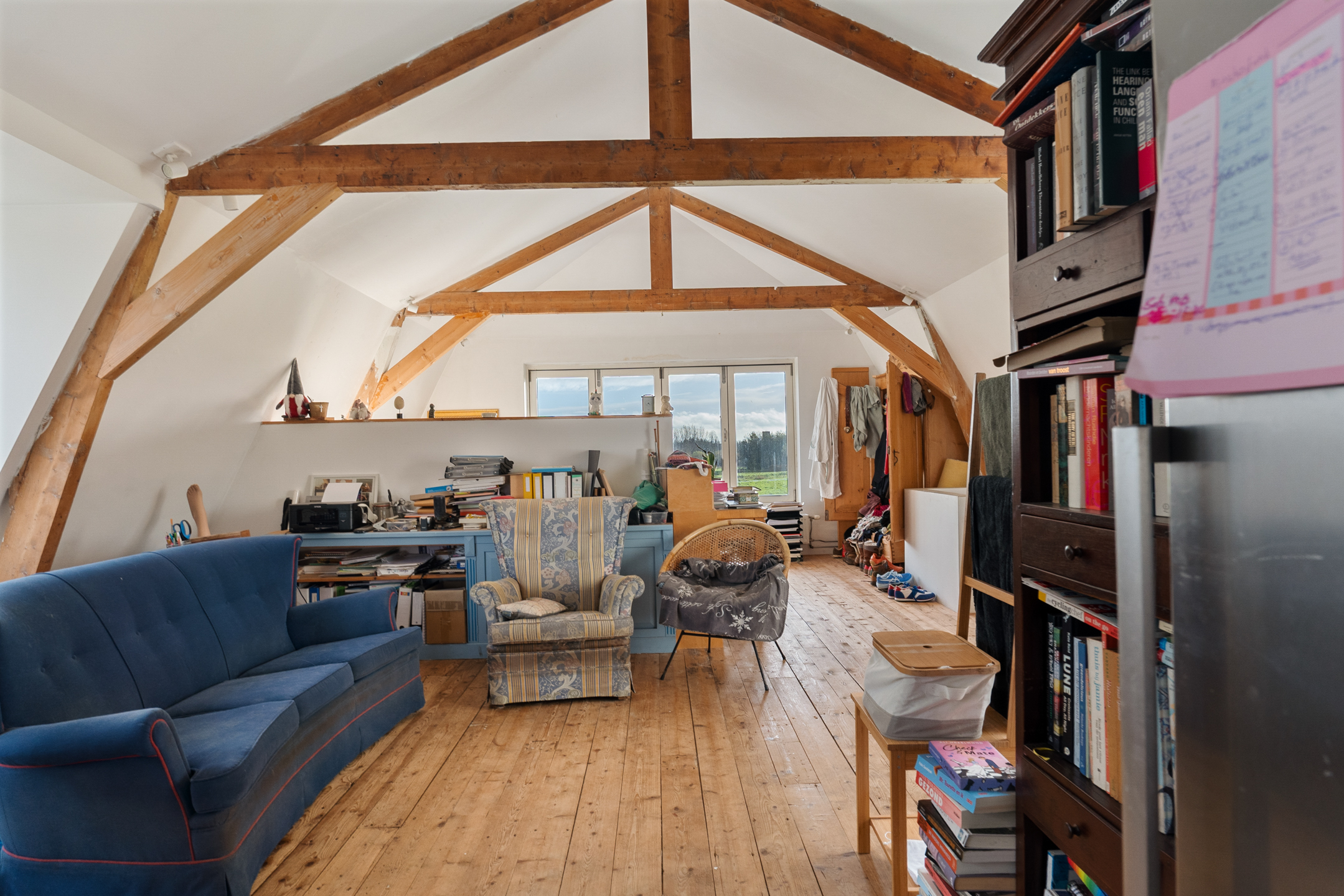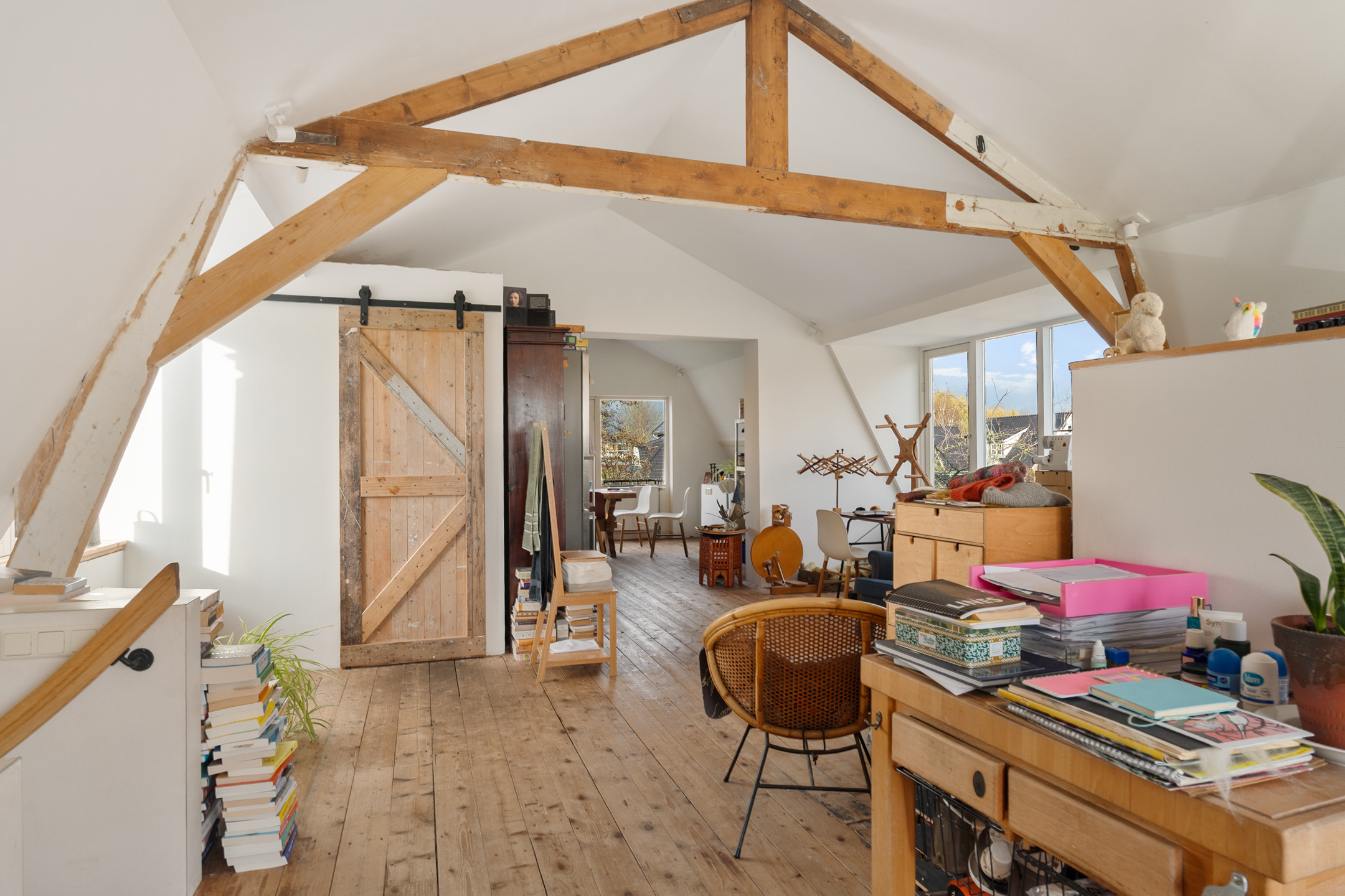 Deze verdieping verrast door de ruimte en het licht. Aan de voorzijde bevindt zich een open ruimte met een open slaapkamer. De royale woonkamer strekt zich uit over de breedte van de woning en is aan beide zijden voorzien van een dakkapel, wat zorgt voor een prettige lichtinval.