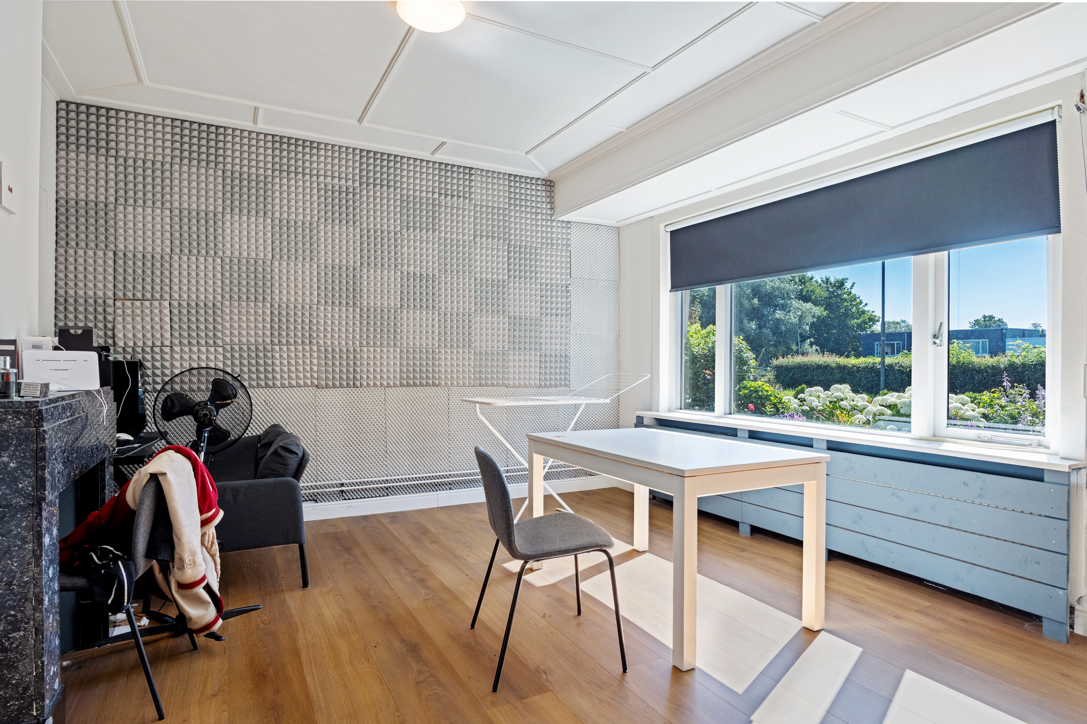 De lichte woonkamer aan de voorzijde biedt een prettig uitzicht op de Zegwaartseweg en is voorzien van een nette laminaatvloer en een sfeervolle haard. Aan de achterzijde ligt de keuken met inductiekookplaat en voldoende opbergruimte.