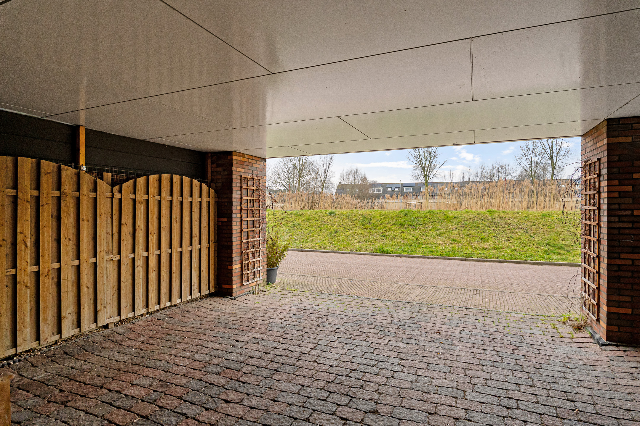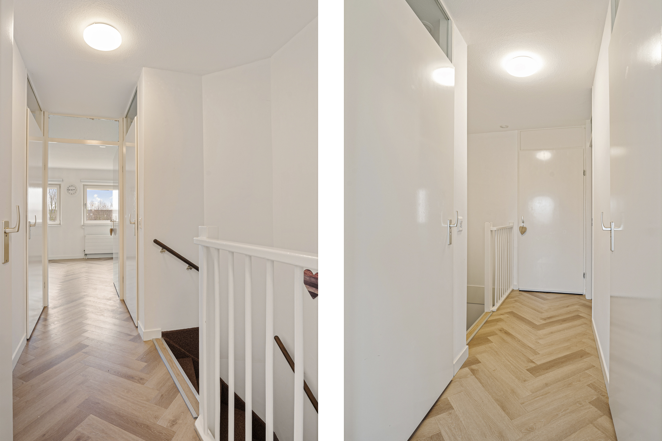 Je parkeert je auto op eigen terrein onder de carport. Via de ruime entreehal met trapopgang, trapkast en meterkast kom je binnen. Hier bevindt zich ook het toilet met fonteintje.