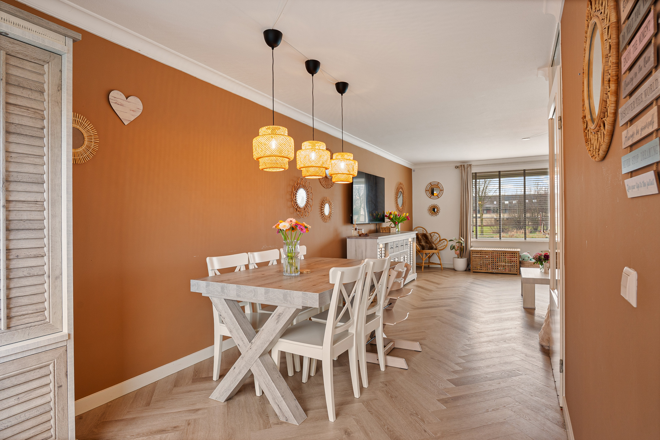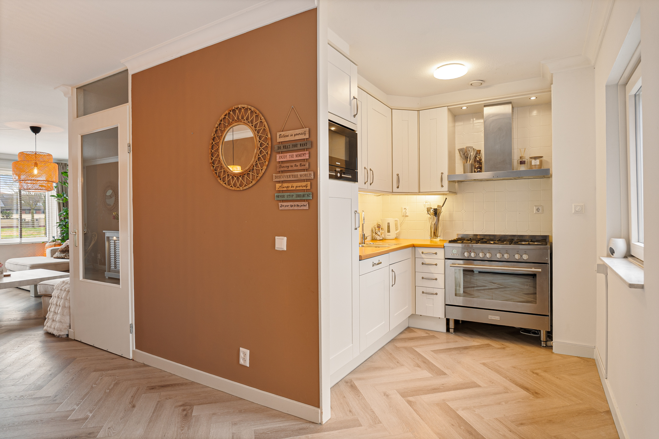 Aan de voorzijde bevindt zich de lichte woonkamer met grote raampartijen en vrij uitzicht. Dankzij de prettige lichtinval en de moderne afwerking voelt deze verdieping ruim en comfortabel aan. Aan de achterzijde ligt de half open keuken .De keuken is voorzien van diverse inbouwapparatuur, waaronder een combi-oven, vaatwasser, kookplaat, afzuigkap en koel-/vriescombinatie. Je hebt hier volop werk- en bergruimte, waardoor koken hier echt een plezier wordt.
