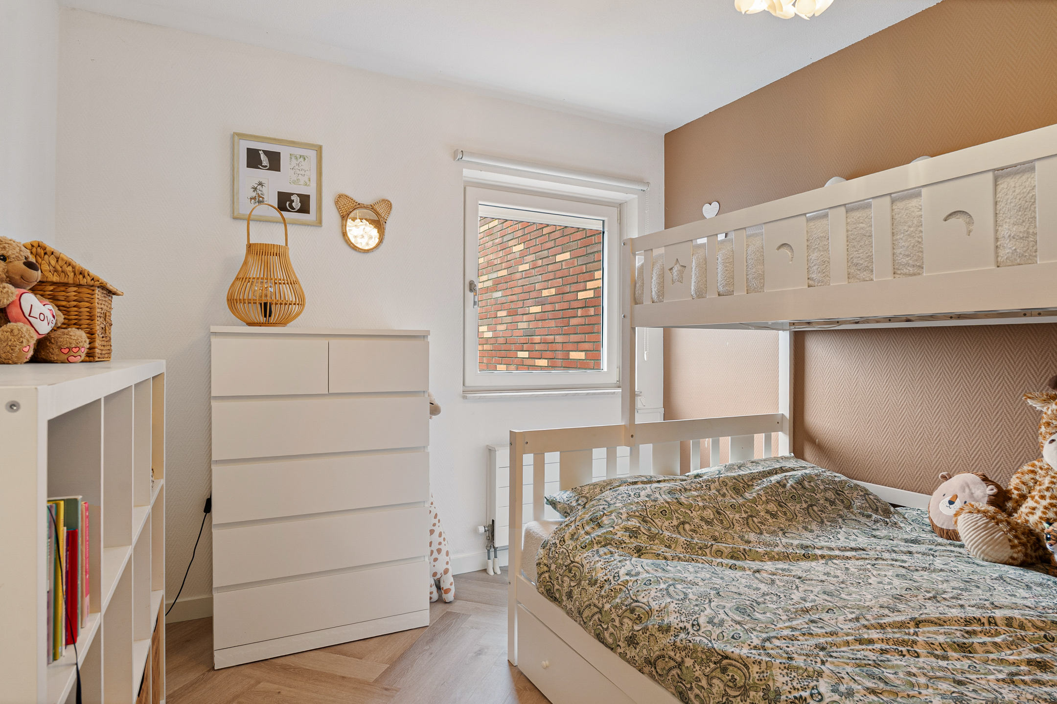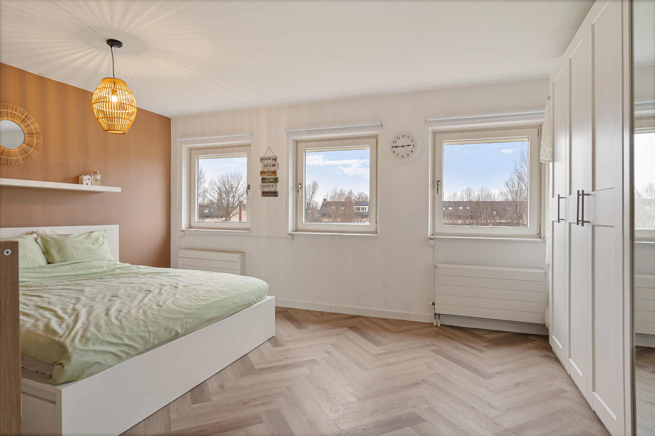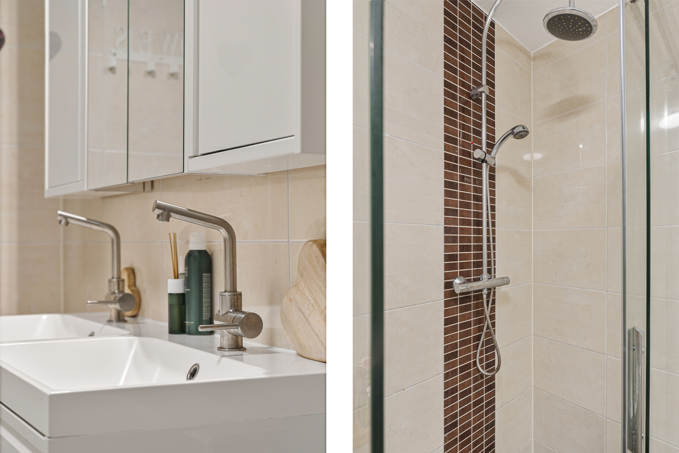 Aan de voorzijde bevindt zich een ruime slaapkamer en grote ramen. Op deze verdieping bevinden zich ook de rolluiken. Aan de achterzijde ligt de tweede slaapkamer, eveneens goed bemeten en prettig licht. De badkamer is ruim opgezet en volledig betegeld in een neutrale, tijdloze kleurstelling. Je beschikt hier over een comfortabel ligbad, een separate inloopdouche met glazen douchewand en een modern wastafelmeubel met bergruimte. Dankzij de praktische indeling heb je hier voldoende bewegingsruimte en kun je kiezen tussen snel douchen of ontspannen in bad.
