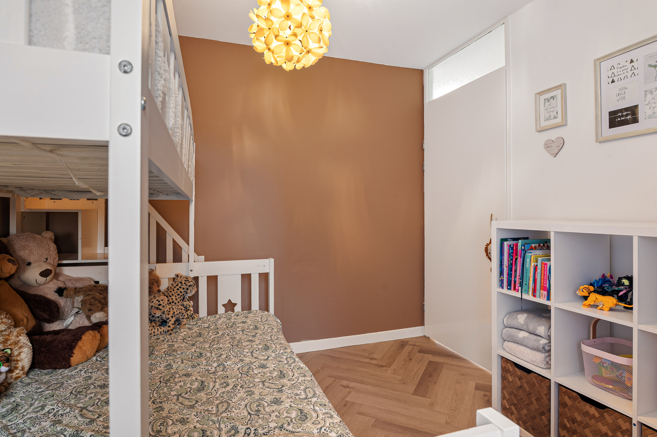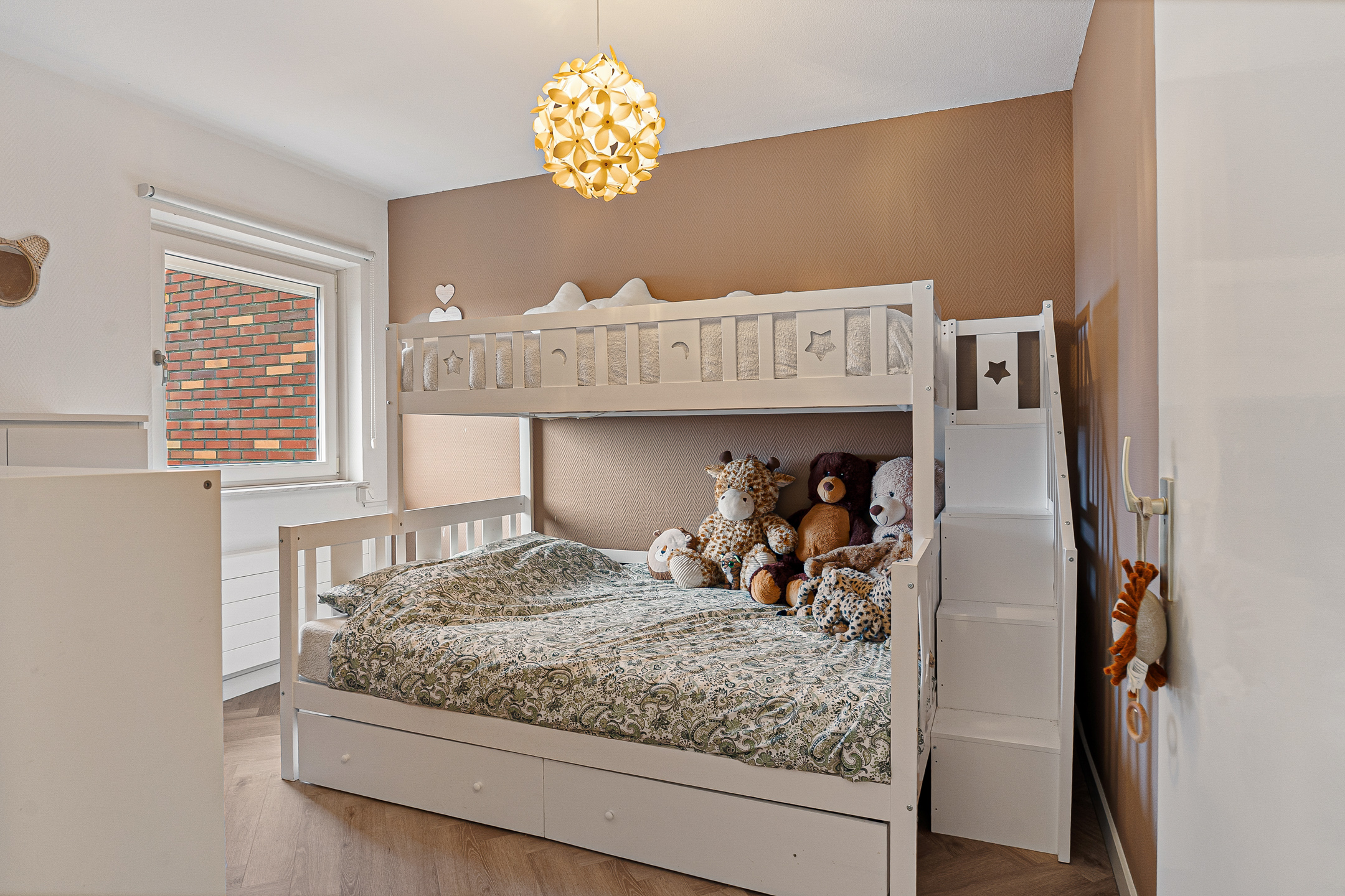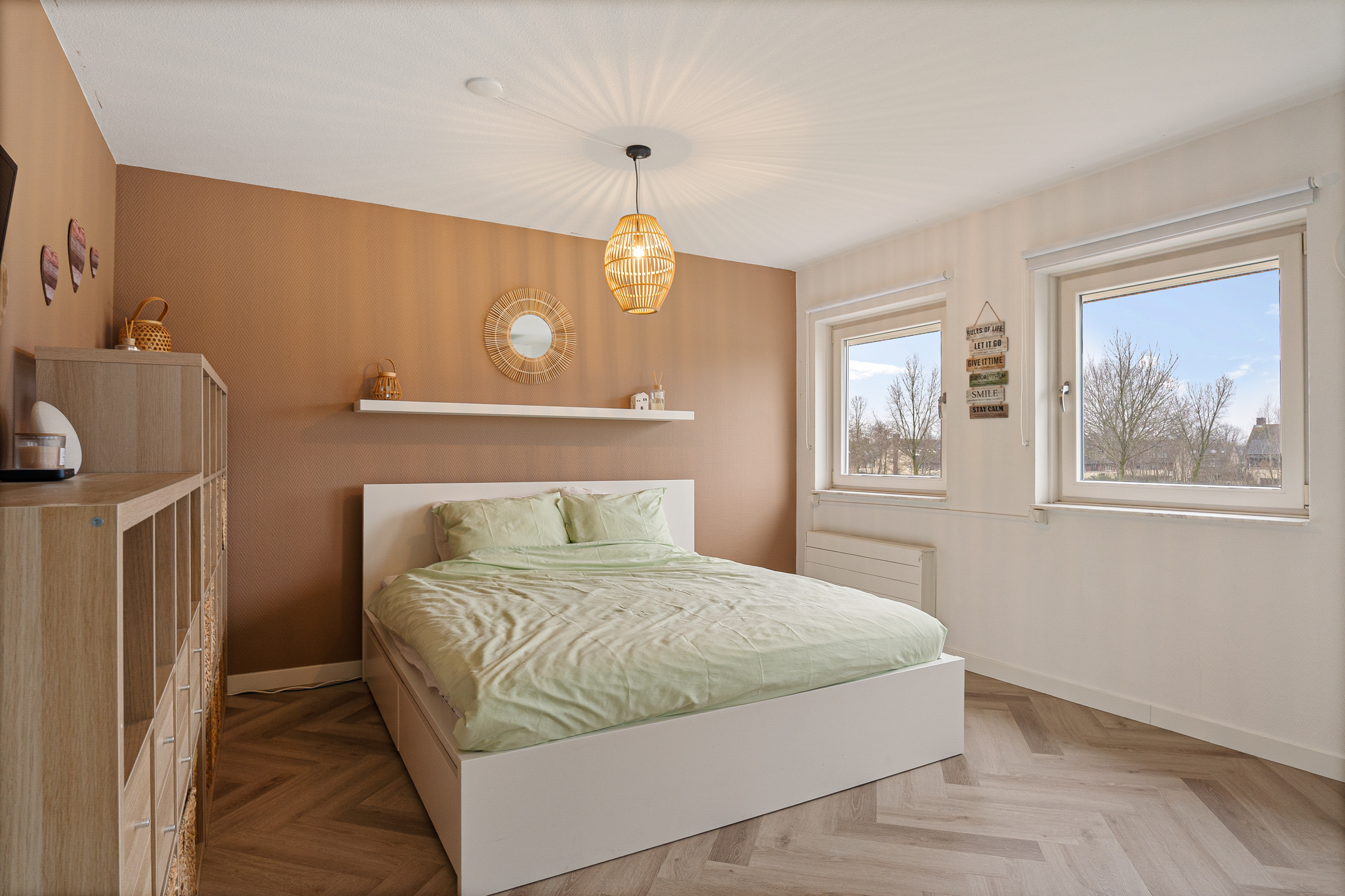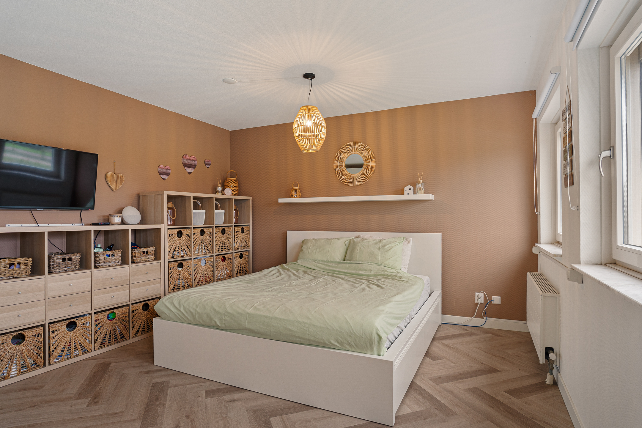 Aan de achterzijde ligt een ruime kamer met directe toegang tot de tuin. Deze ruimte is perfect als slaapkamer, hobbyruimte of thuiswerkplek en maakt de woning extra flexibel in gebruik.