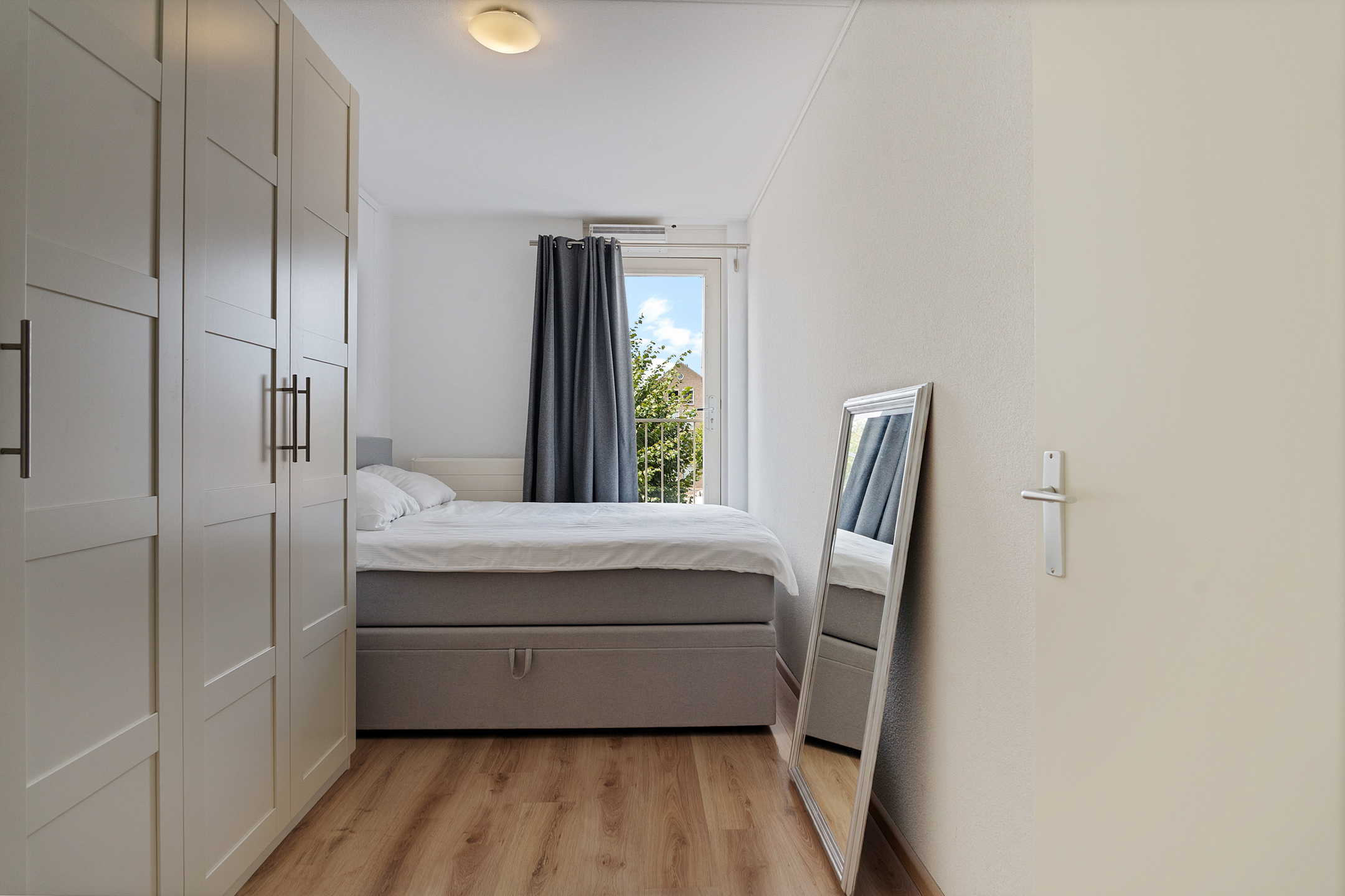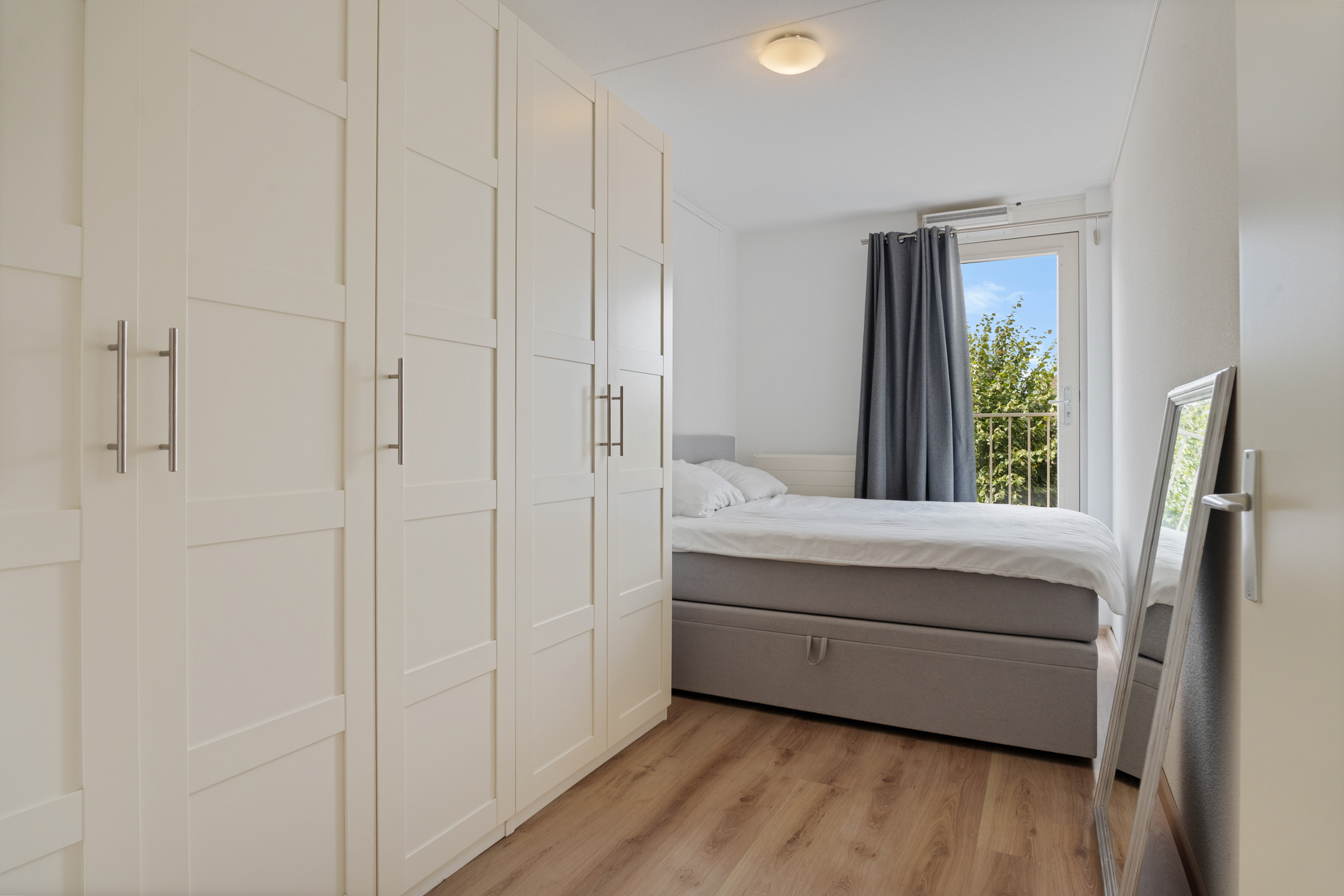 Er zijn twee ruime slaapkamers, beiden met zicht op de haven, ideaal voor rust en inspiratie. De badkamer is stijlvol betegeld en heeft een wastafelmeubel en ruime douche. Verder is er een apart toilet en een inpandige berging met aansluiting voor wasmachine.