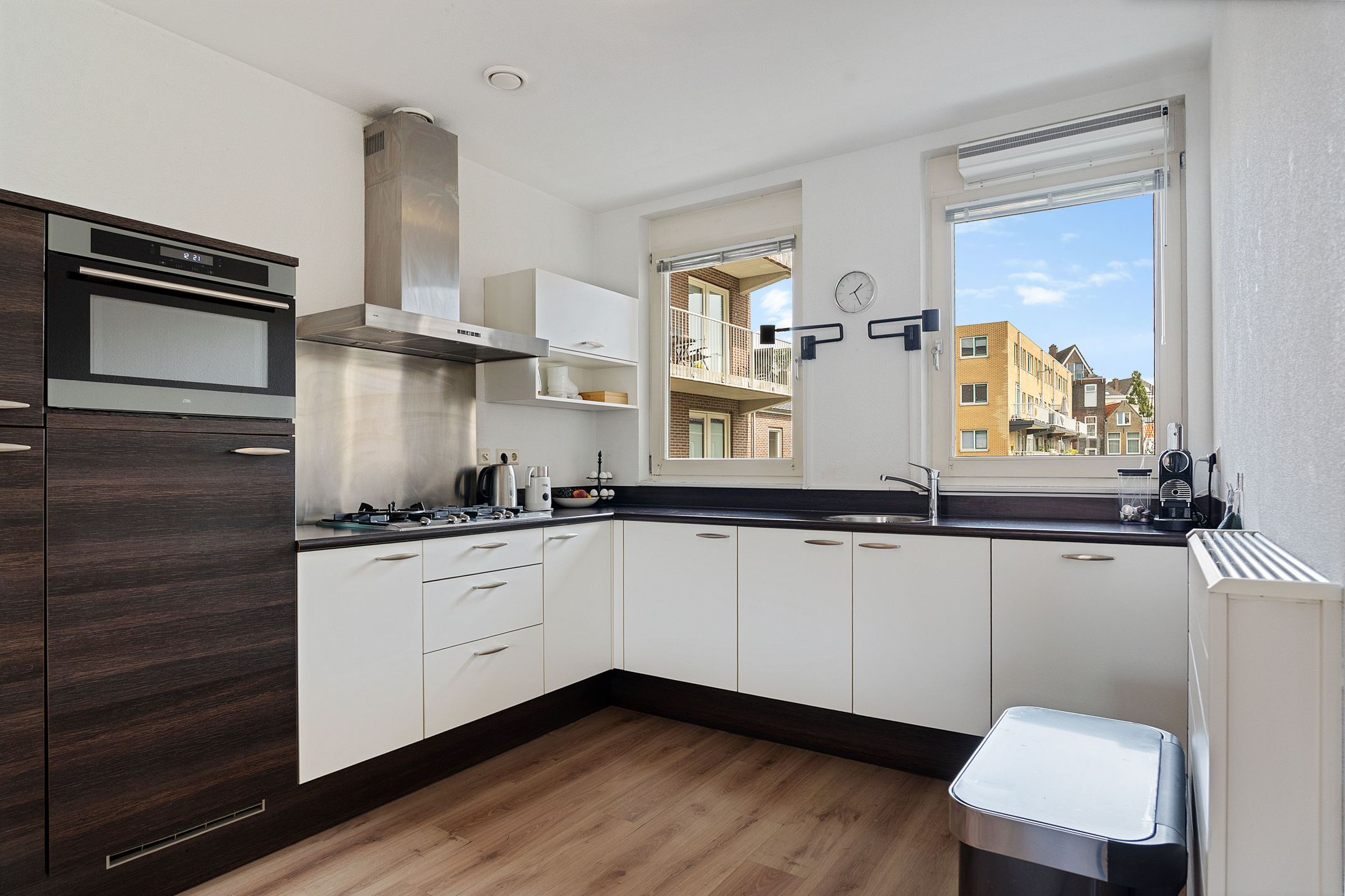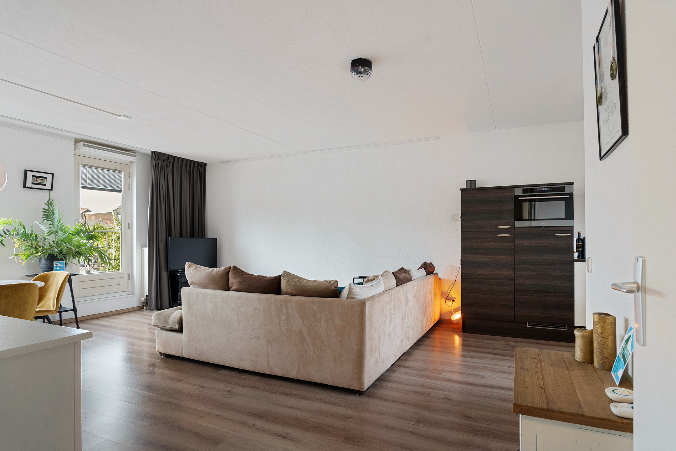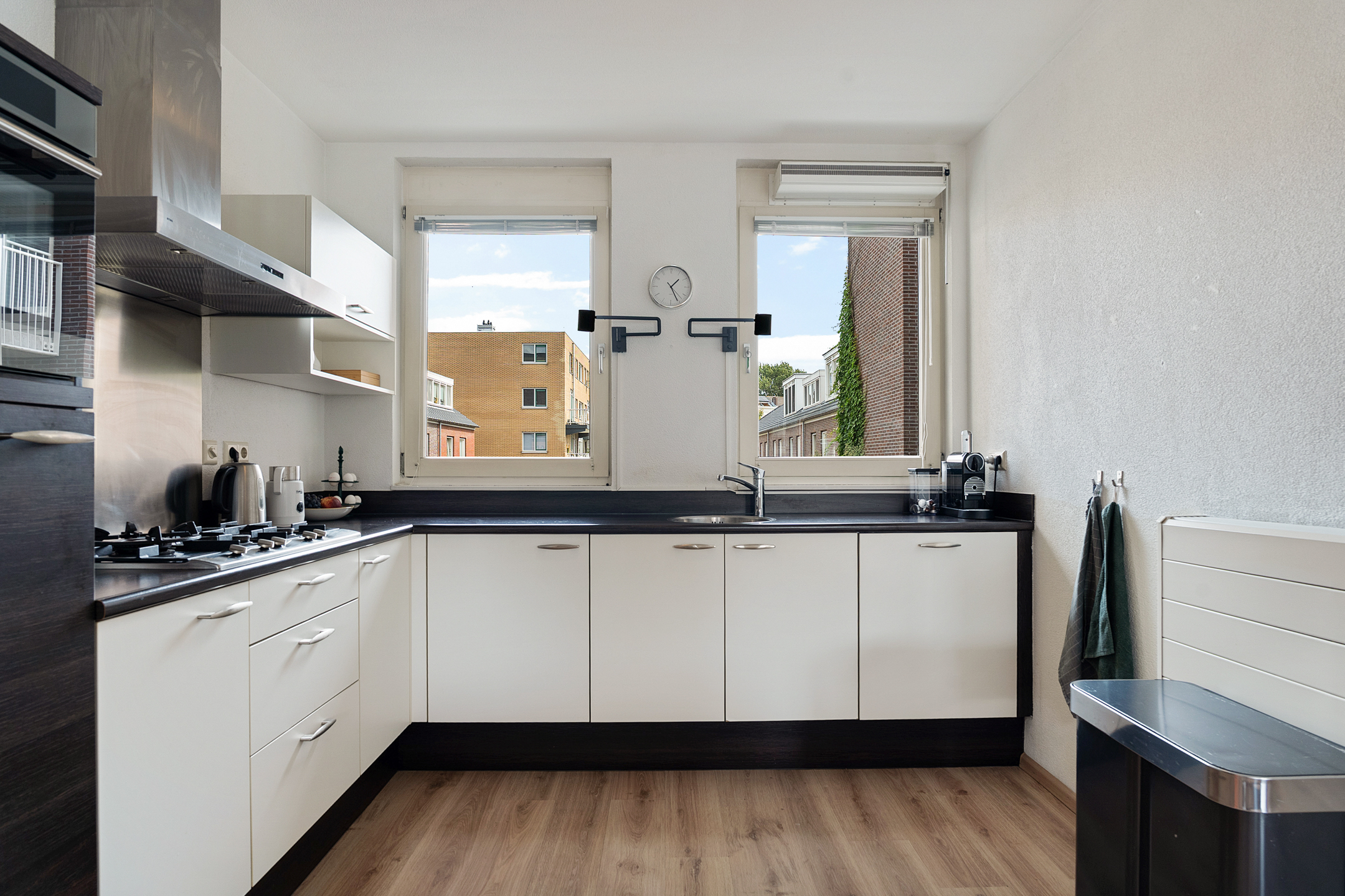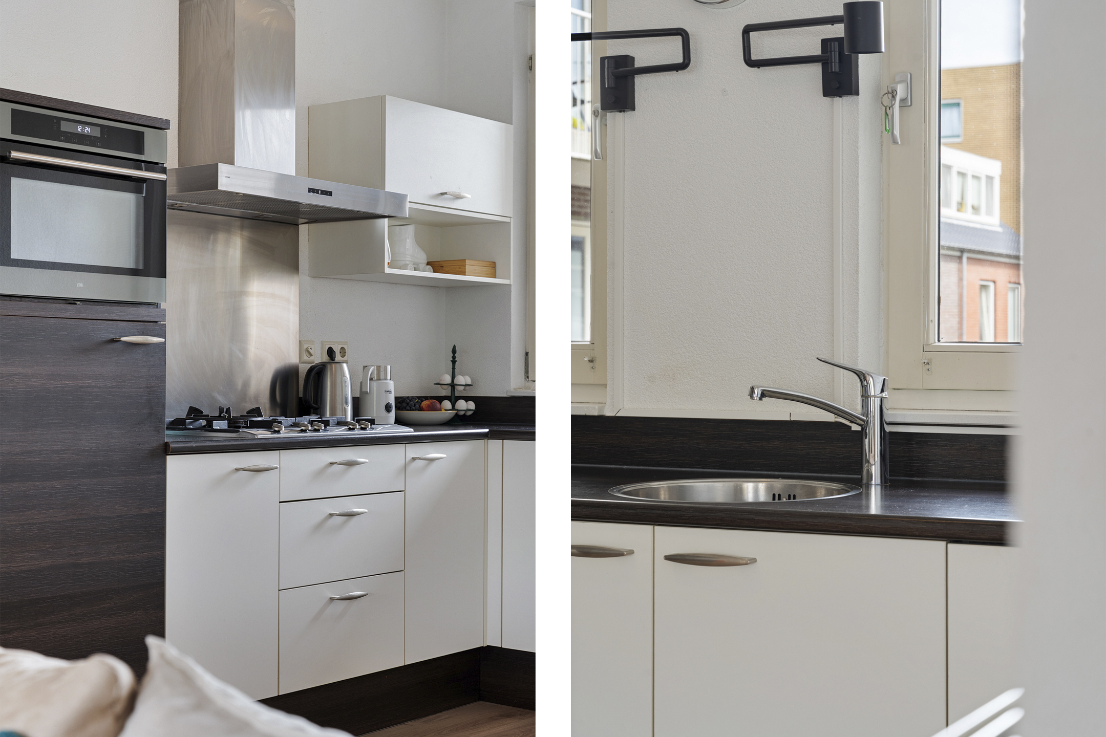 Je betreedt de woning via de entree met garderobe en meterkast. De woonkamer voelt licht en ruim aan dankzij de grote ramen en het Franse balkon met een fraai uitzicht over de haven. De moderne keuken (bouwjaar 2010) is uitgerust met alles wat je nodig hebt: gaskookplaat, oven, afzuigkap, koelkast en vaatwasser.