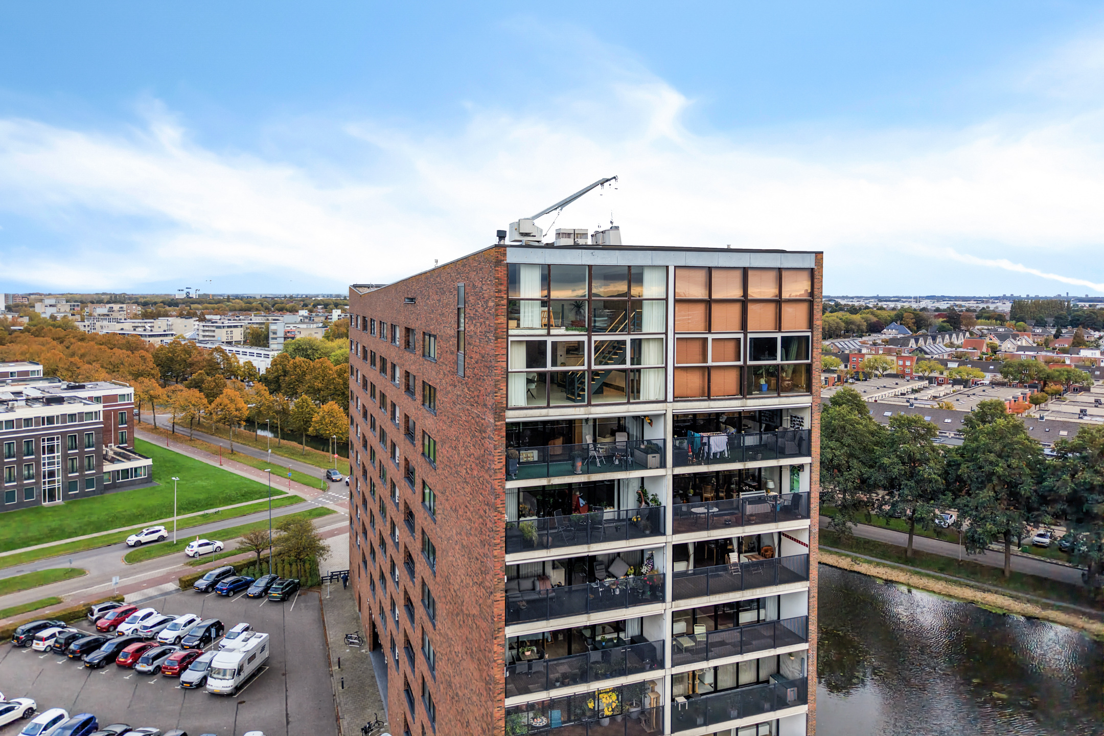 Wonen op hoog niveau krijgt hier een nieuwe betekenis. Dit uitzonderlijk royale en stijlvol afgewerkte dubbele penthouse van circa 217 m² strekt zich uit over de 10e en 11e verdieping. Elk element klopt hier – van de houten wandpanelen en zwarte details tot de manier waarop het licht binnenvalt. En dat uitzicht… dat verveelt nooit. Vanaf elke hoek kijk je uit over Den Haag, Scheveningen en Rotterdam. Met een adembenemende woonkamer met vide, een elegante keuken met kookeiland, twee luxe badkamers, een eigen wellness en een zonnig dakterras is dit een woning die pure klasse uitstraalt.