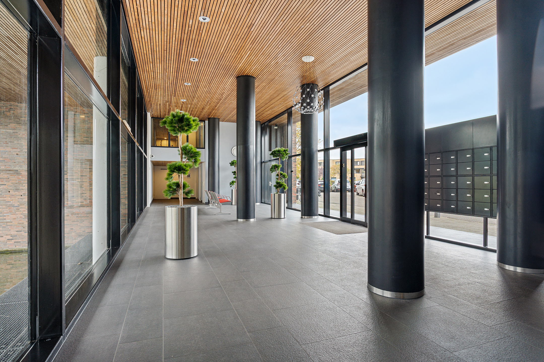 De afgesloten entree met intercom, bellenbord, brievenbussen en twee liften leidt naar een stijlvolle woonomgeving met alle gemakken binnen handbereik. Winkels, scholen, het Rosariumpark, openbaar vervoer en uitvalswegen bevinden zich op korte afstand.