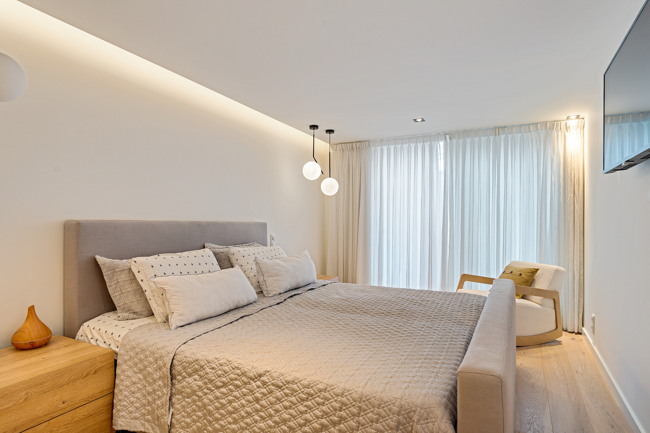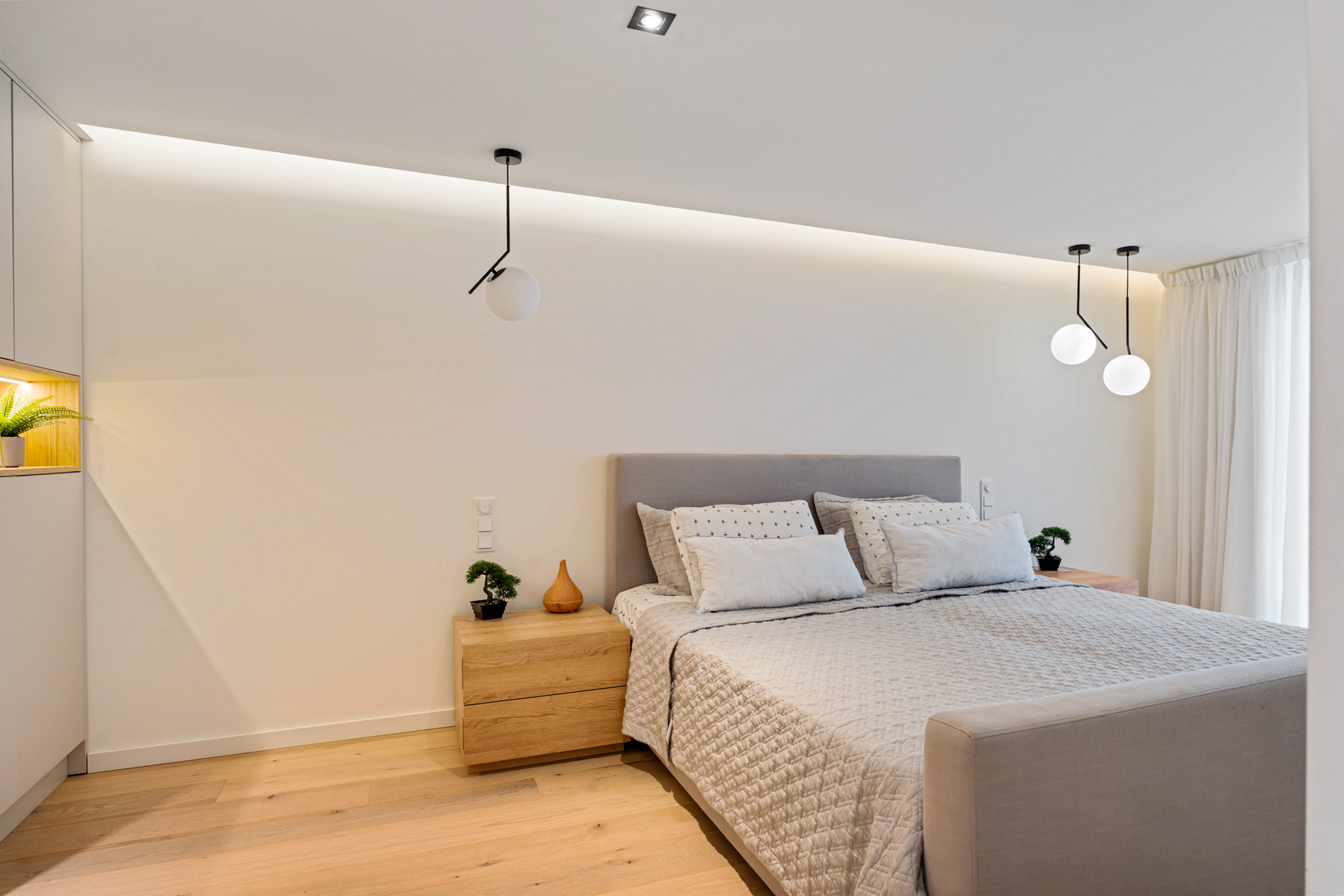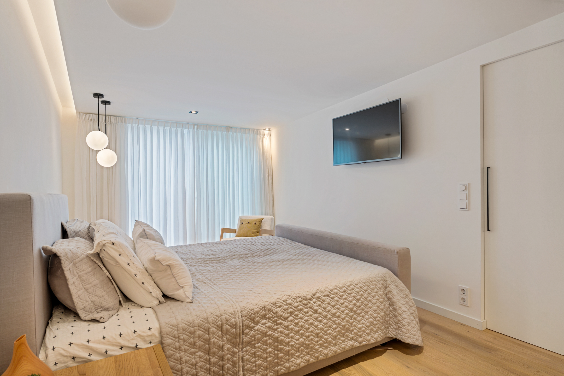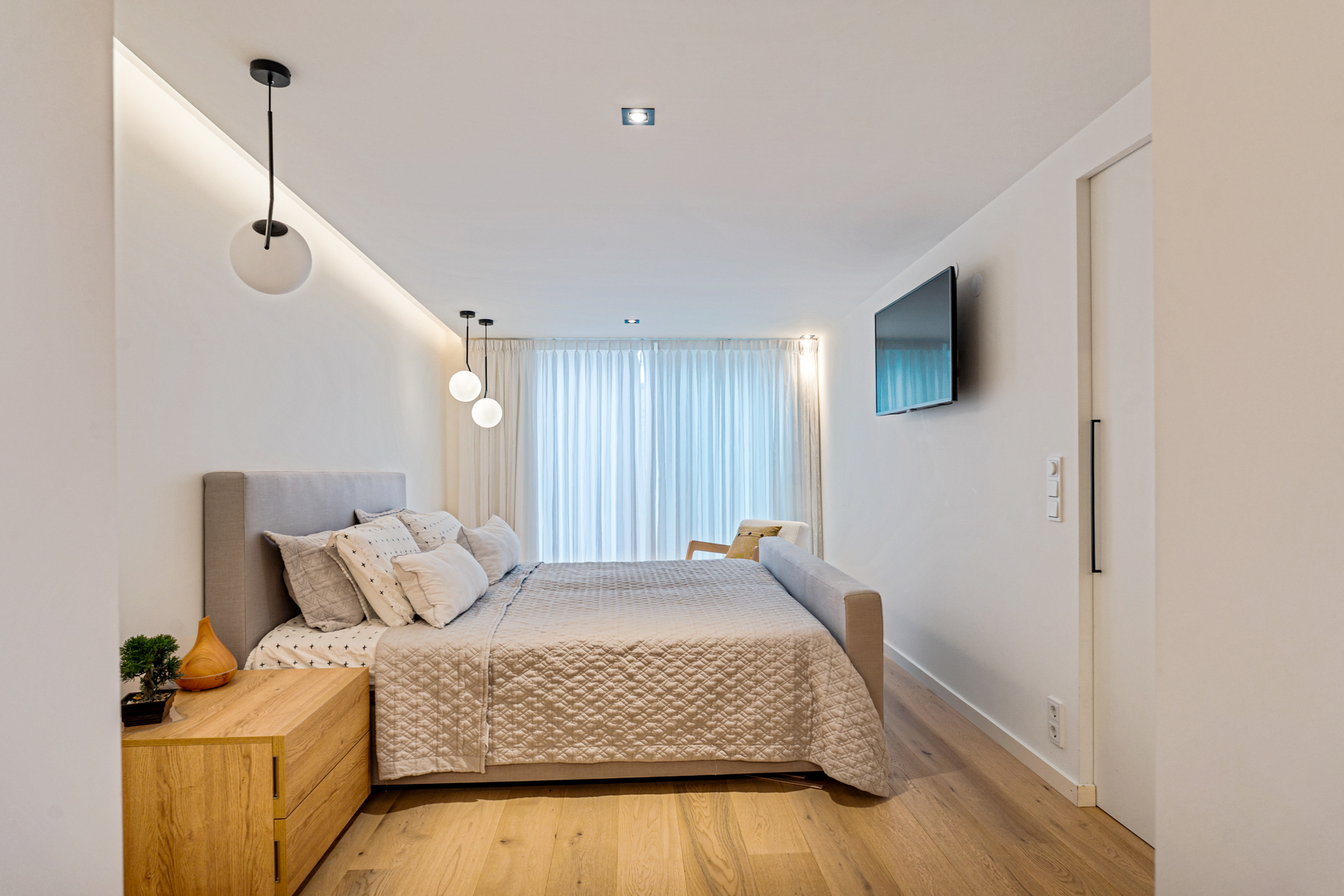 De hoofdslaapkamer is een droom op zich: ruim, elegant en voorzien van een maatwerk walk-in closet. Vanuit hier heb je direct toegang tot de serre van circa 20 m², nu ingericht als fitnessruimte, maar net zo goed geschikt als lounge of atelier. Aangrenzend vind je het zonnige dakterras van circa 17 m² – privé, beschut en met een uitzicht dat elke dag anders lijkt.