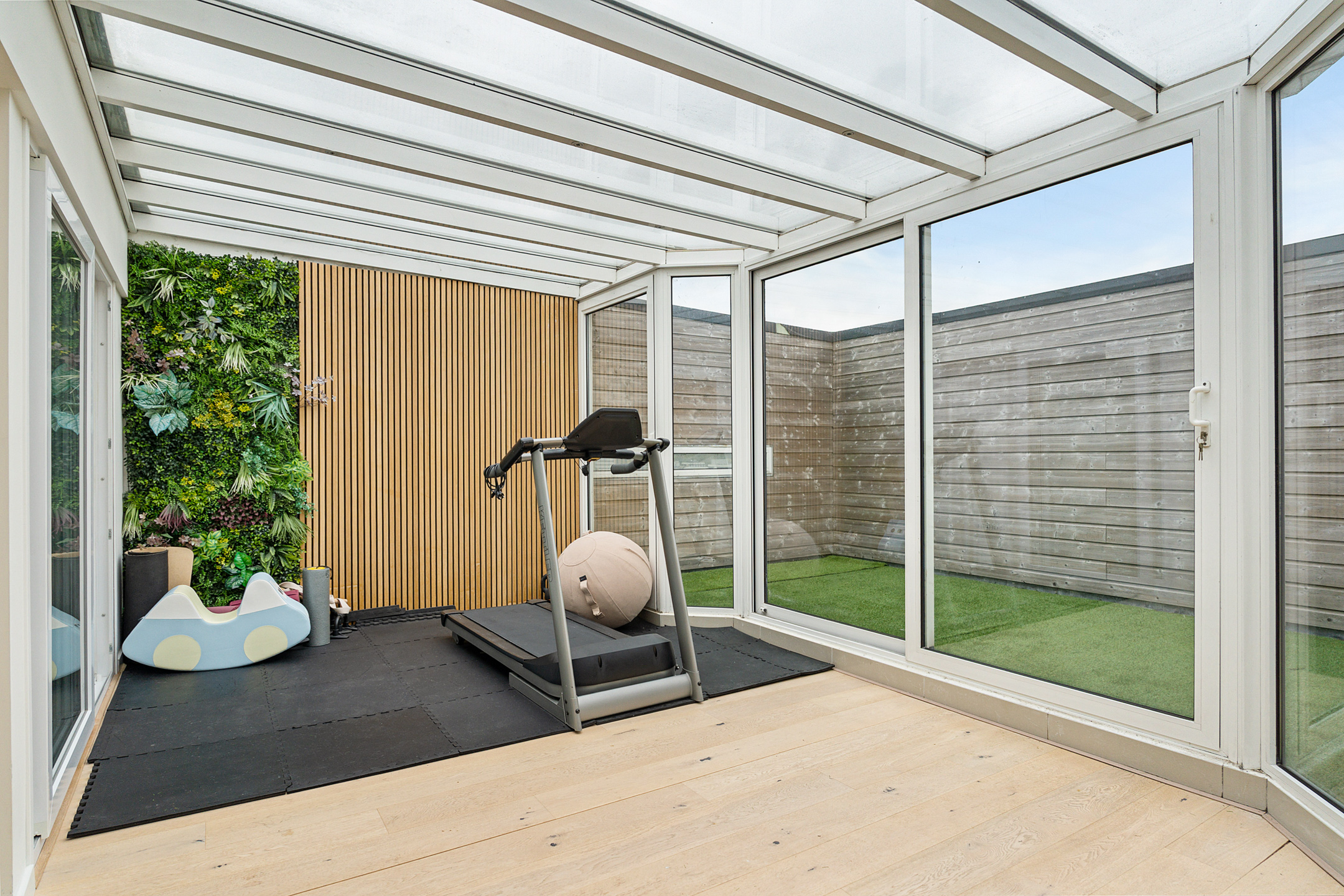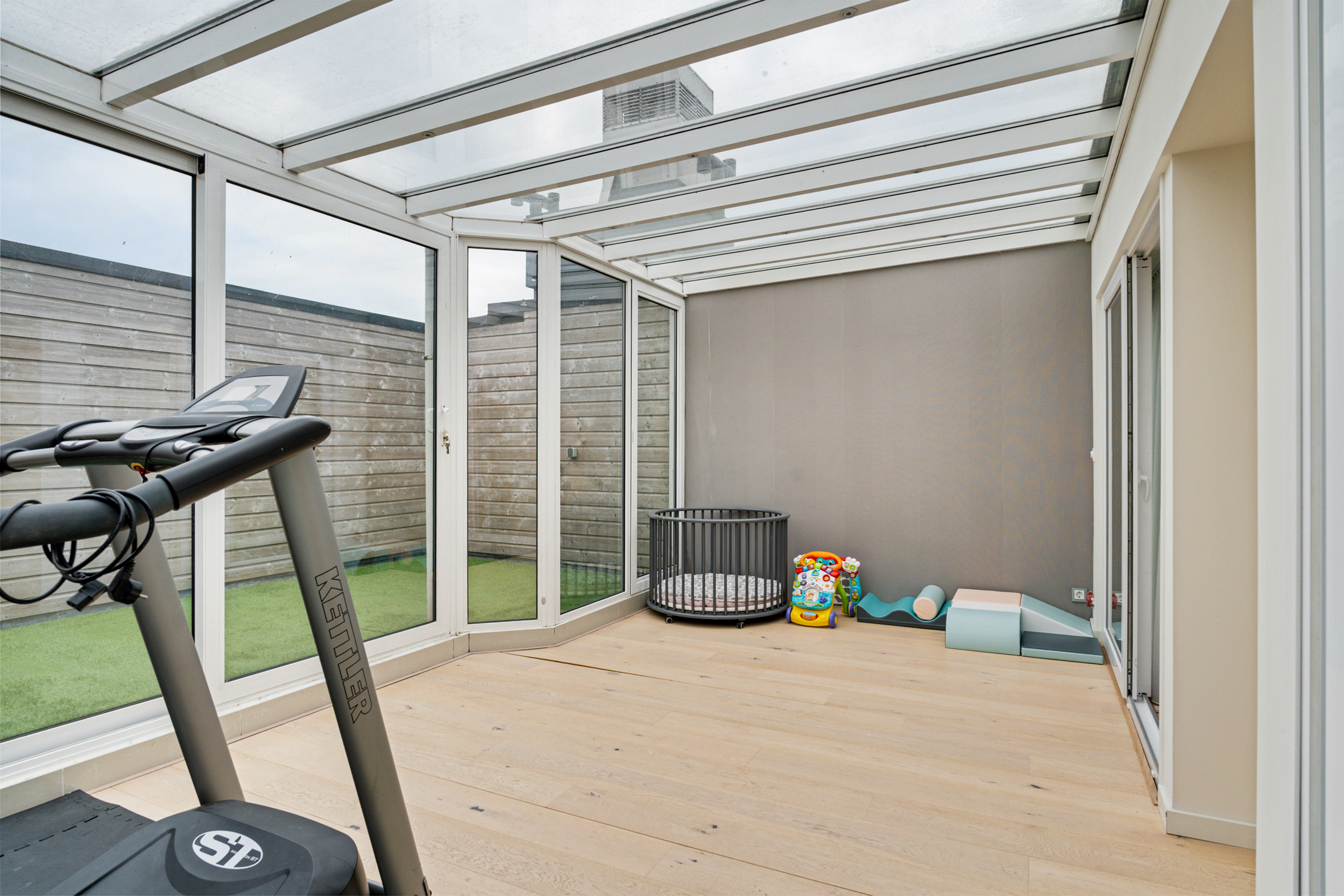+ Serre met glazen dak (fitnessruimte of kantoor)