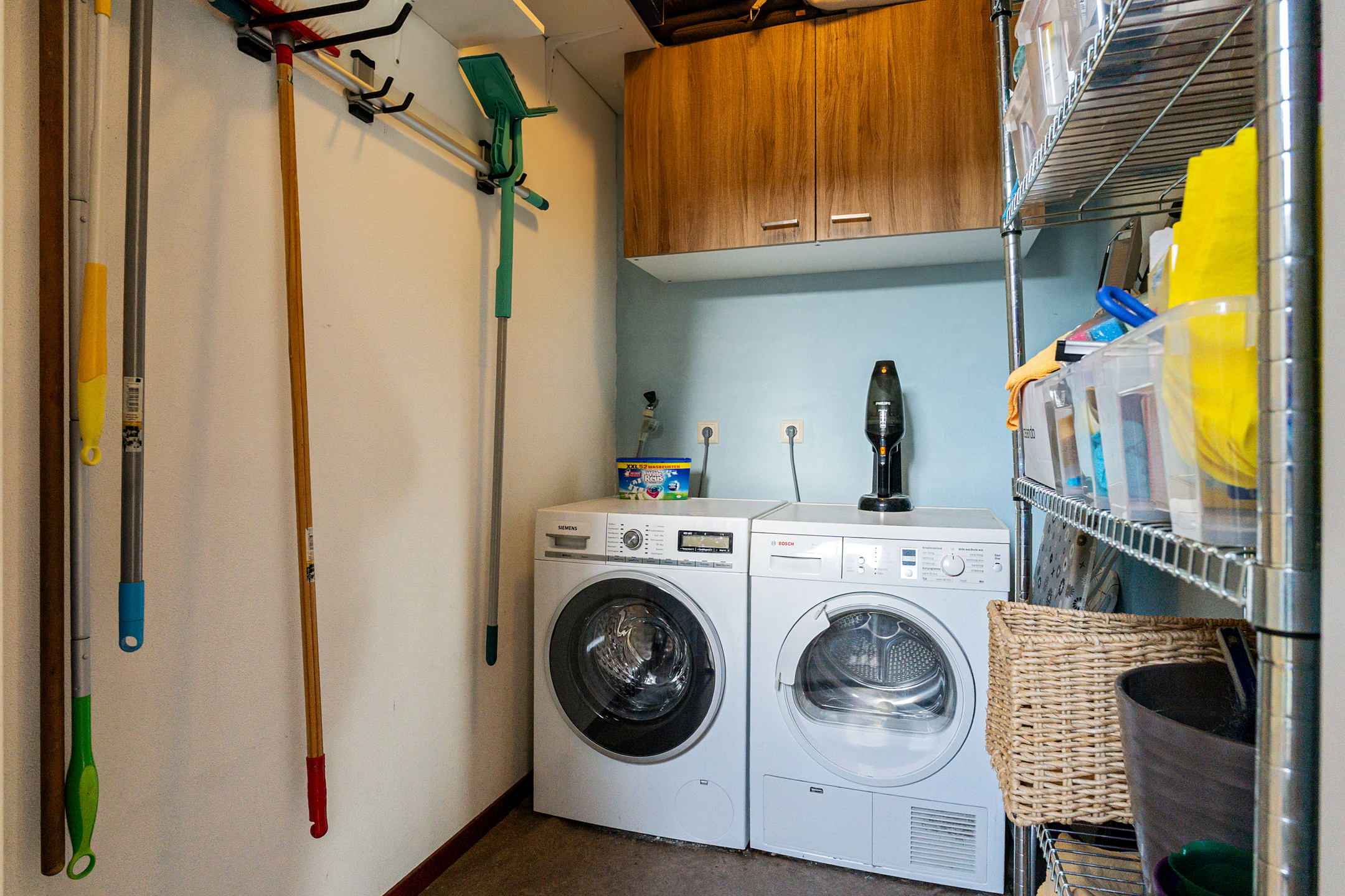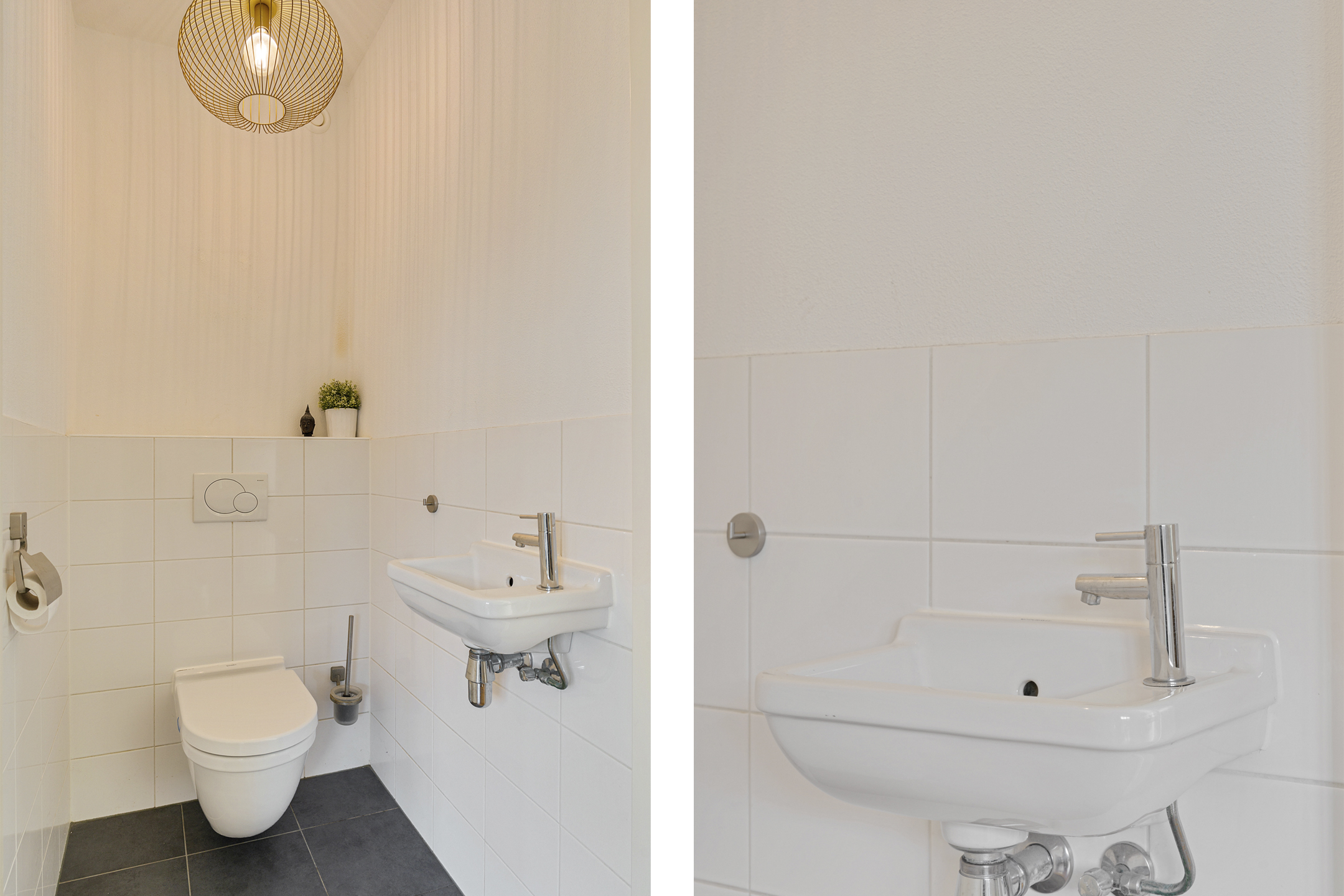 Je komt binnen via de voortuin, met direct daarnaast toegang tot de ruime berging zowel van buitenaf als binnendoor bereikbaar. In de berging bevinden zich de meterkast, de opstelling van de cv-ketel (2024) en de mechanische ventilatie, evenals ruimte voor fietsen. In de hal vind je een toilet met fonteintje en een diepe trapkast. Tevens een ruimte met wasmachineaansluiting. Desgewenst zou van deze ruimte een tweede badkamer gemaakt kunnen worden.